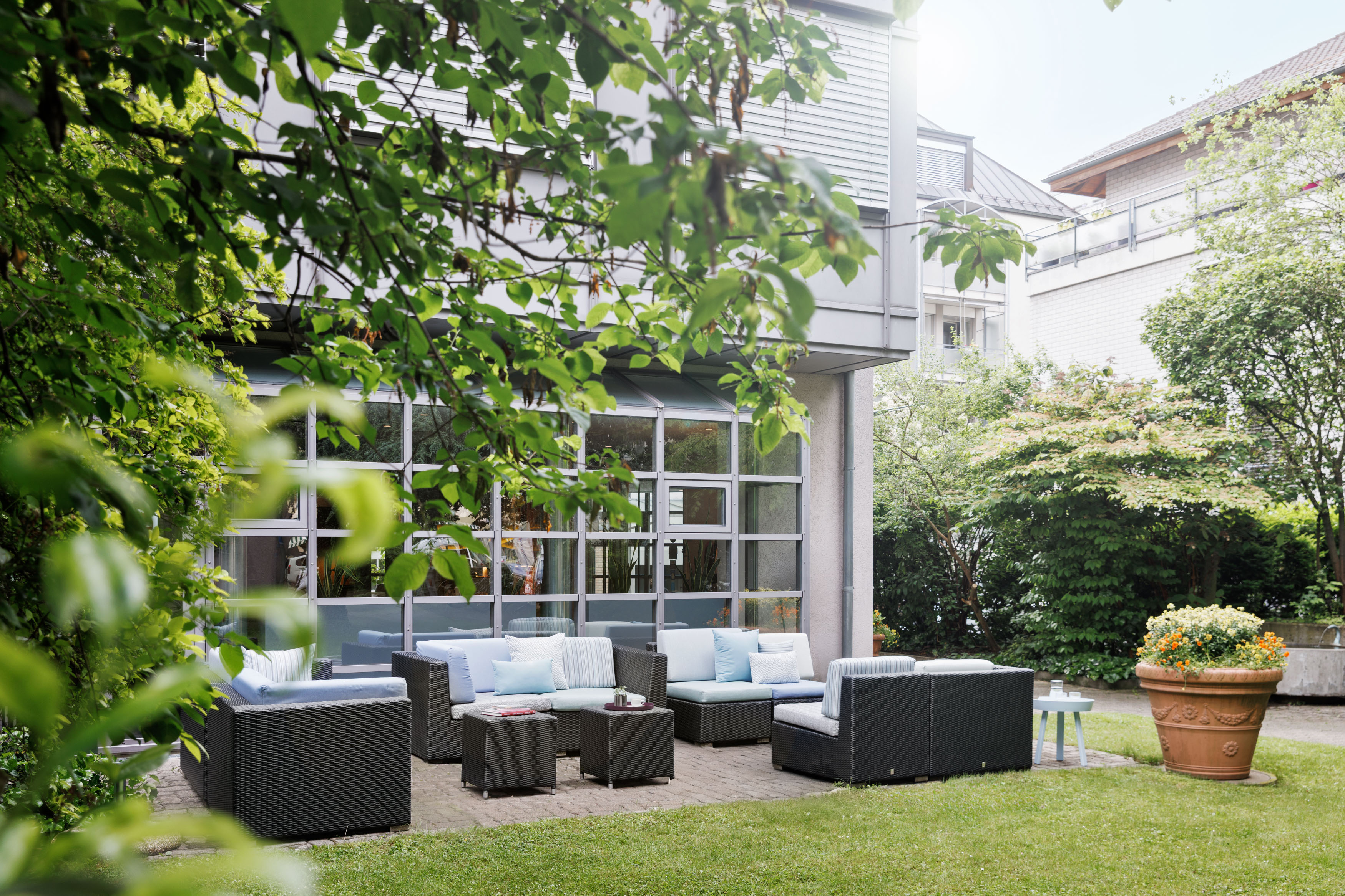 Zentral und ruhig gelegenes Garni-Hotel mit idyllischem Gartensitzplatz.