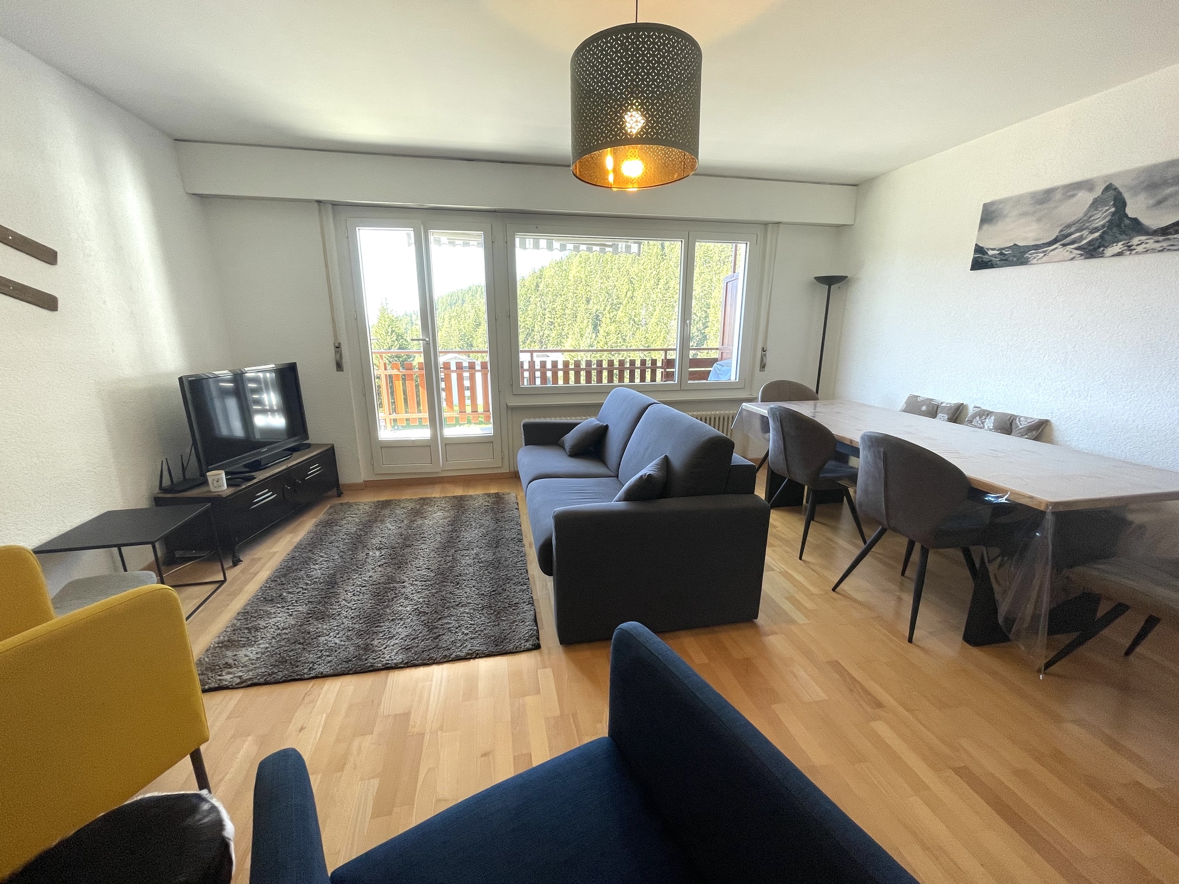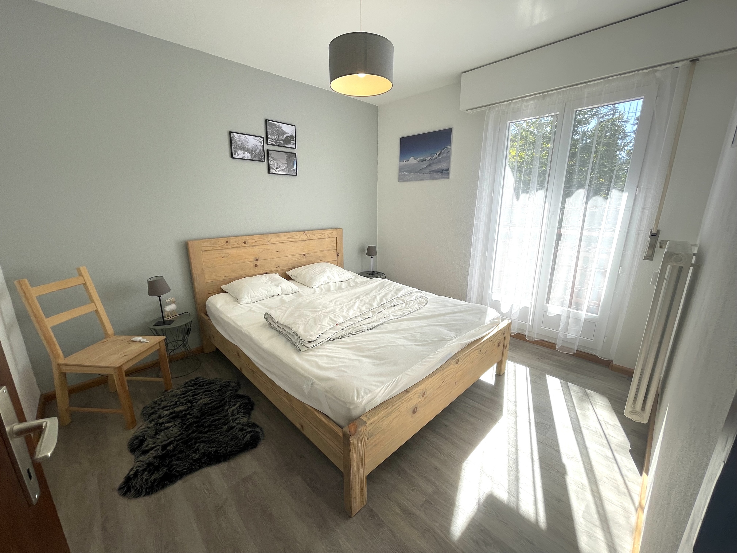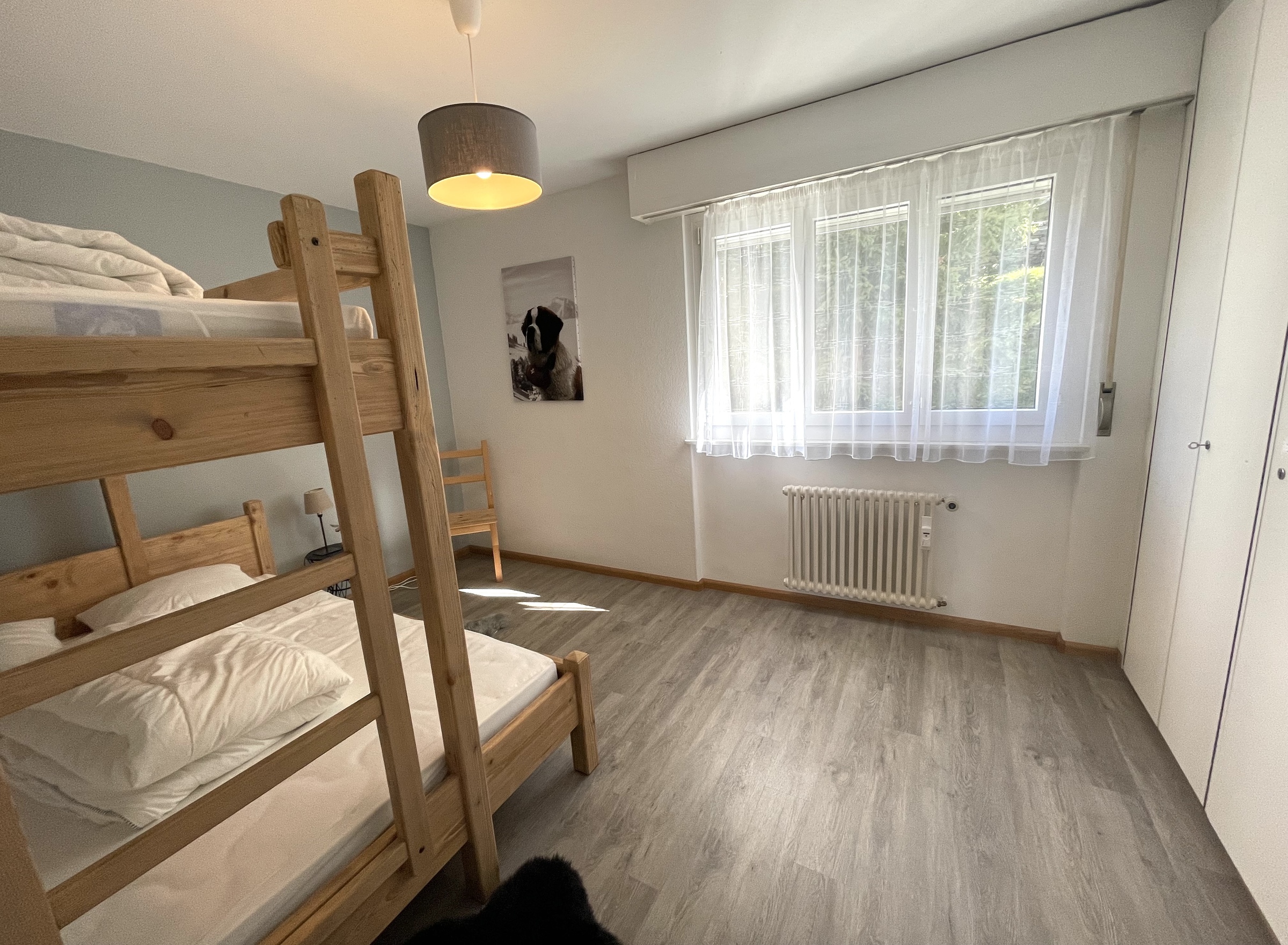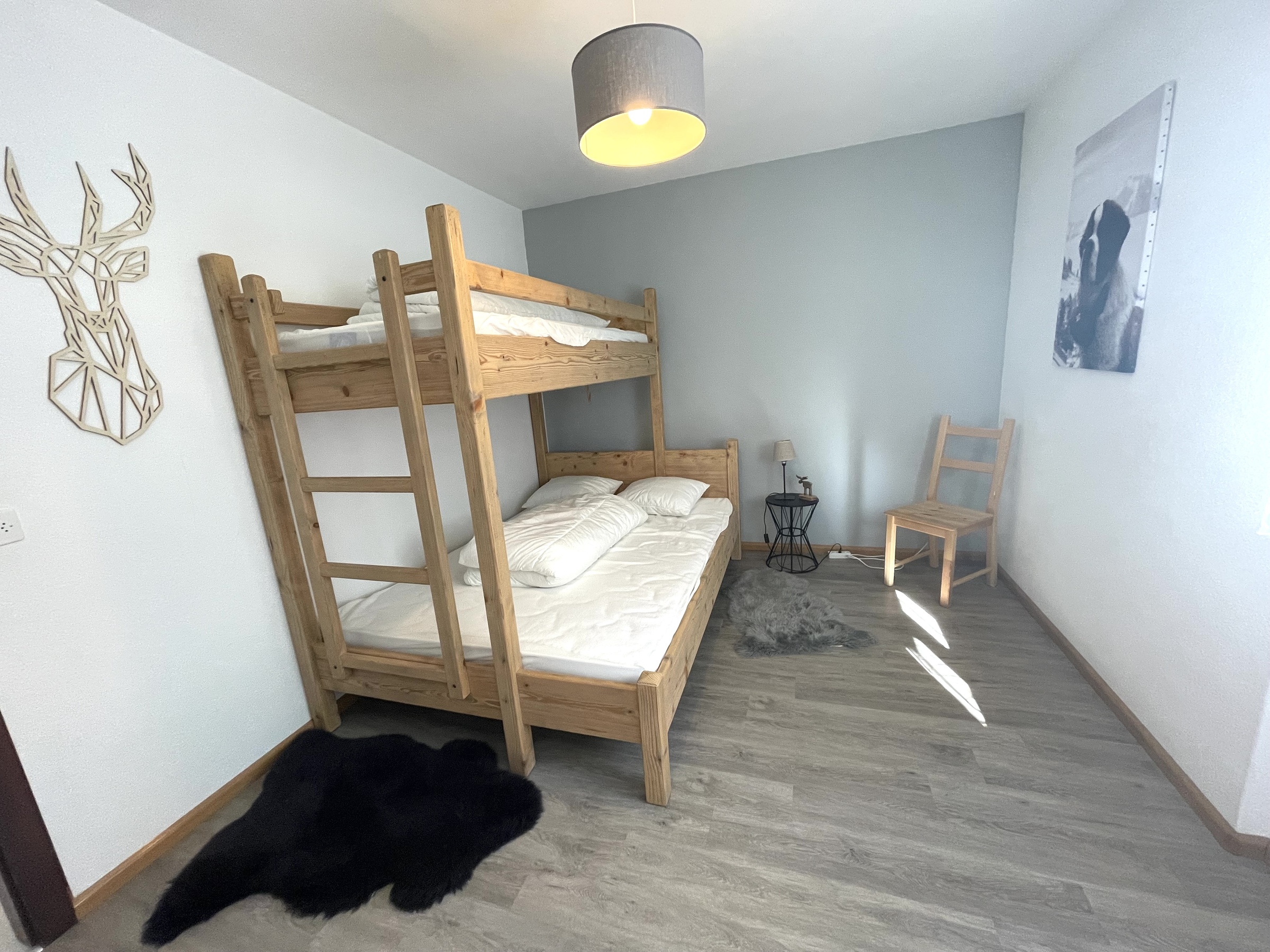 Diese wunderschöne 3,5-Zimmer-Wohnung im 3. Stock bietet Platz für maximal 5 bis 6 Personen. Eingangshalle, geräumiges Wohnzimmer mit Doppelschlafsofa (140 x 190), Esszimmer mit Zugang zum großen Südostbalkon, voll ausgestattete Küche, Geschirrspüler, Nespresso-Kaffeemaschine, Raclettegerät, Fondue-Set, DVD-Player, 1 Schlafzimmer mit Doppelbett (160 x 200), 1 Schlafzimmer mit Etagenbett (140 x 200 und 90 x 200), 1 Duschbad mit WC und Waschbecken, 1 Badezimmer mit WC und Waschbecken.
