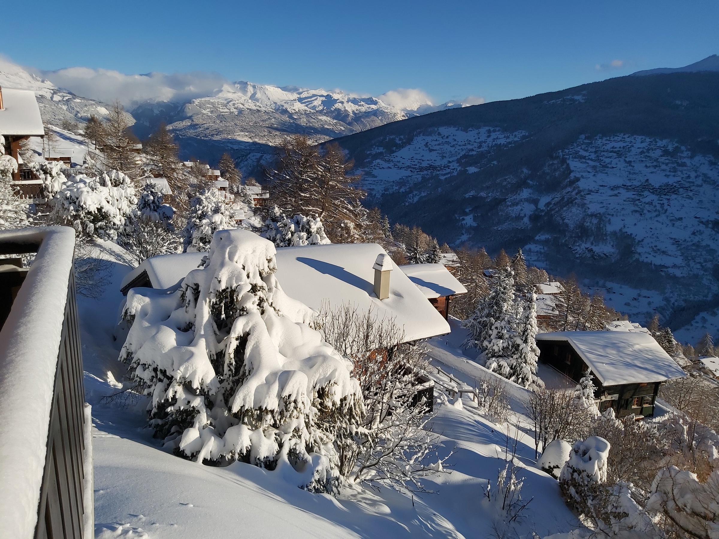 5 ½ Zimmer Chalet, 3 Stockwerke (8 Pers.). Erdgeschoss : Wohnraum / Küche mit Essecke, Badzimmer mit Dusche/WC, 1 Zimmer mit Etagenbetten. Etage : 1 Zimmer mit 2 Betten, 1 Zimmer mit Doppelbett, sep. WC, über dem Wohnraum geöffnete Mezzanine. Untergeschoss : (mit aussen Zugang) ein Zimmer mit 2 Betten, Sauna, Badezimmer mit Dusche/WC. Balkon und Terrasse Süden/Osten. Aussenparkplatz.