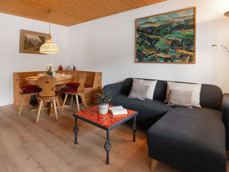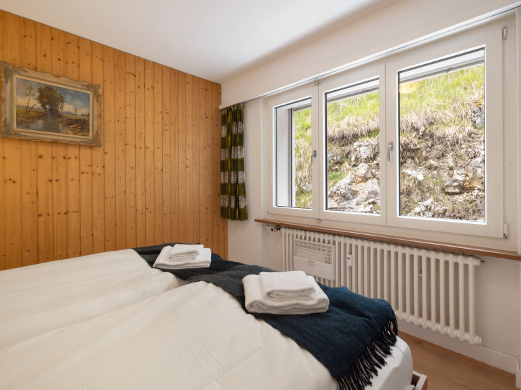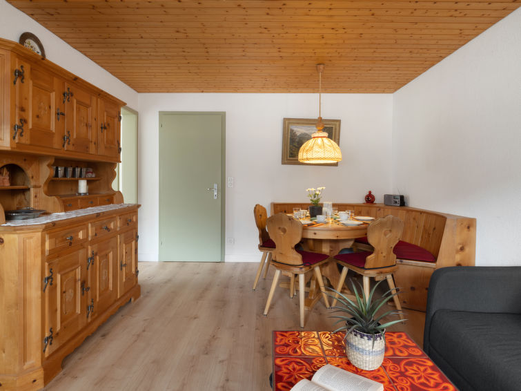 "Apartmen Nölly", 4-Zimmer-Wohnung 70 m2 im 3. Stock, Südlage. Rustikal und gemütlich eingerichtet: Wohn-/Esszimmer mit Kabel-TV. 1 Zimmer mit 1 Doppelbett (2 x 90 cm). 1 Zimmer mit 2 Betten (90 cm). 1 Zimmer mit 2 Betten (90 cm). Küche (Geschirrspüler, 4 Glaskeramikplatten, elektrische Kaffeemaschine, Kapseln für die Kaffeemaschine (Nespresso) extra). Dusche/WC. Heizung. Balkon, Südlage. Schöne Sicht auf die Berge und die Ortschaft. Zur Verfügung: Babybett. Internet (WLAN, gratis). Garage Nr. 6. Bitte beachten: Nichtraucher-Unterkunft. 11471