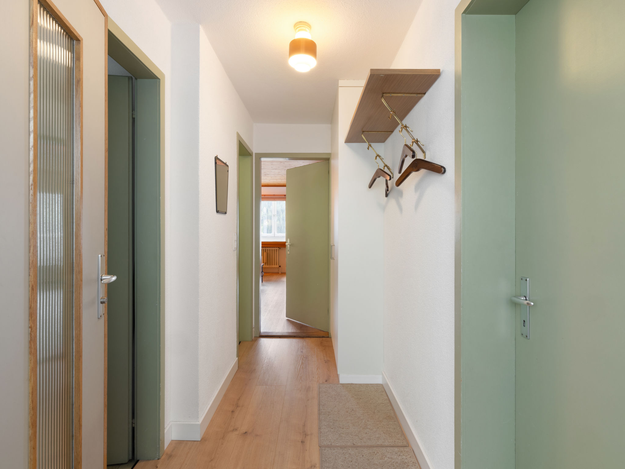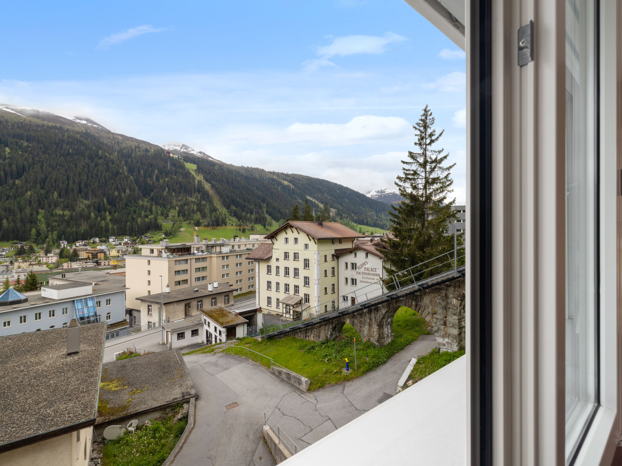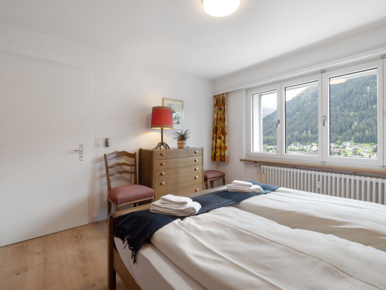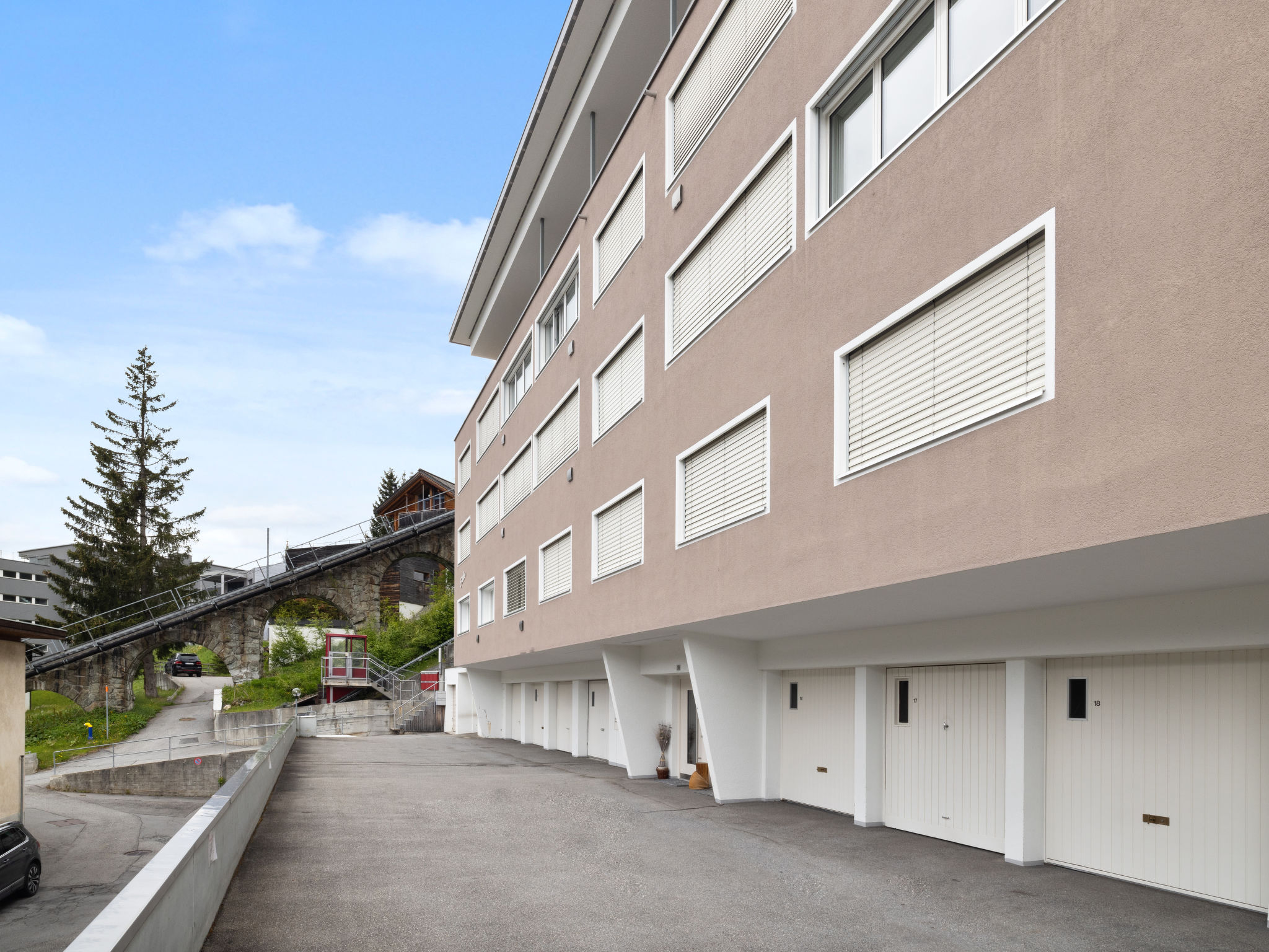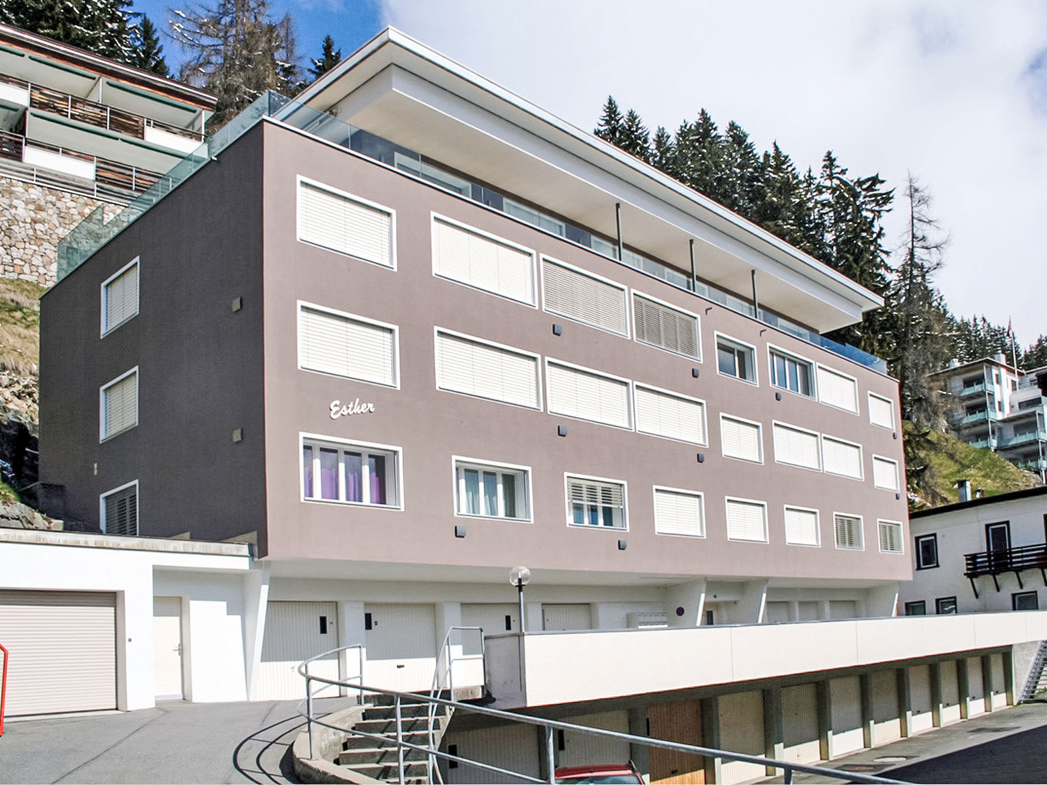 Appartementhaus "Esther". Im Ortszentrum, 250 m vom Zentrum von Davos Platz, zentrale Lage am Hang, 20 m vom Skigebiet, Richtung Süden. Im Hause: Fahrstuhl, Waschmaschine, Wäschetrockner (zur Mitbenutzung). 20 m lange steile Zufahrt bis zum Haus. Einzelgarage Nr. 6. Parkplatz/Garage nur für kleine - mittlere Fahrzeuge geeignet. Maße: Höhe 192 cm Breite 210 cm. Einkaufsgeschäft 100 m, Supermarkt 400 m, Restaurant, Bar, Bäckerei 100 m, Bushaltestelle "Davos Schatzalpbahn" 200 m, See Davoser See 2.5 km. Golfplatz (18 Loch) 800 m, Sportzentrum 400 m, Luftseilbahn 500 m, Bergeisenbahn 30 m, Skisportanlagen 15 m, Skibushaltestelle 50 m.