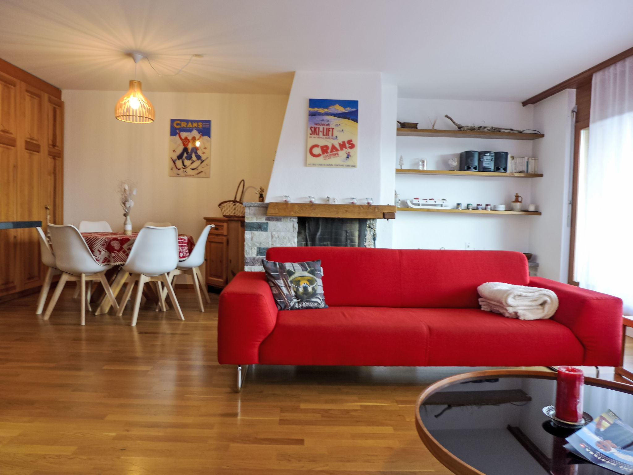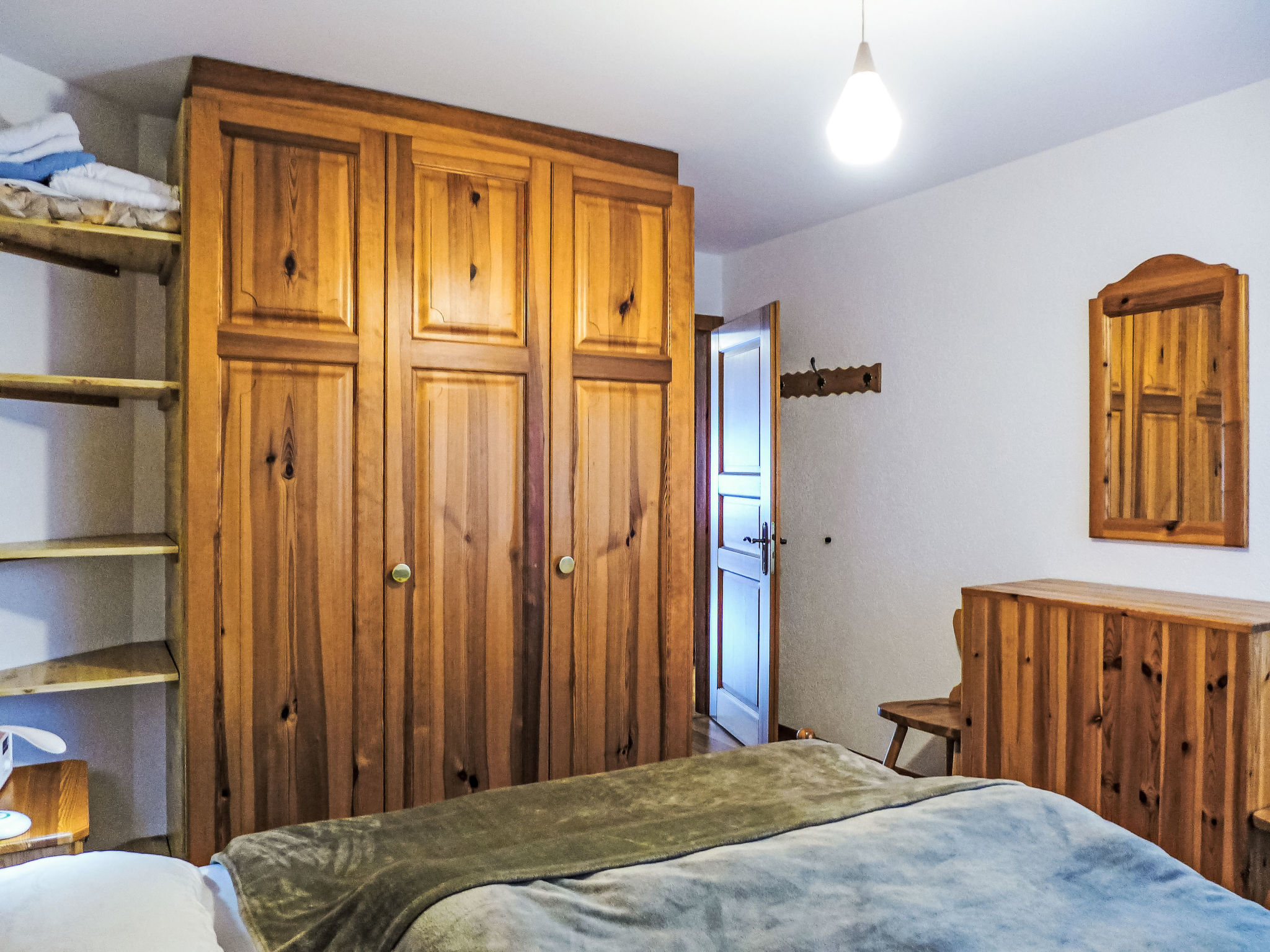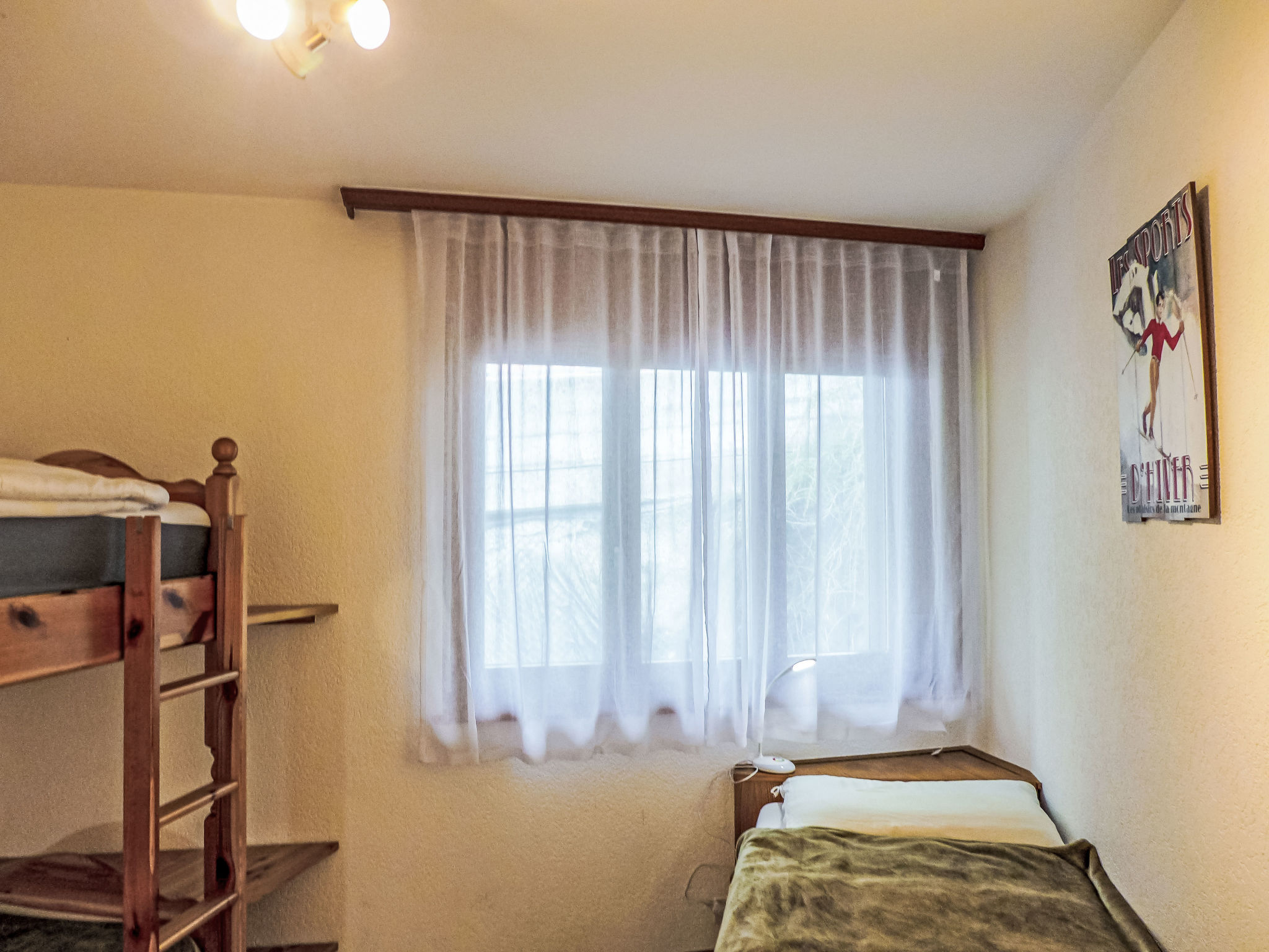 "Corfou A 5", 3-Zimmer-Wohnung 90 m2 im 3. Stock. Komfortabel und schön eingerichtet: Wohn-/Esszimmer mit offenem Kamin und Kabel-TV (Flachbildschirm). Ausgang zum Balkon. 1 Zimmer, Richtung Norden mit 1 franz. Bett (160 cm, Länge 200 cm). 1 Zimmer, Richtung Norden mit 1 Bett (80 cm, Länge 190 cm), 1 x 2 Etagenbetten (80 cm, Länge 190 cm). Grosse, offene Küche (Backofen, Geschirrspüler, 4 Glaskeramikplatten, elektrische Kaffeemaschine, Kapseln für die Kaffeemaschine (Nespresso) extra). Bad/WC, Dusche/WC. Parkettboden. Balkon 8 m2, Südlage. Balkonmöbel. Schöne Sicht auf den See und die Berge. Zur Verfügung: Haartrockner. Internet (Wireless LAN). Garage Nr. 14/apt 5.