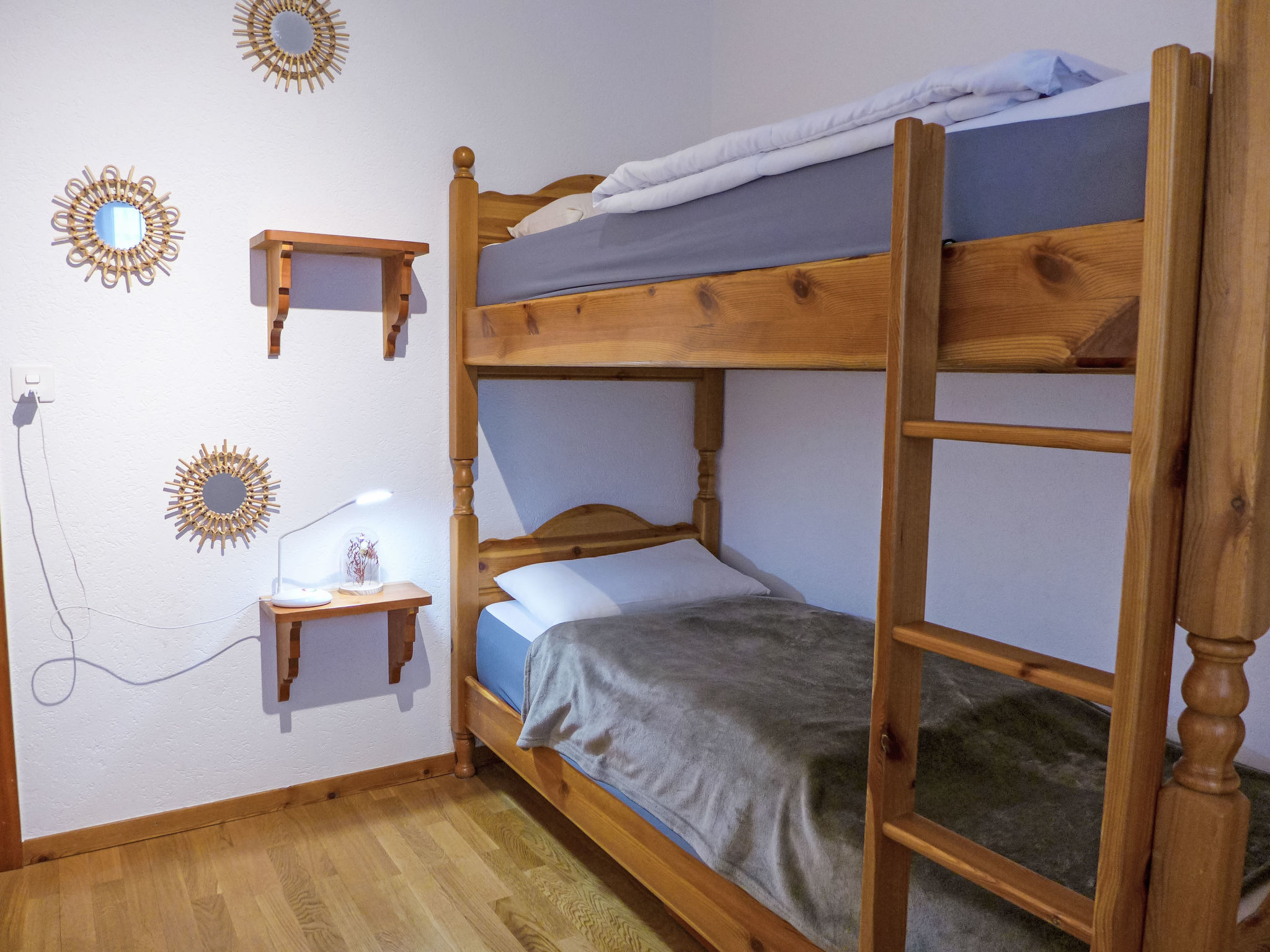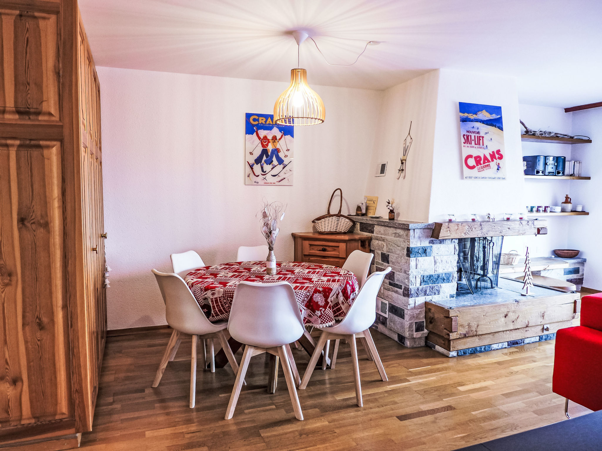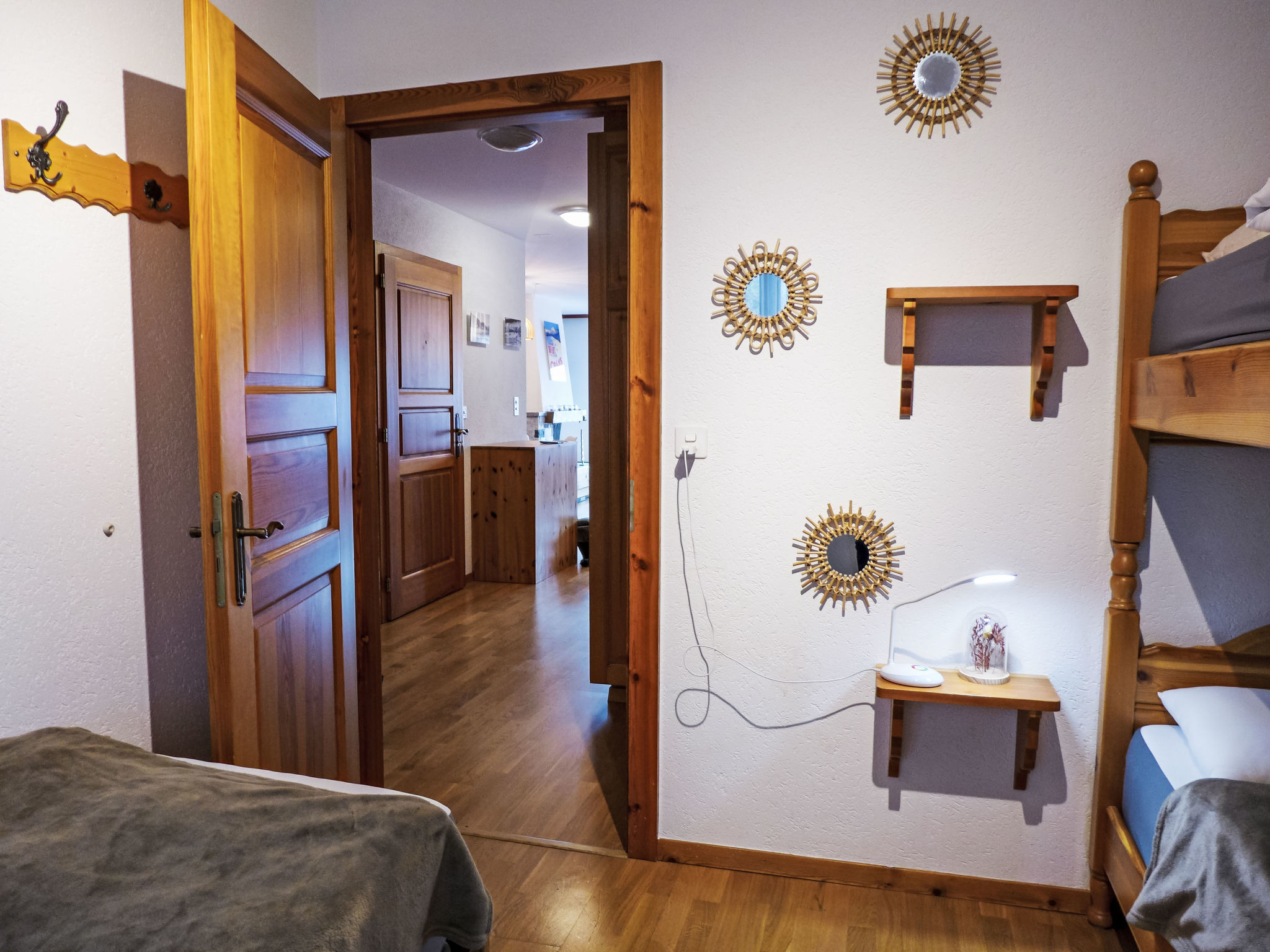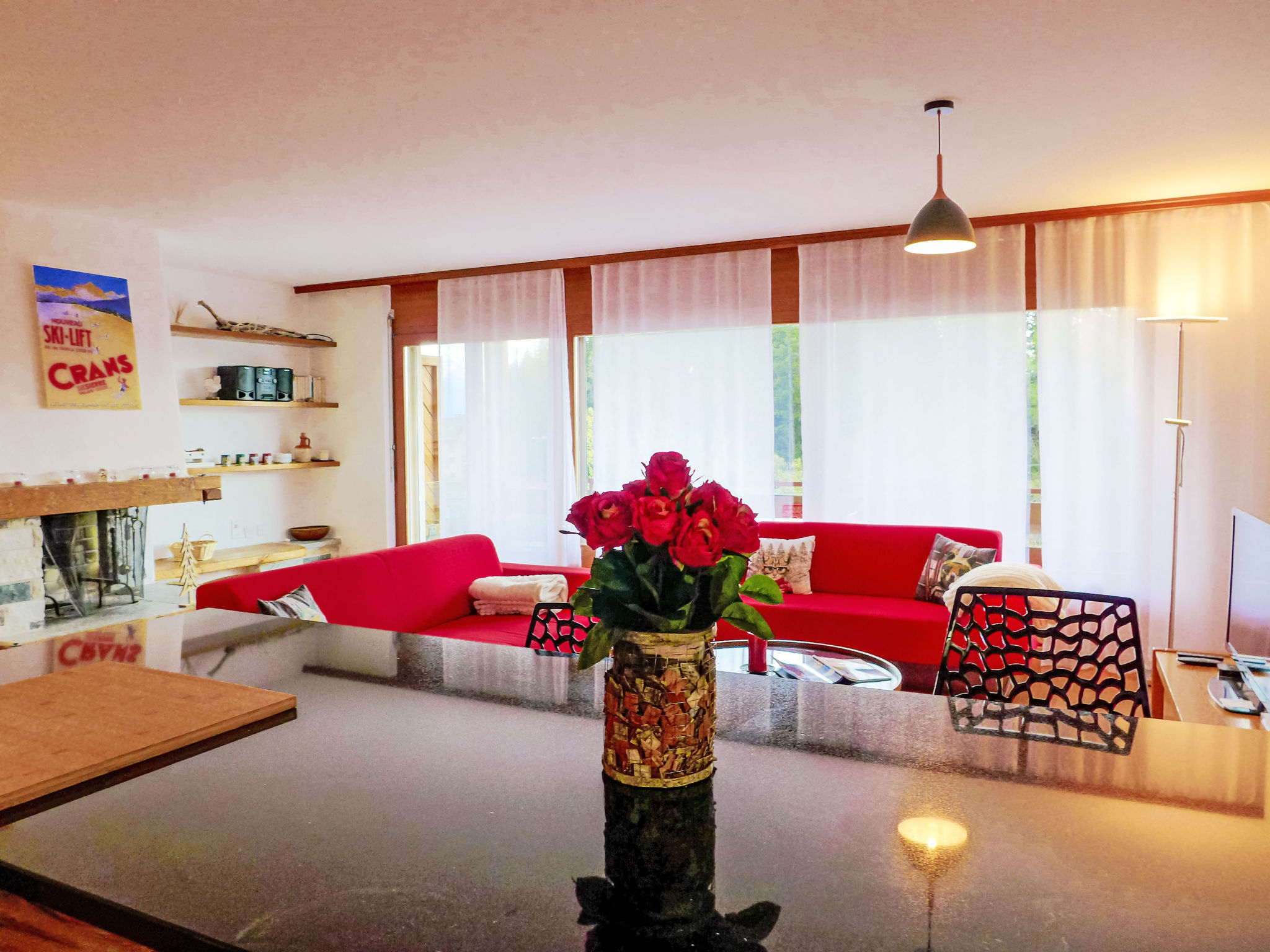"Corfou A 5", 3-Zimmer-Wohnung 90 m2 im 3. Stock. Komfortabel und schön eingerichtet: Wohn-/Esszimmer mit offenem Kamin und Kabel-TV (Flachbildschirm). Ausgang zum Balkon. 1 Zimmer, Richtung Norden mit 1 franz. Bett (160 cm, Länge 200 cm). 1 Zimmer, Richtung Norden mit 1 Bett (80 cm, Länge 190 cm), 1 x 2 Etagenbetten (80 cm, Länge 190 cm). Grosse, offene Küche (Backofen, Geschirrspüler, 4 Glaskeramikplatten, elektrische Kaffeemaschine, Kapseln für die Kaffeemaschine (Nespresso) extra). Bad/WC, Dusche/WC. Parkettboden. Balkon 8 m2, Südlage. Balkonmöbel. Schöne Sicht auf den See und die Berge. Zur Verfügung: Haartrockner. Internet (Wireless LAN). Garage Nr. 14/apt 5.