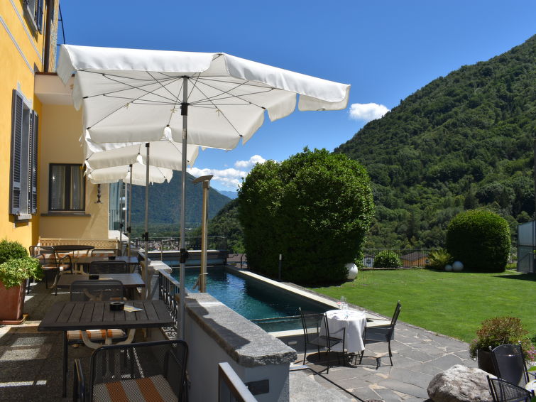 Intragna 10 km von Locarno: Modernes, komfortables Appartementhaus "Capriccio", 340 m.ü.M., auf 2 Stockwerken. 3 Wohnungen im Ferienhaus. Im Ort Intragna, im Bezirk Centovalli, ruhige, sonnige Lage, in einer Sackgasse. Zur Mitbenutzung: wunderschöner Garten zum Entspannen, Schwimmbad eckig (2 x 10 m, saisonale Verfügbarkeit: 20.Mai. - 20.Okt.) mit Innentreppe. Sitzplatz, Pergola, Terrasse, Gartenmöbel. In der Anlage: Empfang, Restaurant, Frühstücksraum, Zentralheizung. Frühstück möglich auf Anfrage (extra). 30 m lange Zufahrt bis zum Haus. Parkplatz auf dem Grundstück. Restaurant 10 m, Bäckerei 500 m, Fahrradverleih 10 m, Bushaltestelle "Intragna, Stazione" 30 m, Bahnstation "Centrovalli Expres FART Intragna" 50 m. Wanderwege ab Haus 5 m. Nahe gelegene Sehenswürdigkeiten: Ascona, Locarno, Ronco sopra Ascona, Isole di Brissago, Falconeria, Locarno, Madonna del Sasso, Orselina, Mercato Cannobio IT, Mercato Luino IT. Bekannte Seen in der Umgebung sind gut erreichbar: Lago Maggiore, Lago di Lugano, Lago di Como. Wandergebiete: Centovalli, Vallemaggia, Valle Verzasca, Cardada, Monte Tamaro- Splash &SPA. Bitte beachten: Babyausstattung. Weitere Unterkünfte sind buchbar. Ferienwohnung Ref. CH6655.55 befindet sich auf dem gleichen Grundstück.