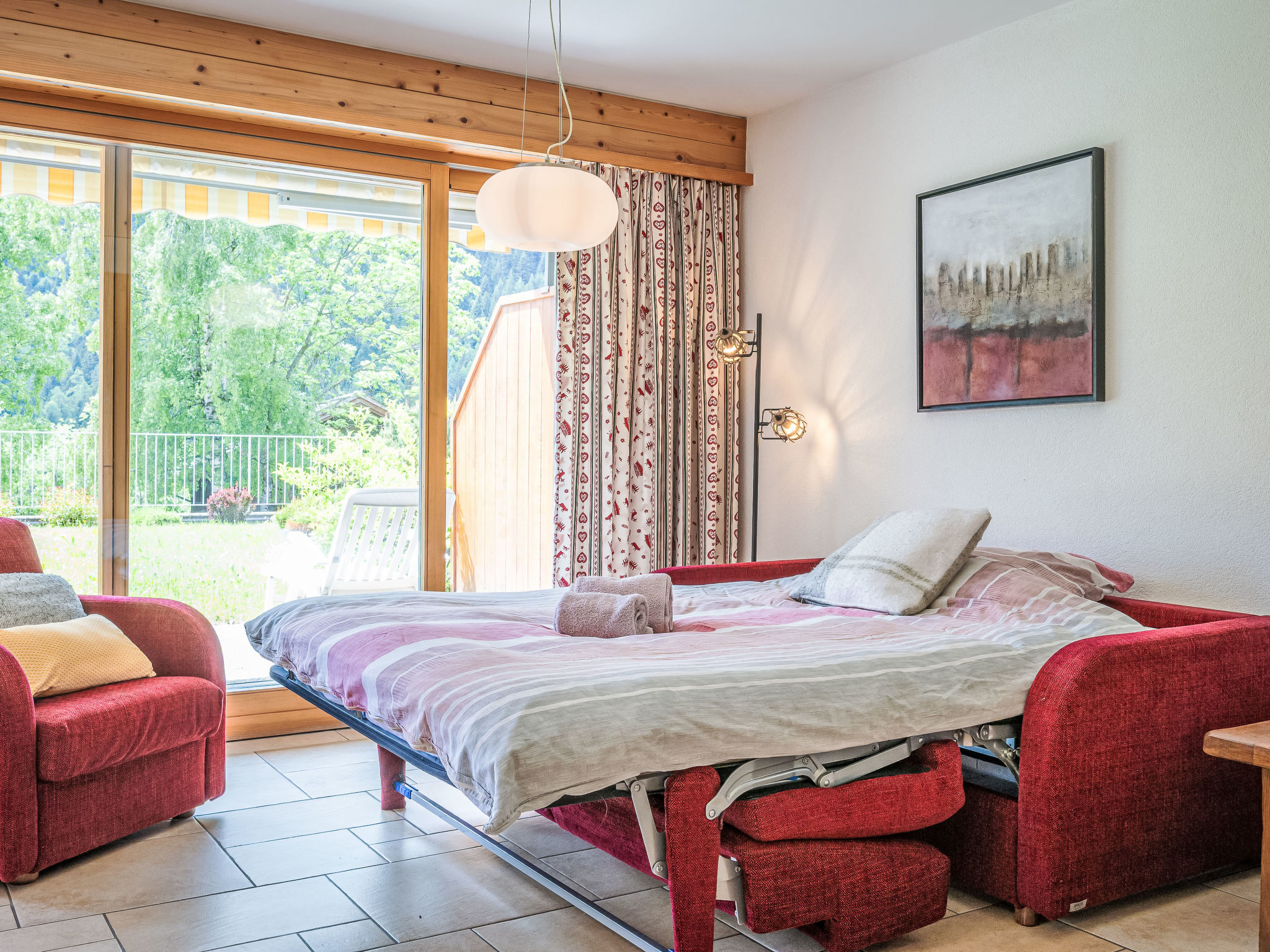 "Rhodos A R03", 3-Zimmer-Wohnung 76 m2, im Erdgeschoss. Geräumig, komfortabel und schön eingerichtet: Eingang. Wohn-/Esszimmer mit 1 Diwanbett, Kabel-TV, Radio und CD. Ausgang zur Terrasse. 1 Zimmer mit 2 Betten (90 cm, Länge 200 cm), Bad/WC. 1 Zimmer mit 2 Betten (90 cm, Länge 200 cm). Offene Küche (Backofen, Geschirrspüler, 4 Glaskeramikplatten, Toaster, Wasserkocher, Mikrowelle, elektrische Kaffeemaschine, Kapseln für die Kaffeemaschine (Nespresso) extra, Racletteofen, Fondue Set (Käse)). Dusche/WC. Terrasse, Südwestlage, Rasen. Terrassenmöbel, Liegestühle (2). Panoramasicht auf die Berge. Zur Verfügung: Haartrockner. Internet (WLAN, gratis). Garage Nr. R03 (1 Auto), Höhe 200 cm. Bitte beachten: Nichtraucher-Unterkunft. Seilbahn 2 Hin- und Rückfahrten vom 19.6 -26.10 pro Woche geschenkt.