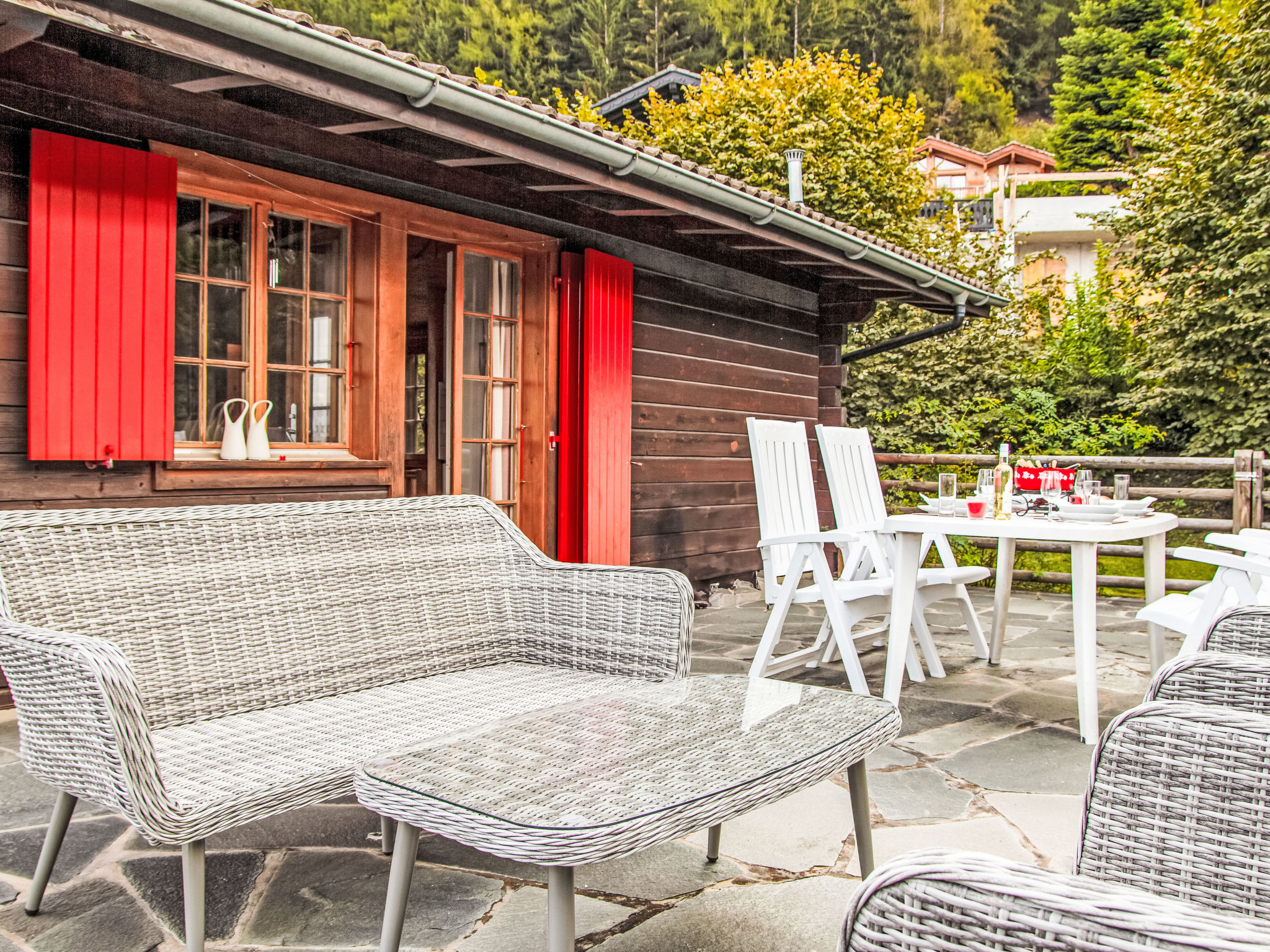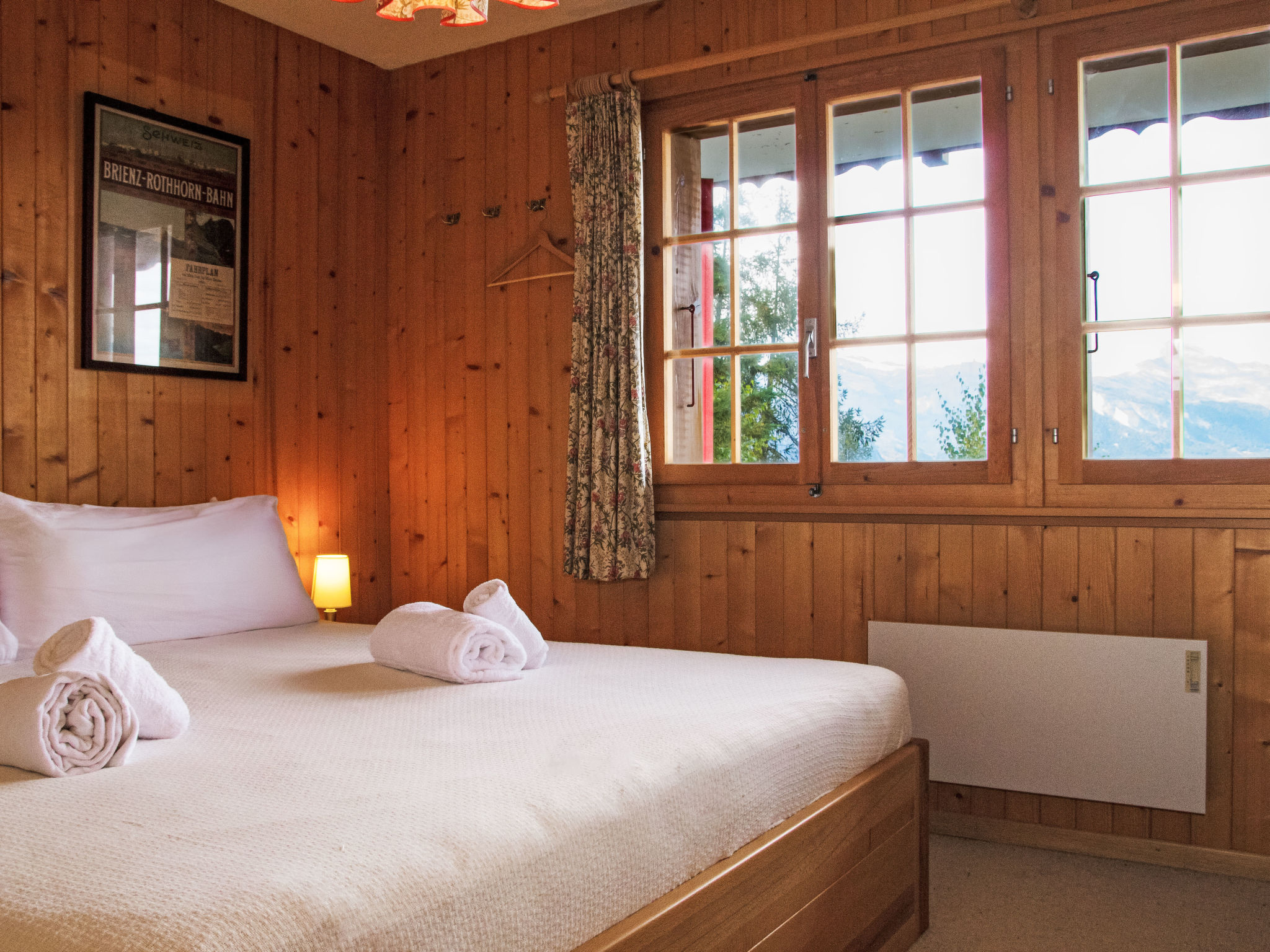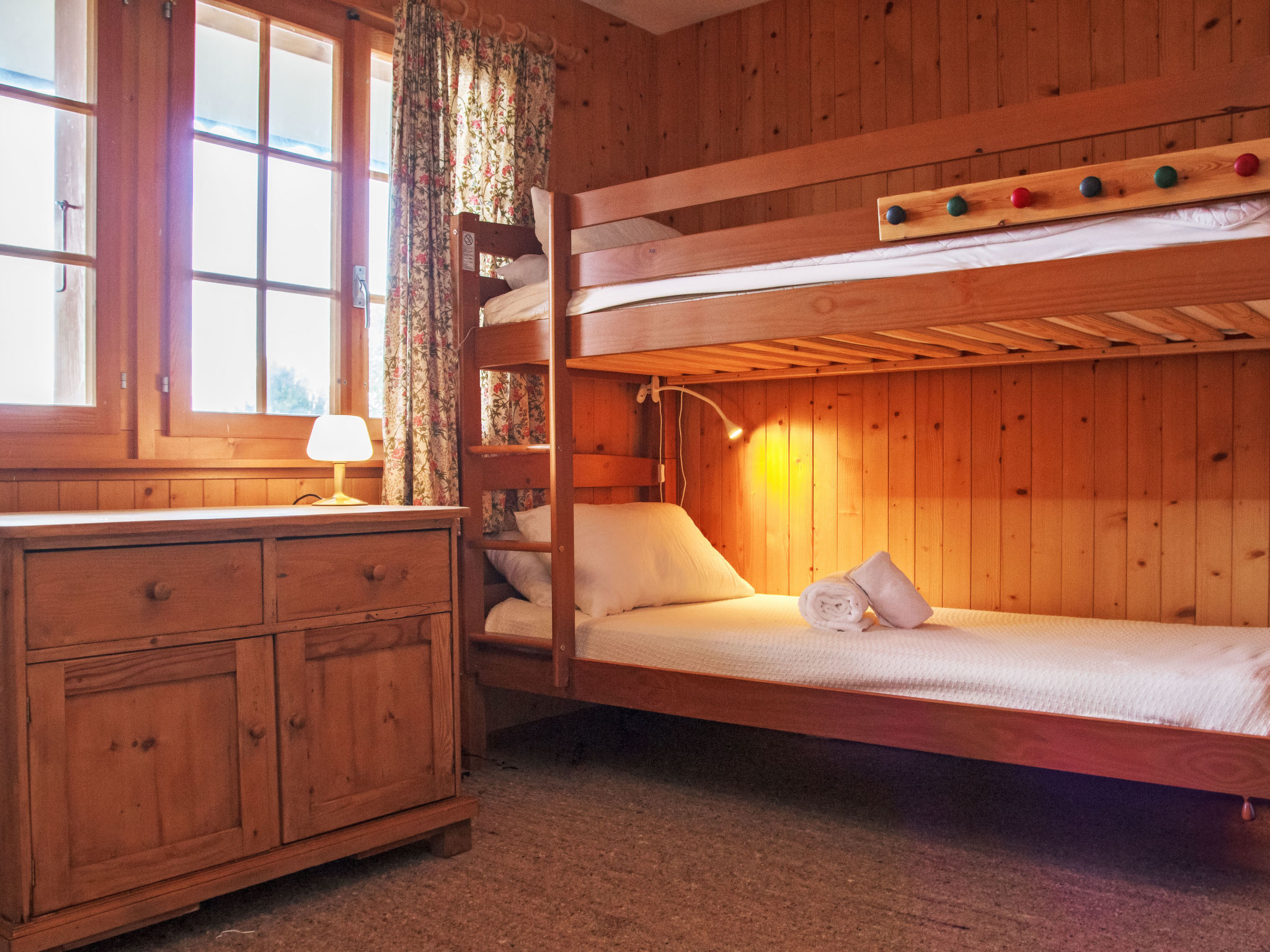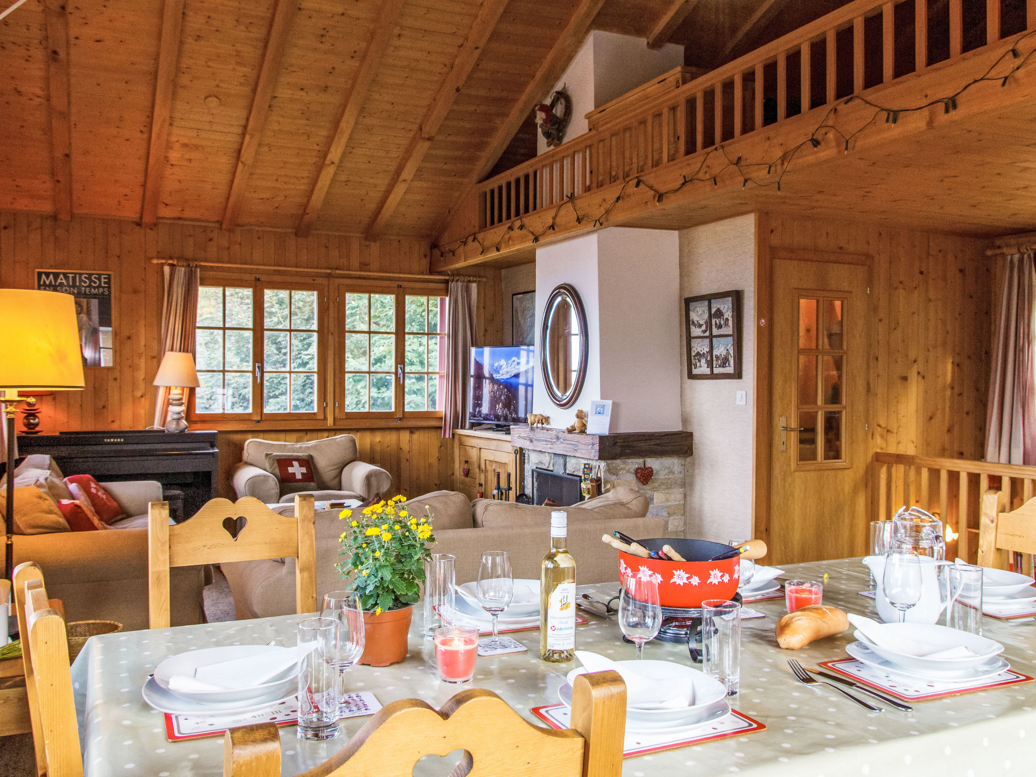 "Gemini", 4-Zimmer-Chalet 100 m2 auf 2 Stockwerken. Schön eingerichtet: Wohn-/Esszimmer mit offenem Kamin (nur Deko), Kabel-TV und DVD. Offene Küche (Backofen, Geschirrspüler, 4 Glaskeramikplatten, Toaster, Wasserkocher, Mikrowelle, Tiefkühler, elektrische Kaffeemaschine, Kapseln für die Kaffeemaschine (Nespresso) extra, Fondue Set (Chinoise, Käse)). Dusche/WC. E-Heizung. Unteres Geschoss: 1 Zimmer mit 1 franz. Bett (180 cm, Länge 200 cm), Waschbecken. 1 Zimmer mit 2 x 2 Etagenbetten (90 cm, Länge 200 cm), Waschbecken. 1 kleines Zimmer mit 1 franz. Bett (140 cm, Länge 190 cm). Bad/WC. Balkon, Nordlage Terrasse, Westlage, kleiner Garten, Südlage. Terrassenmöbel, Gartengrill. Schöne Sicht auf die Berge und das Tal. Zur Verfügung: Waschmaschine, Wäschetrockner. Internet (WLAN). Parkplatz (2 Autos). Bitte beachten: Nichtraucher-Haus.