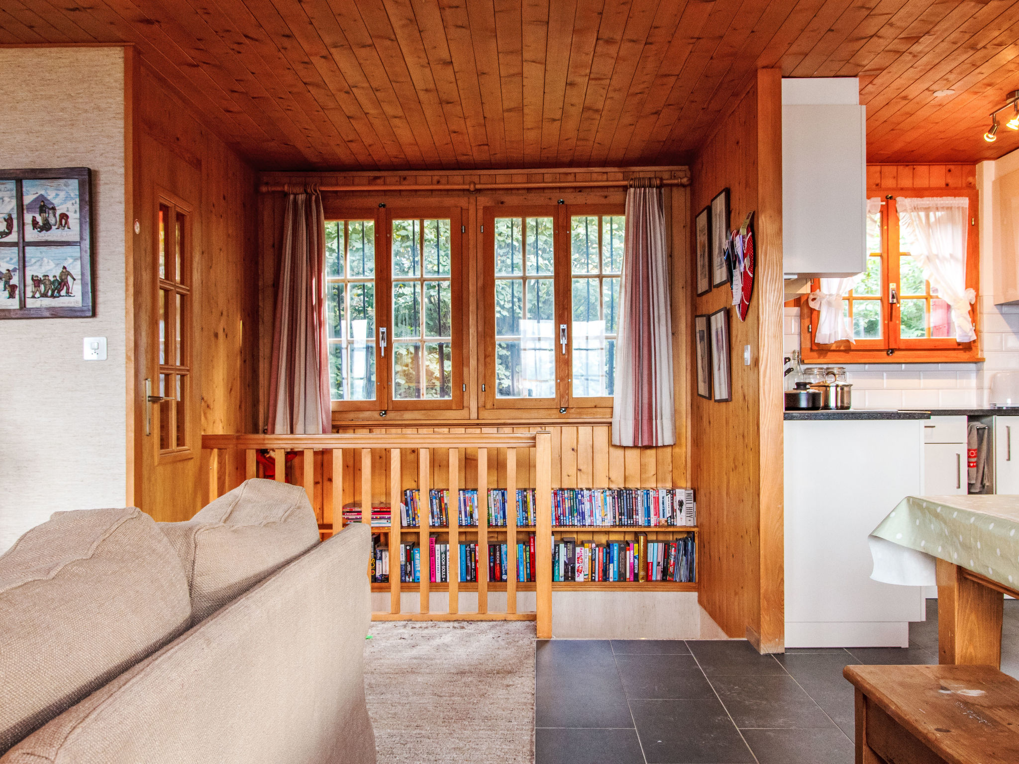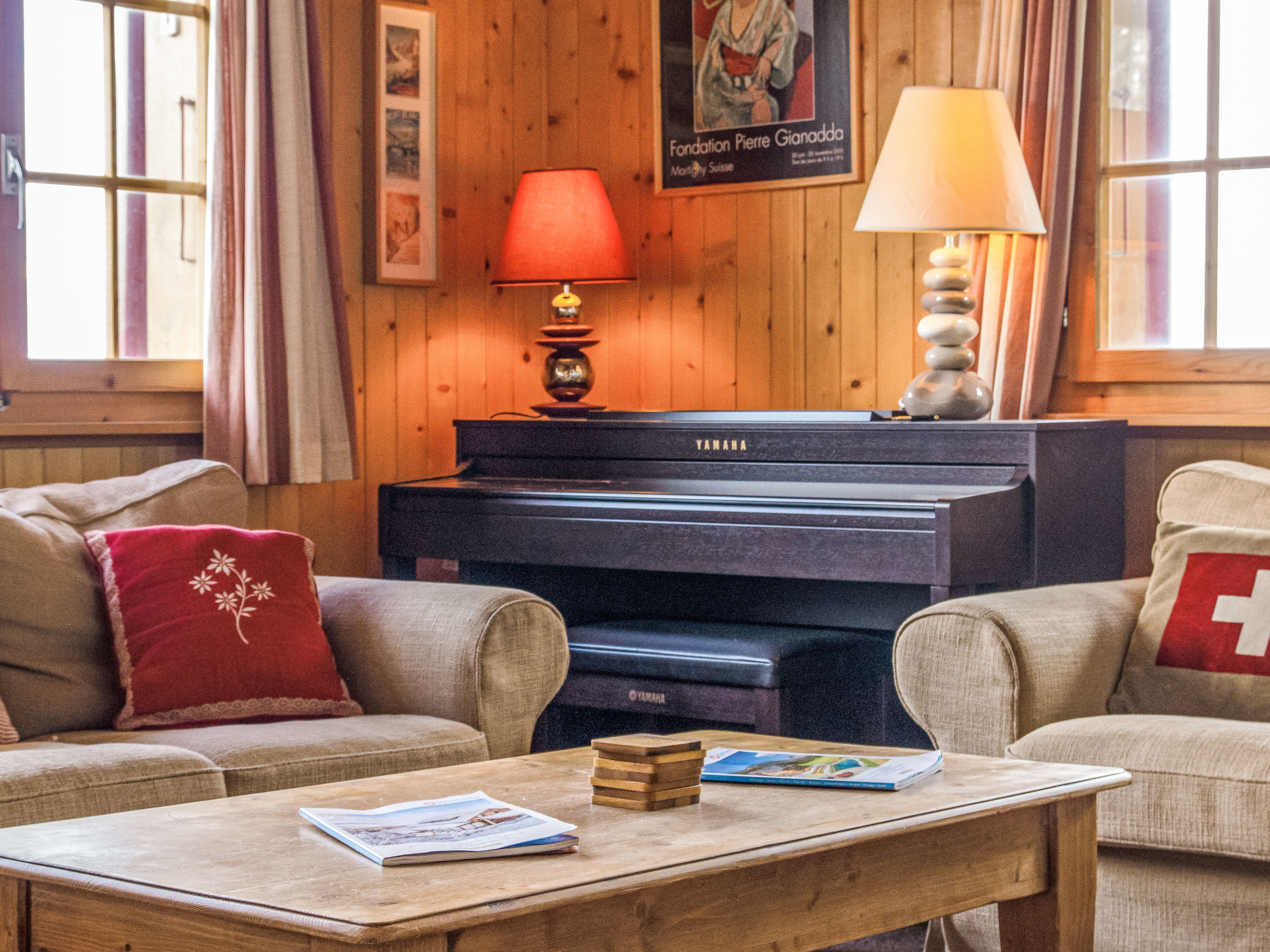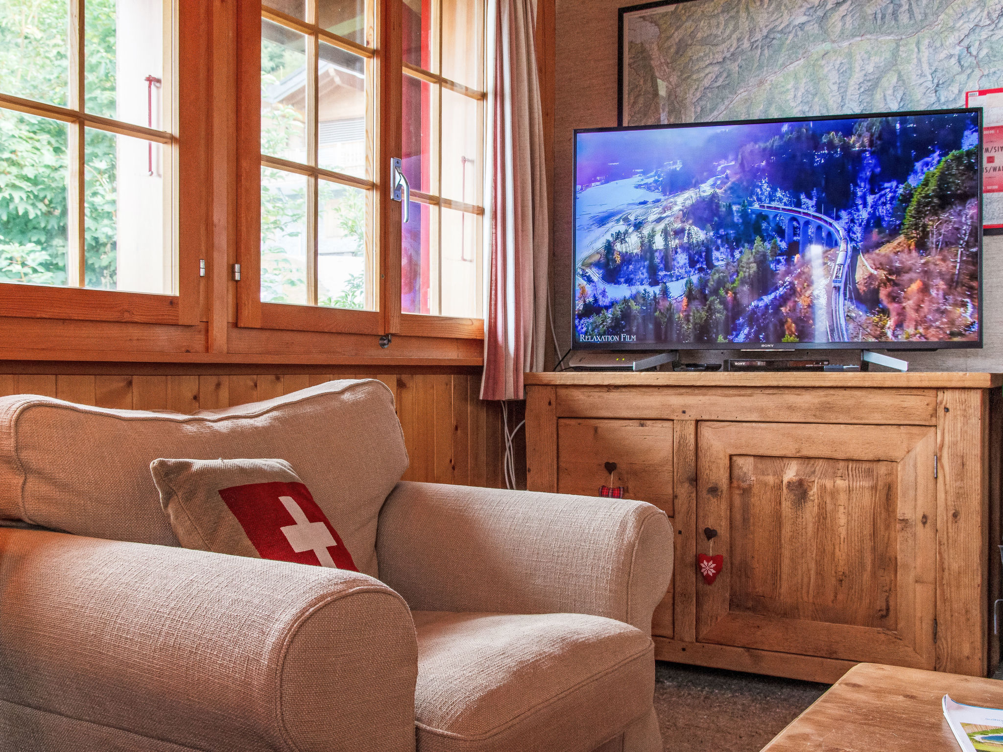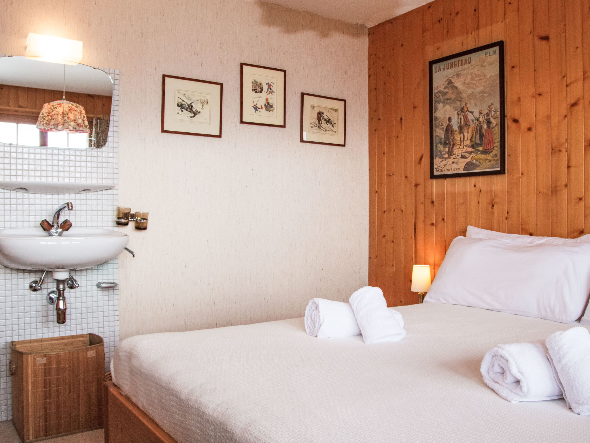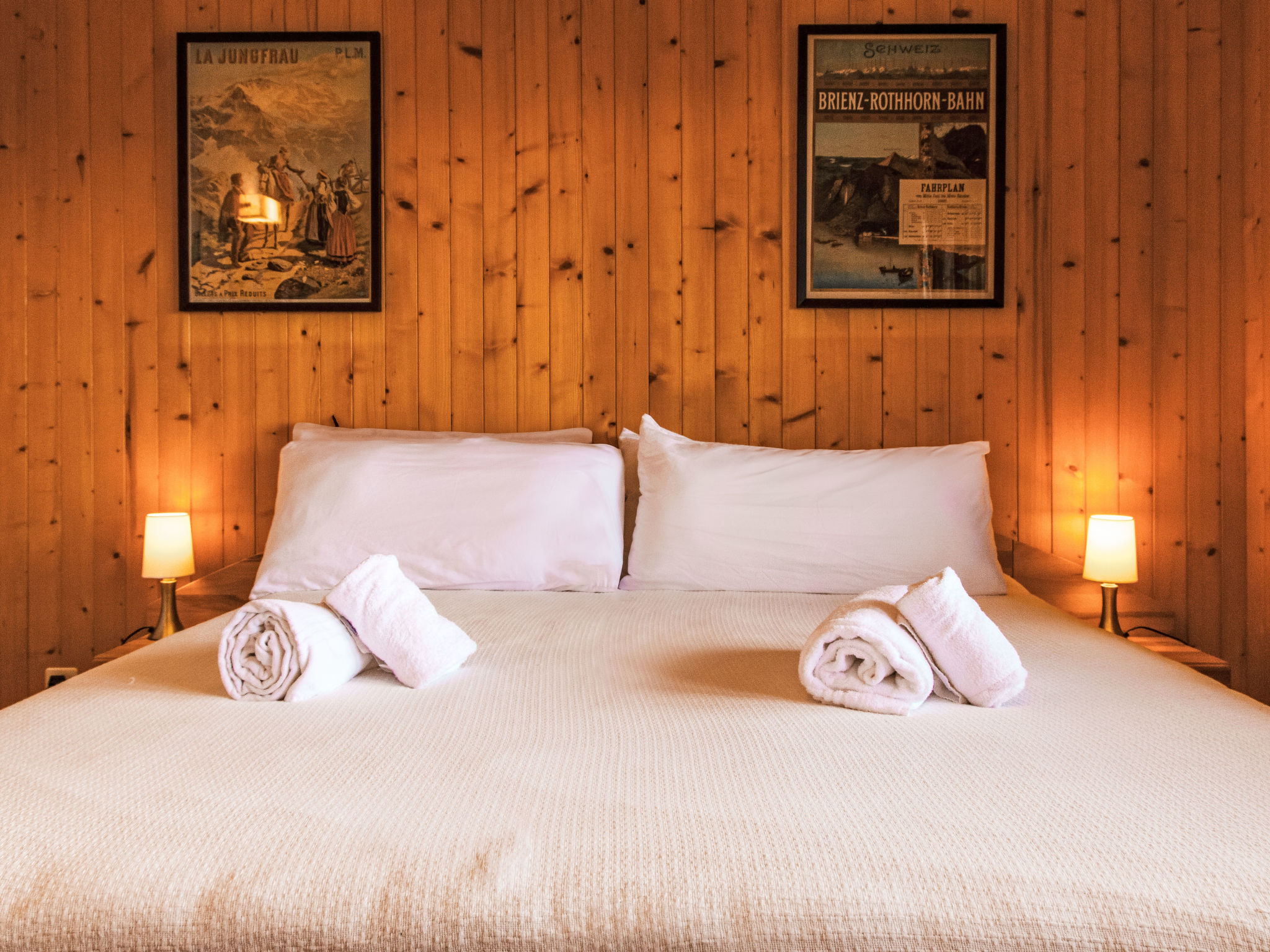 "Gemini", 4-Zimmer-Chalet 100 m2 auf 2 Stockwerken. Schön eingerichtet: Wohn-/Esszimmer mit offenem Kamin (nur Deko), Kabel-TV und DVD. Offene Küche (Backofen, Geschirrspüler, 4 Glaskeramikplatten, Toaster, Wasserkocher, Mikrowelle, Tiefkühler, elektrische Kaffeemaschine, Kapseln für die Kaffeemaschine (Nespresso) extra, Fondue Set (Chinoise, Käse)). Dusche/WC. E-Heizung. Unteres Geschoss: 1 Zimmer mit 1 franz. Bett (180 cm, Länge 200 cm), Waschbecken. 1 Zimmer mit 2 x 2 Etagenbetten (90 cm, Länge 200 cm), Waschbecken. 1 kleines Zimmer mit 1 franz. Bett (140 cm, Länge 190 cm). Bad/WC. Balkon, Nordlage Terrasse, Westlage, kleiner Garten, Südlage. Terrassenmöbel, Gartengrill. Schöne Sicht auf die Berge und das Tal. Zur Verfügung: Waschmaschine, Wäschetrockner. Internet (WLAN). Parkplatz (2 Autos). Bitte beachten: Nichtraucher-Haus.