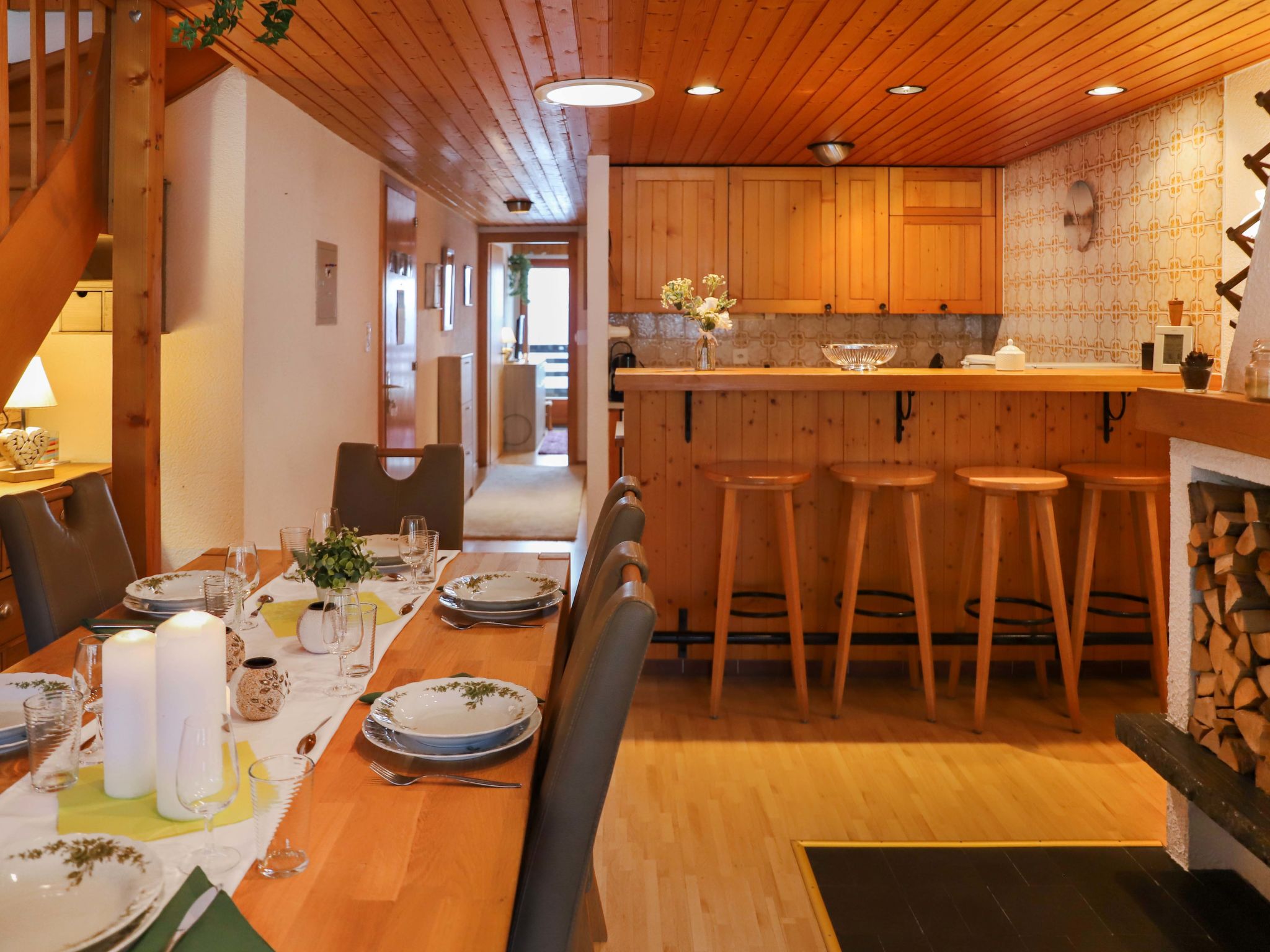 "Muverans I C3", 4-Zimmer-Wohnung 60 m2 im 3. Stock. Schön eingerichtet: Wohn-/Esszimmer mit offenem Kamin (nur Deko), Kabel-TV. Ausgang zum Balkon, Richtung Süden und Richtung Südosten. 1 Zimmer mit 2 Betten. Ausgang zum Balkon, Richtung Norden und Richtung Westen. Küche (4 Kochplatten, Backofen, Geschirrspüler, Mikrowelle, Tiefkühler, elektrische Kaffeemaschine, Kapseln für die Kaffeemaschine (Nespresso) extra, Racletteofen, Fondue Set (Käse)). Bad/WC, Dusche. Obergeschoss: 1 abgeschrägtes Zimmer, Deckenhöhe 60 - 150 cm mit Dachfenster mit 2 Betten. Abgeschrägtes, verbundenes Zimmer mit Dachfenster mit 2 Betten. Balkonmöbel, Elektrogrill, Liegestühle (2). Schöne Sicht auf die Berge und die Ortschaft. Zur Verfügung: Internet (Wireless LAN, gratis). Parkplatz Nr. 28 (überdacht), Höhe 200 cm, Breite 295 cm. Bitte beachten: Nichtraucher-Unterkunft.