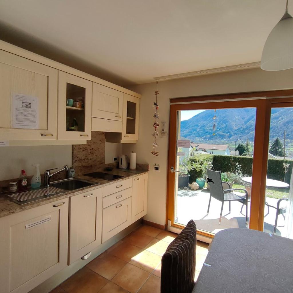 Diese Ferienwohnung mit einer Terrasse und Bergblick hat 1 Schlafzimmer, ein Wohnzimmer, einen Flachbild-TV, eine gut ausgestattete Küchenzeile mit einem Kühlschrank und einem Ofen sowie 1 Badezimmer mit einer Dusche. In dieser Ferienwohnung werden Handtücher und Bettwäsche angeboten.