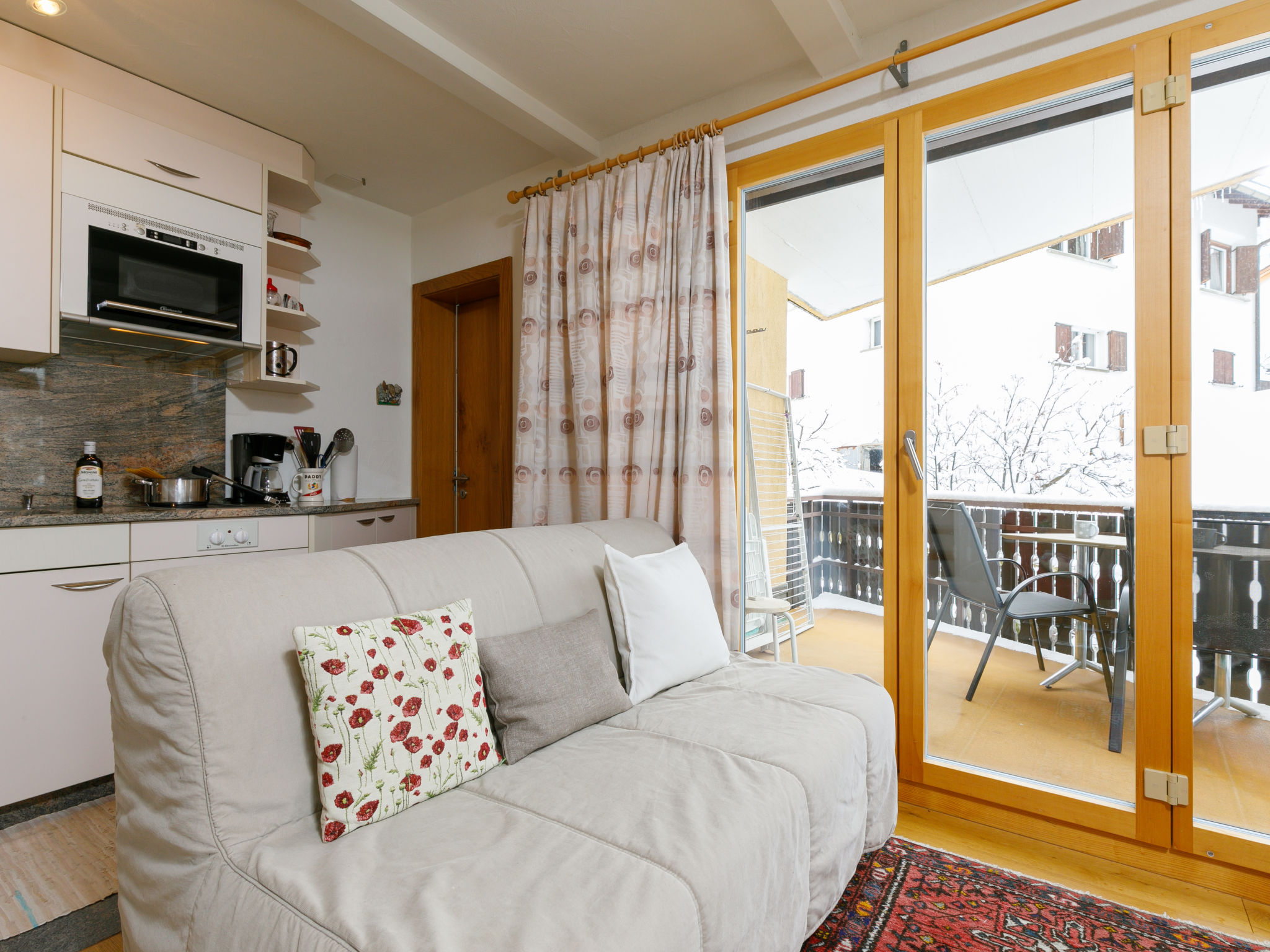 "Residenza Chesa Margun 35-6", 1-Zimmer-Wohnung 40 m2. Geräumig, schön und gemütlich eingerichtet: Wohn-/Schlafzimmer mit 1 Doppelbett und Kabel-TV (Flachbildschirm), Radio. Ausgang zum Balkon. Kochnische (Backofen, Geschirrspüler, 2 Glaskeramikplatten, Mikrowelle, elektrische Kaffeemaschine) mit Esstisch. Bad/WC. E-Heizung. Parkettboden. Grosser Balkon, Südlage. Seitliche Sicht auf die Berge und die Ortschaft. Zur Verfügung: Telefon. Internet (Wireless LAN). Bitte beachten: Nichtraucher-Unterkunft.