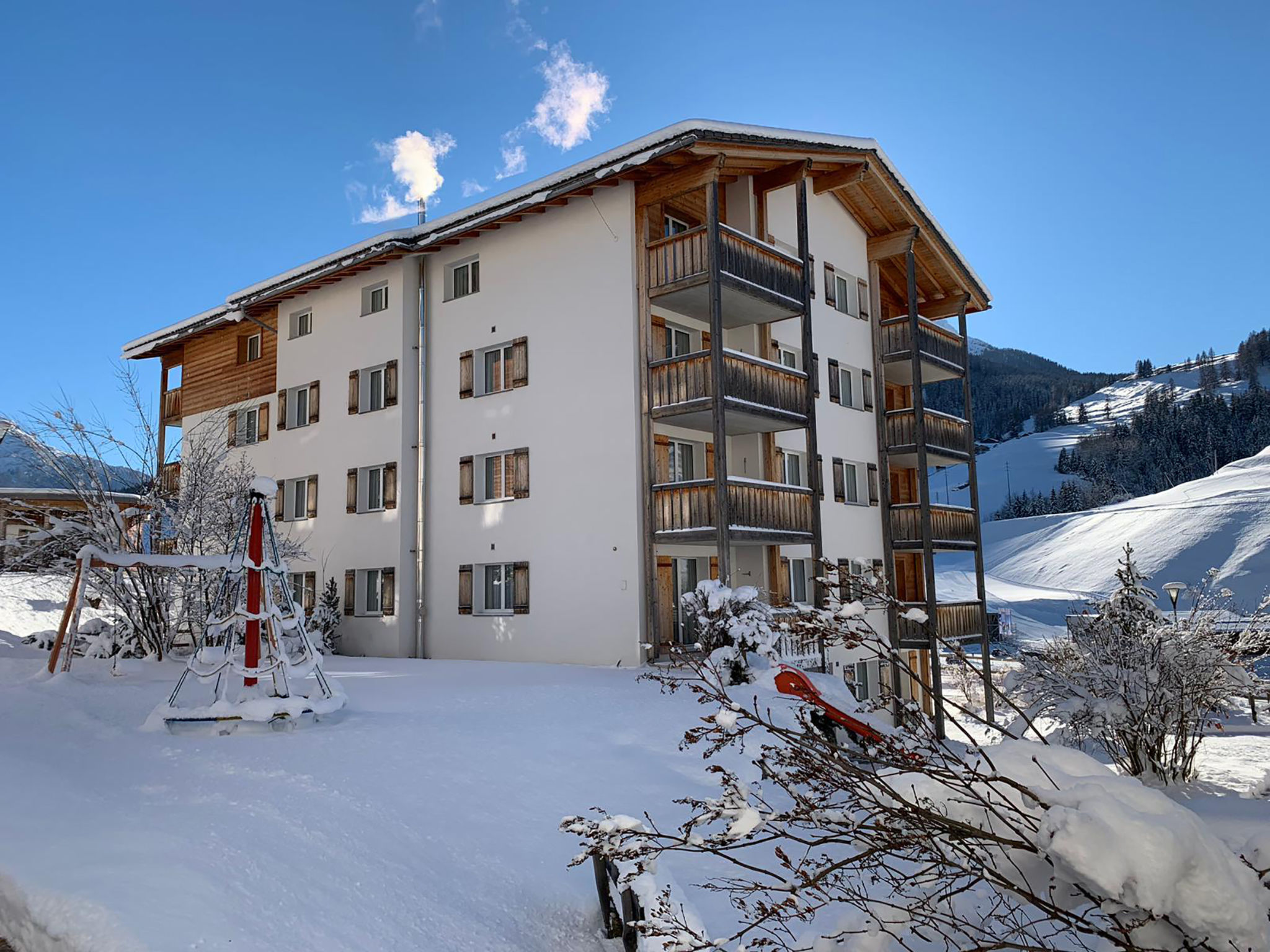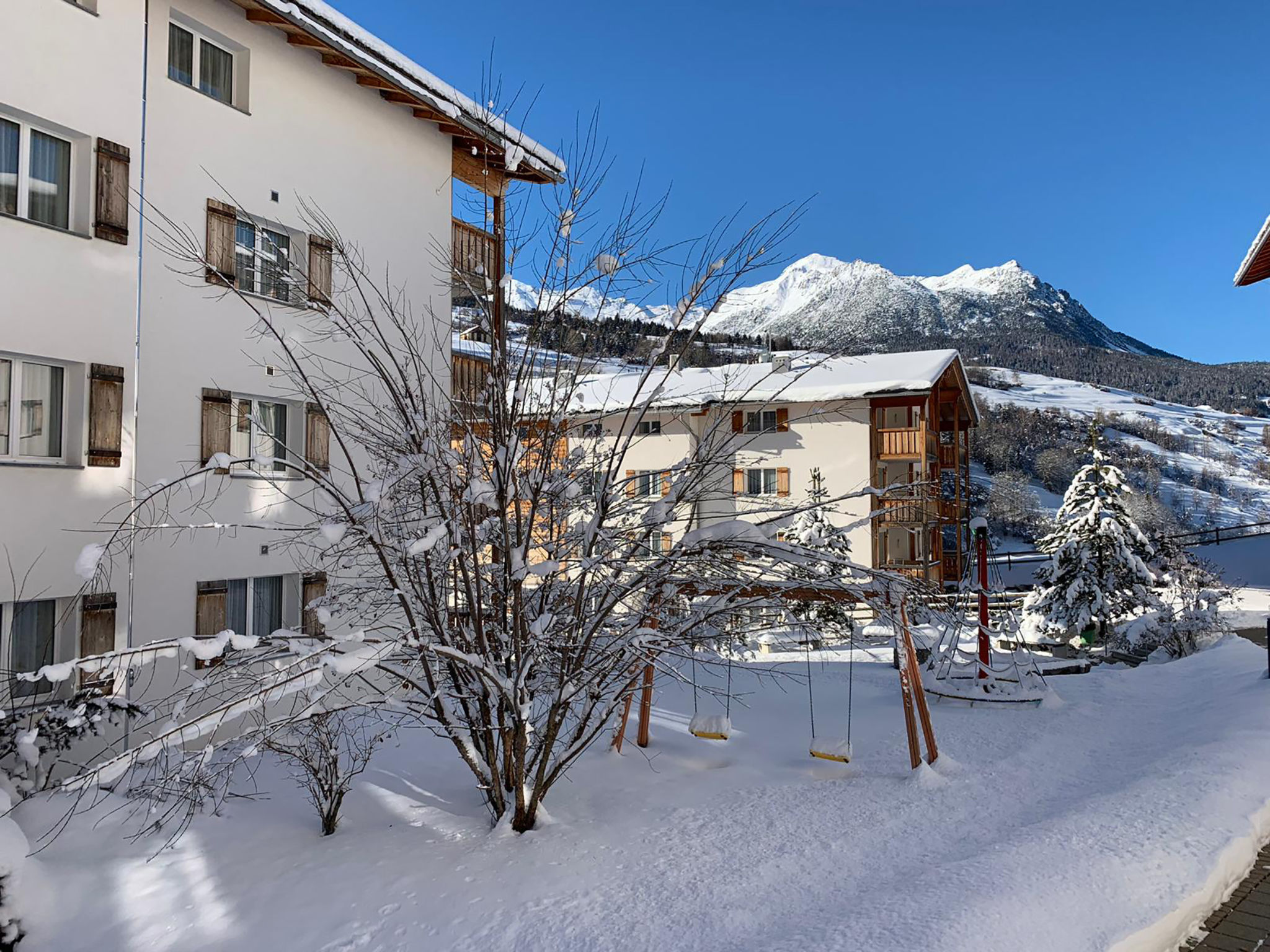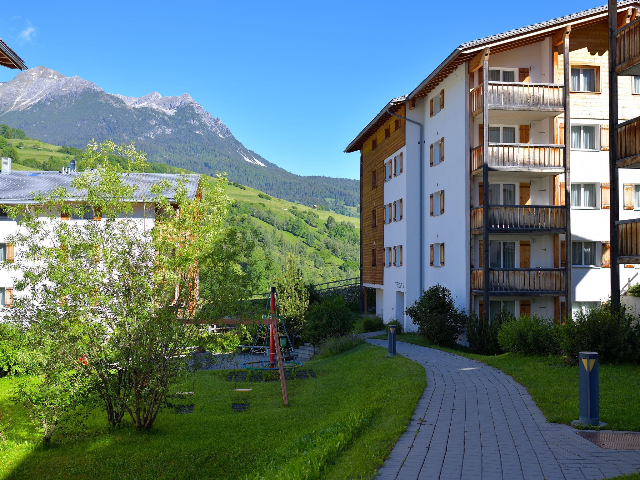 Kinderfreundliche, gemütliche, komfortable Ferienanlage "Surses Alpin", 1'200 m.ü.M.. 4 Häuser im Ferienresort. Im Ort, 200 m vom Zentrum, ruhige, sonnige Lage am Hang, 300 m vom Skigebiet. Zur Mitbenutzung: Grundstück, Liegewiese. Kinderspielplatz (Rutschbahn, Schaukel). In der Anlage: Empfang, Wireless LAN, Spielzimmer, Tischfussball, Fahrstuhl, Einstellraum für Fahrräder, Skiraum, Zentralheizung, Waschmaschine, Wäschetrockner (zur Mitbenutzung, extra), Trockenraum. Zufahrt bis zum Haus. Parkplatz (extra) beim Haus. Einkaufsgeschäft, Lebensmittelgeschäft, Restaurant 200 m, Bushaltestelle 200 m, Bahnstation "Tiefencastel" 9 km, Badesee. Golfplatz (18 Loch) 15 km, Minigolf 400 m, Skilift 300 m, Sessellift, Gondelbahn 300 m, Skisportanlagen, Skipisten, Skiverleih 300 m, Skibushaltestelle 10 m, Skischule, Schlittelbahn, Langlaufloipe, Eisfeld 800 m, Kinderspielplatz 50 m. Bekannte Skigebiete sind gut erreichbar: Lenzerheide 20 km, St.Moritz 38 km. Wandergebiete: Parc Ela, Engadin 35 km. Das Foto ist nur ein Wohnungsbeispiel. vergünstigte Skipässe (ab 3 Tage) vor Ort erhältlich.