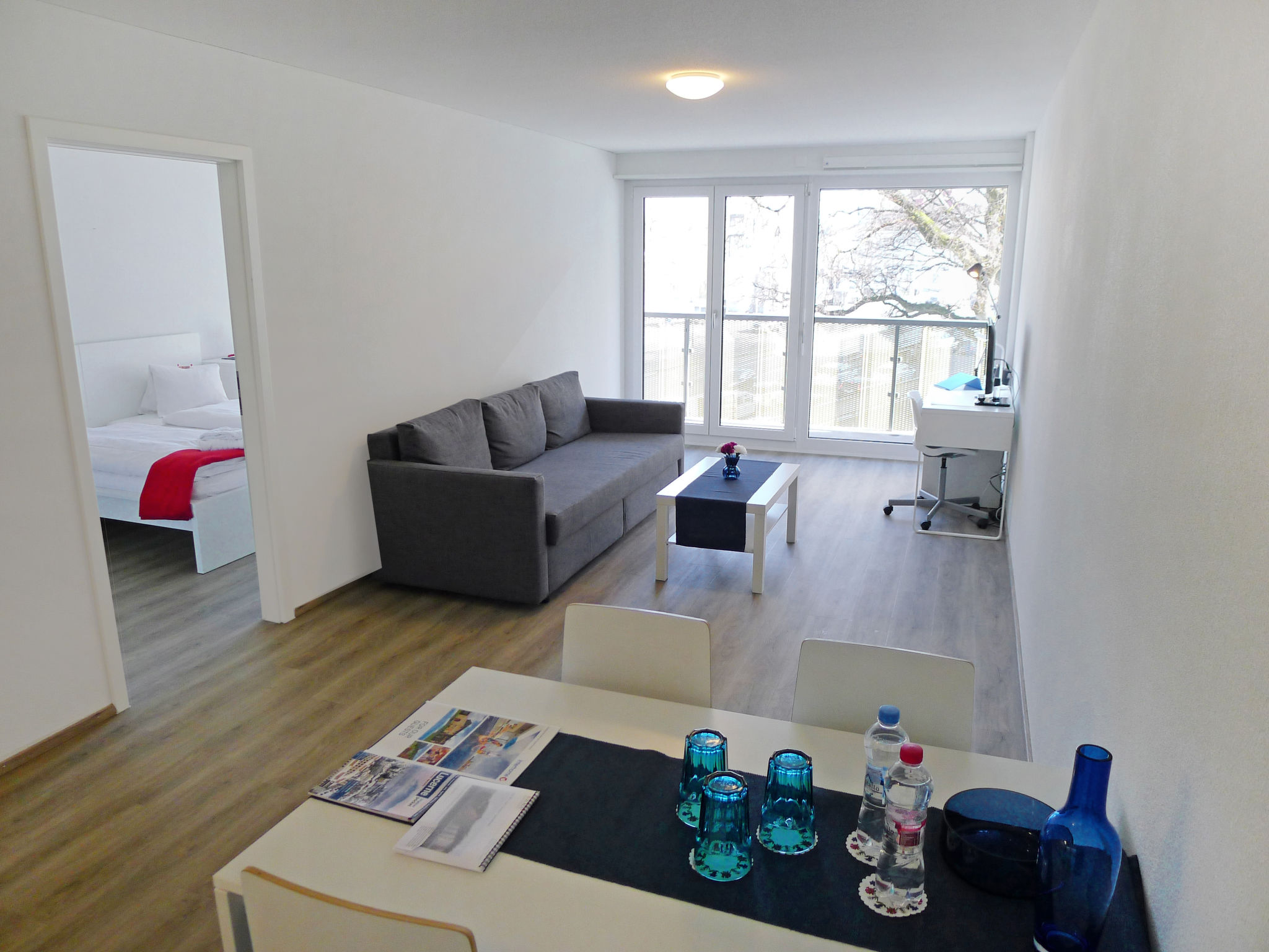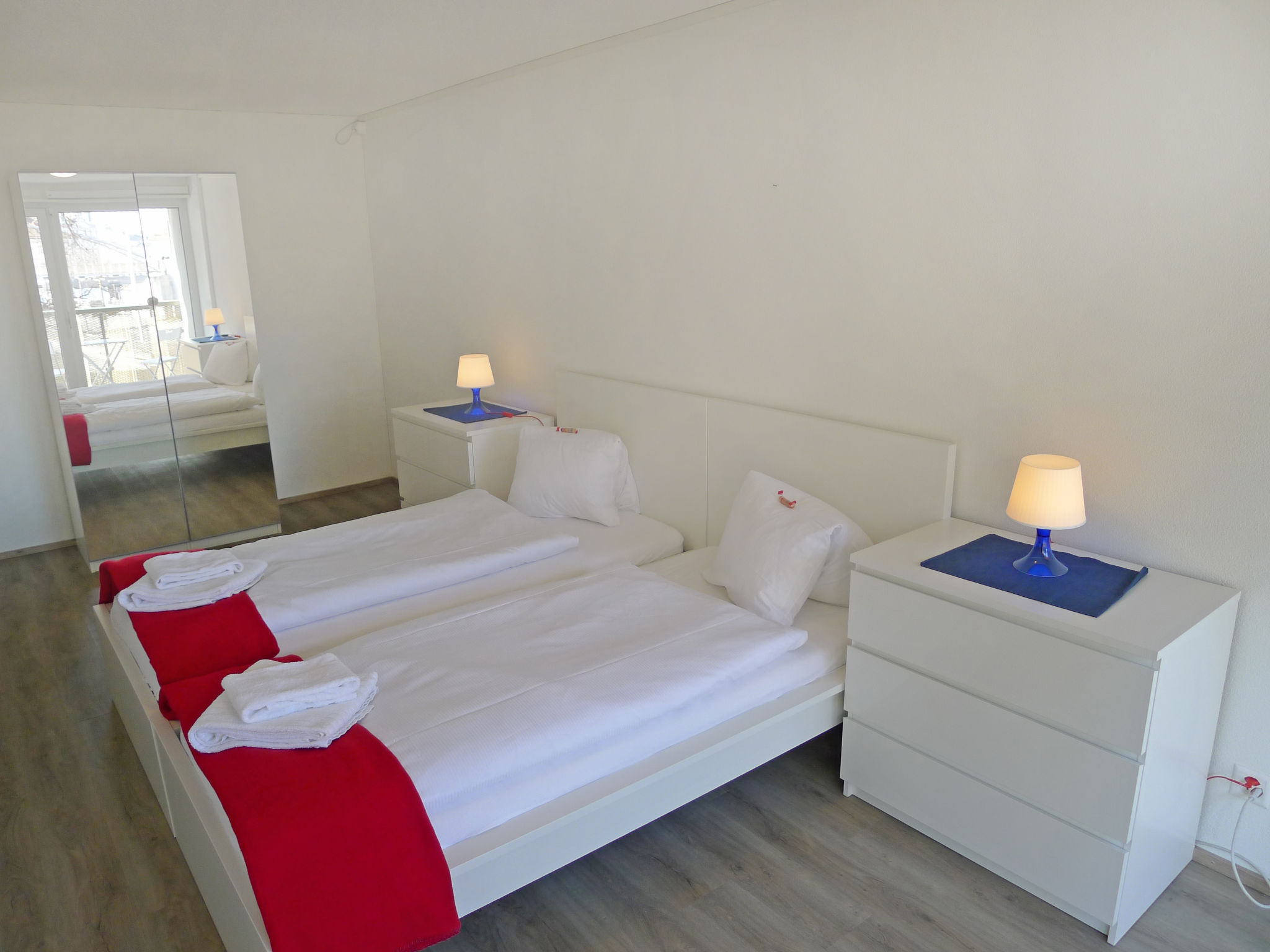 "Superior", 2-Zimmer-Wohnung 48 m2. Komfortabel und gemütlich eingerichtet: Wohn-/Esszimmer mit 1 Diwanbett (140 cm, Länge 200 cm), Kabel-TV (Flachbildschirm). Ausgang zum Balkon. 1 Zimmer mit 2 Betten (90 cm, Länge 200 cm). Offene Küche (4 Kochplatten, Backofen, elektrische Kaffeemaschine, Kapseln für die Kaffeemaschine (Nespresso) extra). Dusche/WC. Balkon. Zur Verfügung: Internet (Wireless LAN, gratis). Bitte beachten: Nichtraucher-Unterkunft.
