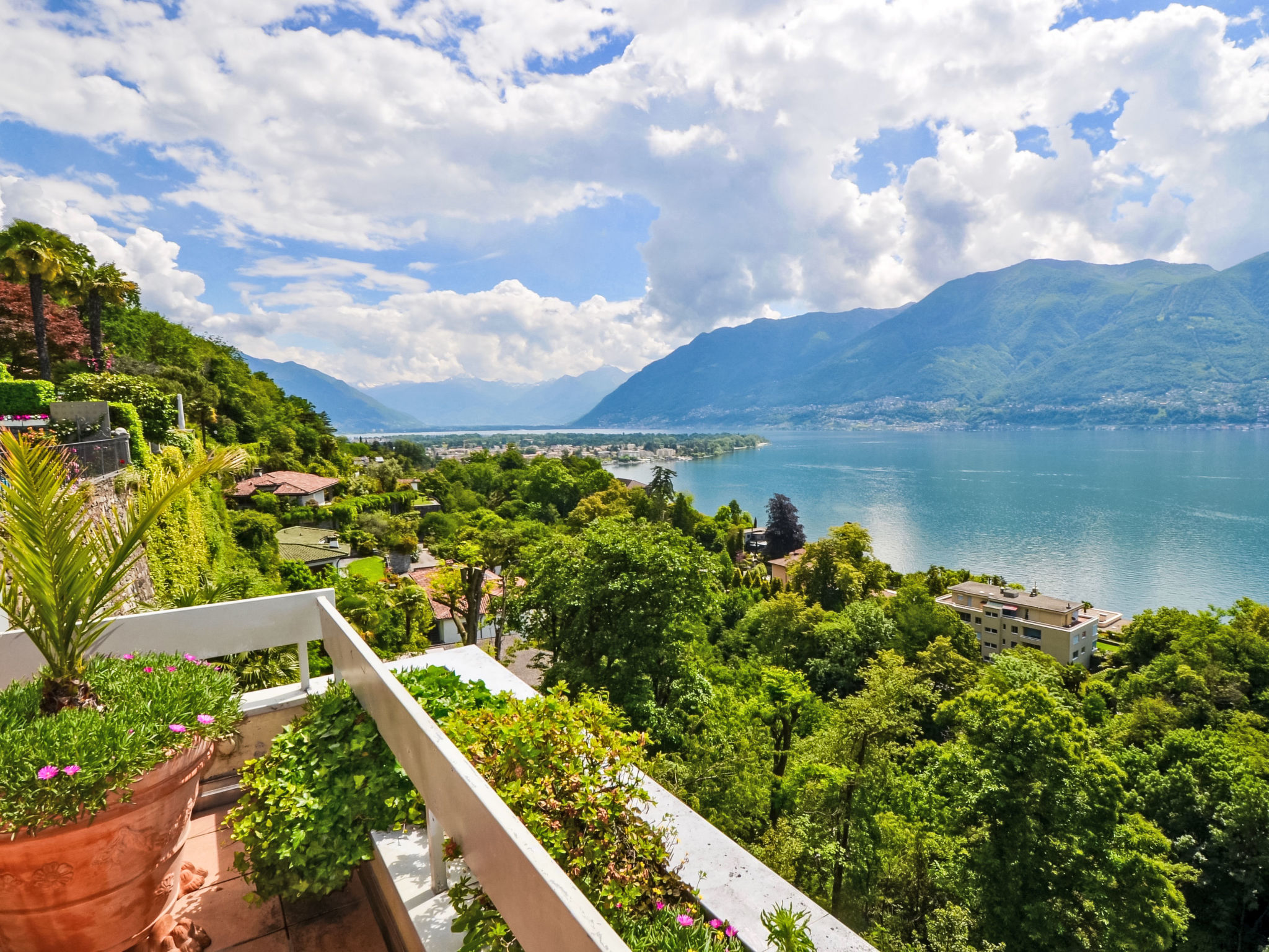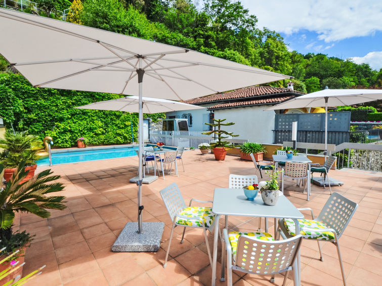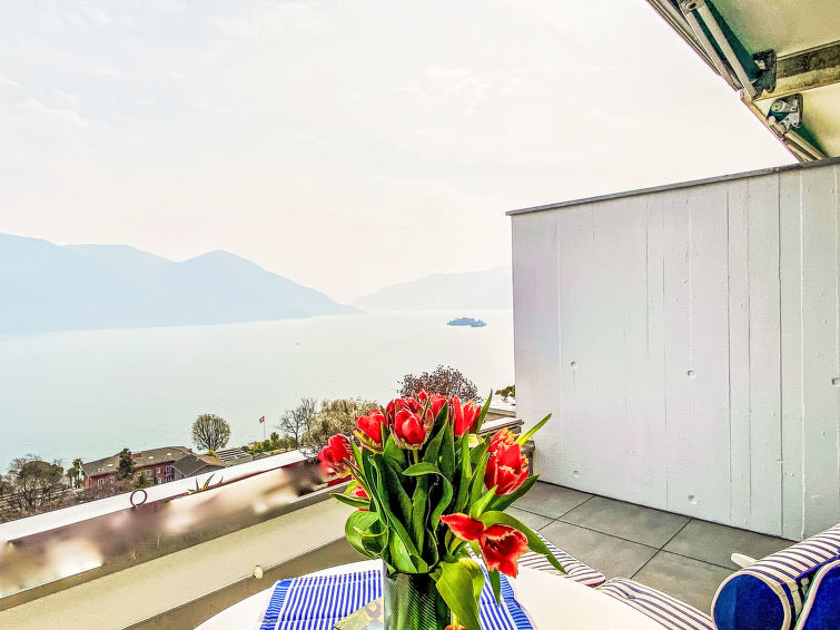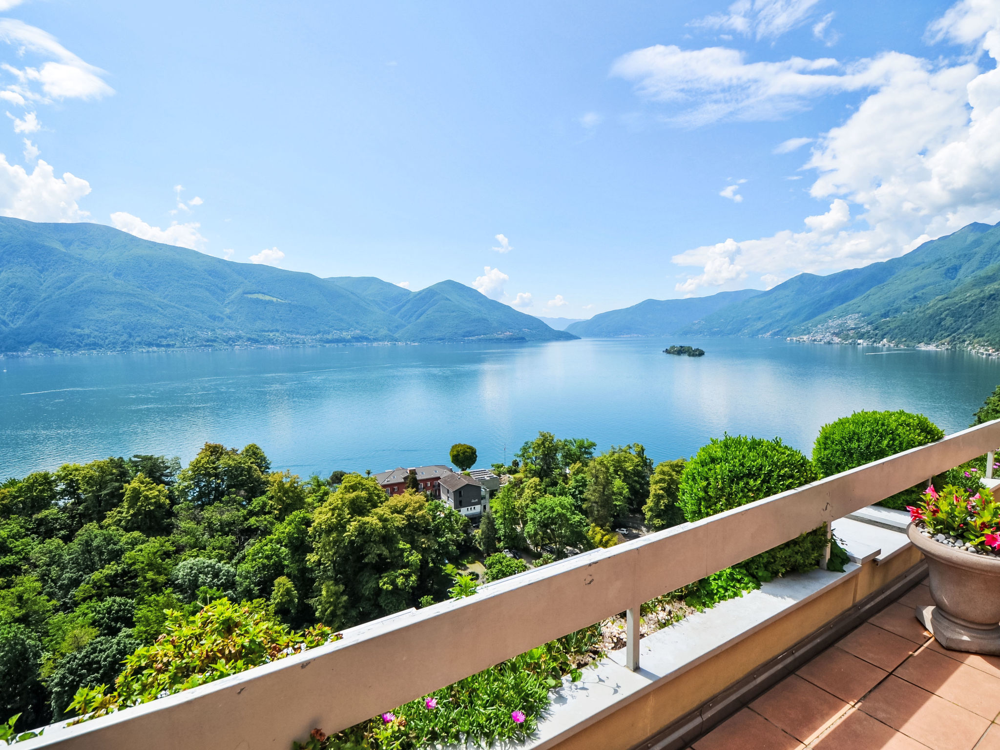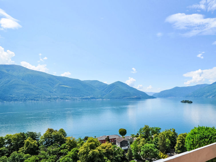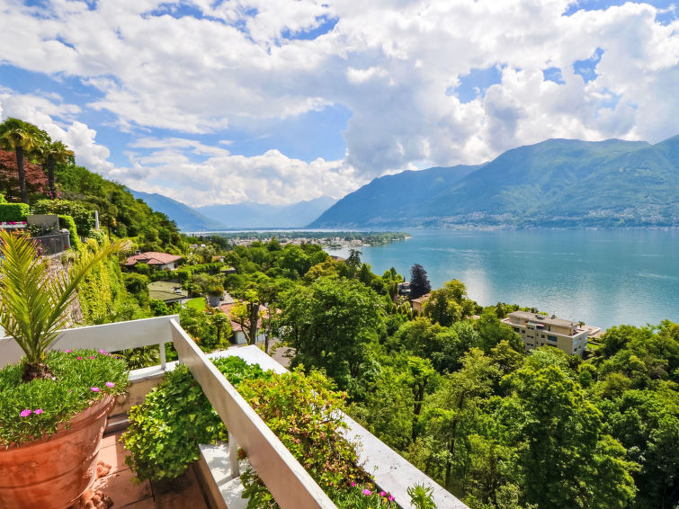 Moscia - Ascona: Schöne Residenz "Sollevante". Am Ortsrand, 2.5 km vom Zentrum von Ascona, ruhige, sonnige, erhöhte Lage am Hang, Richtung Südosten. Zur Mitbenutzung: Schwimmbad (7 x 5 m, 190 cm tief, saisonale Verfügbarkeit: 01.Mai. - 30.Sep.). Aussendusche, Terrasse. Im Hause: Wireless LAN, Einstellraum für Fahrräder, Zentralheizung. Zufahrt bis zum Haus. Lebensmittelgeschäft 2.5 km, Restaurant 200 m, Bushaltestelle "Ascona Moscia Linie 316" 400 m, Bahnstation "Locarno SBB" 6 km. Golfplatz 4 km, Wanderwege ab Haus 5 m. Nahe gelegene Sehenswürdigkeiten: Madonana del Sasso, Orselina, Locarno-Ascona, Ronco sopra Ascona, Falconeria, Kamelienpark, Piazza Grande. Wandergebiete: Cardada, Monte Bré, Monti di Ronco, Vallemaggia - Valle Verzasca. Bitte beachten: Tiere in der Umgebung. Terrassenbau mit wunderbarer Panoramasicht auf den Lago Maggiore. Eine Seilbahn verbindet die verschiedenen Ebenen.