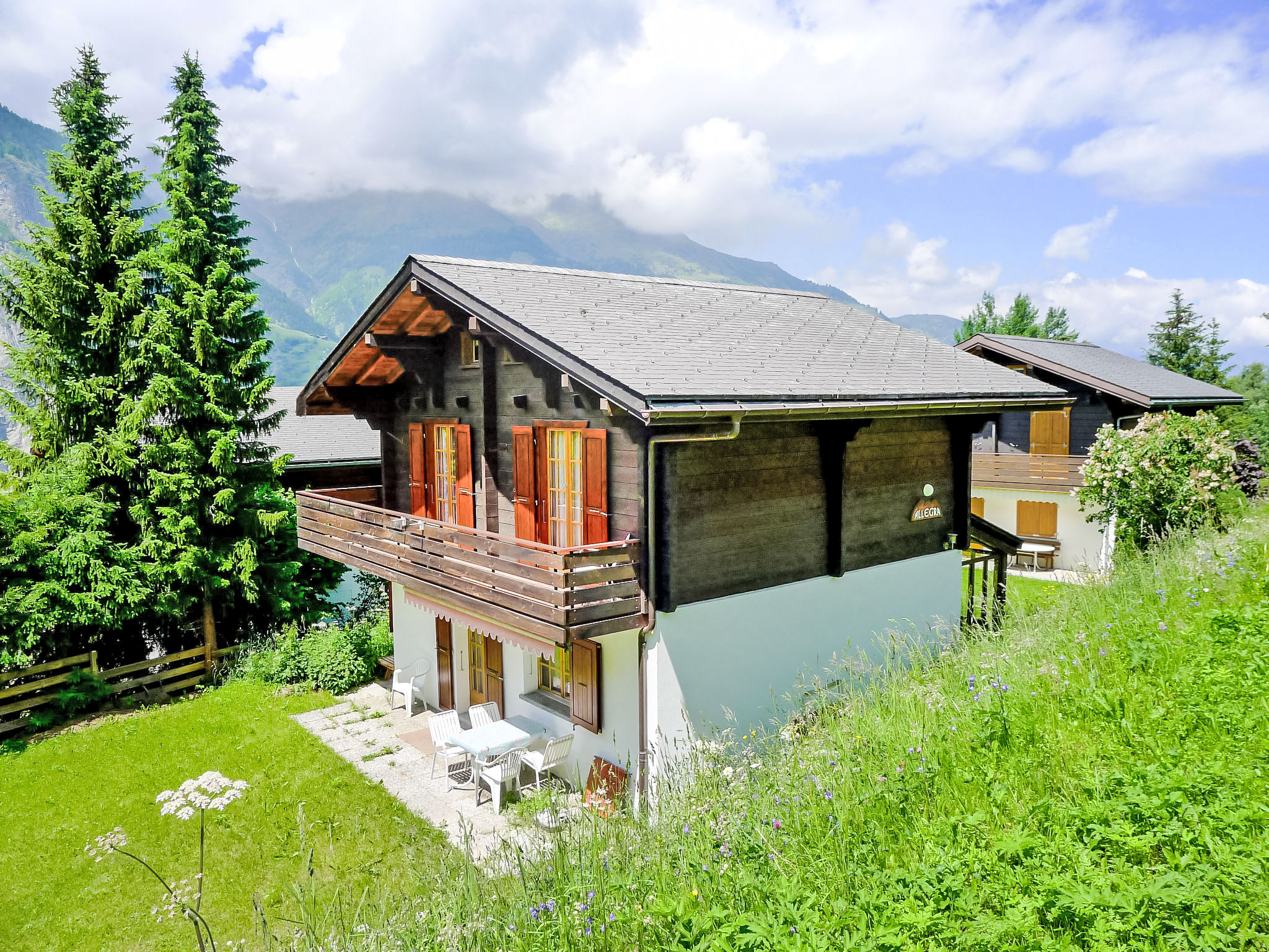 Rittinen 2 km von Grächen: Gemütliches Chalet "Allegra", 1'500 m.ü.M.. Im Ortsteil Rittinen, sonnige Lage. Zur Alleinbenutzung: Grundstück, Garten, Liegewiese. Im Hause: Zentralheizung. Zufahrt bis 30 m zum Haus. 30 m steiler Fussweg (10 Stufen) bis zum Haus. Lebensmittelgeschäft 2 km, Restaurant 200 m, Bushaltestelle "Niedergrächen" 300 m. Luftseilbahn 2 km, Bergeisenbahn 2 km, Skilift 2 km, Skibushaltestelle 150 m, Skischule 2 km, Langlaufloipe 2 km, Eisfeld 2 km.