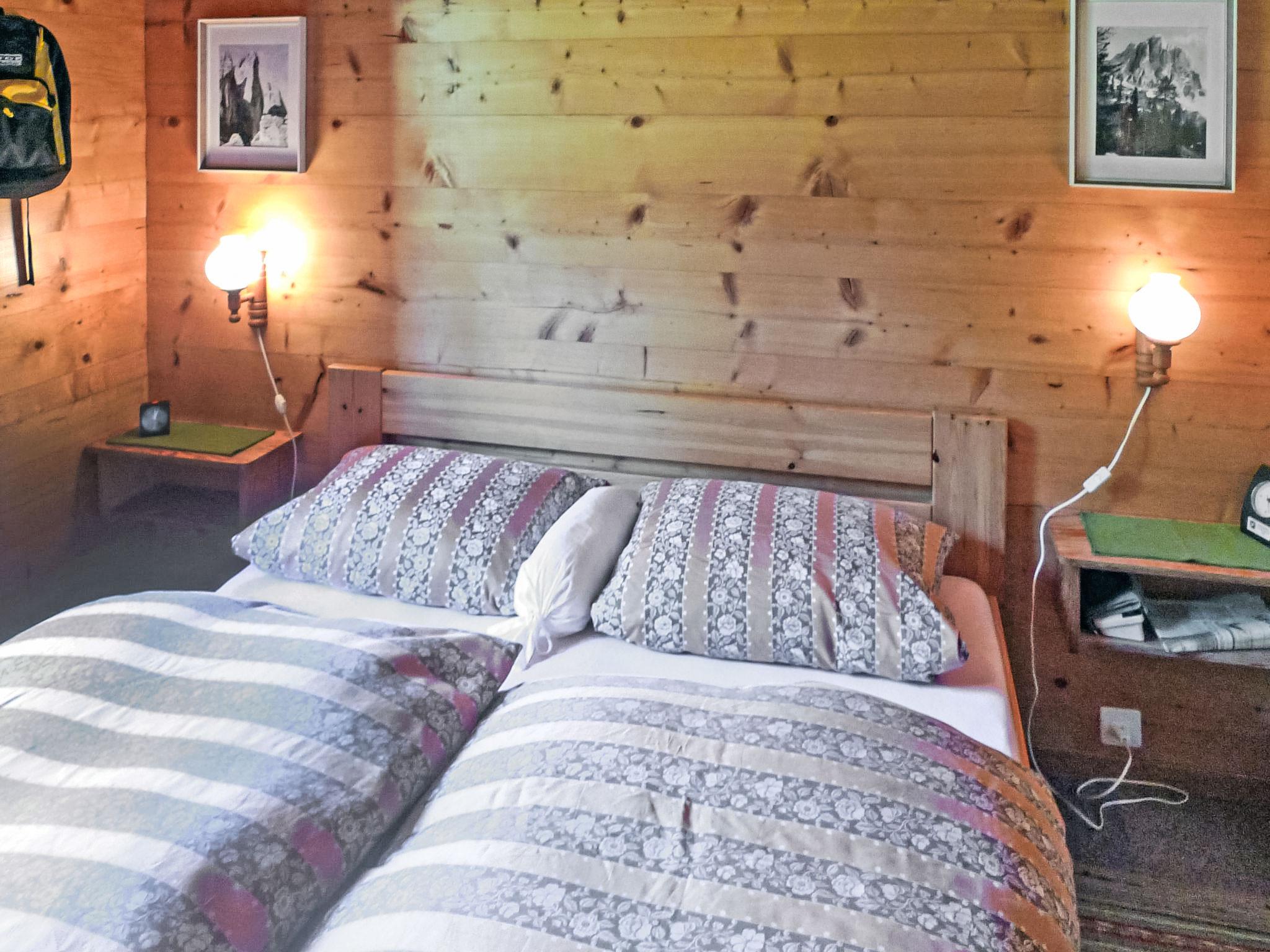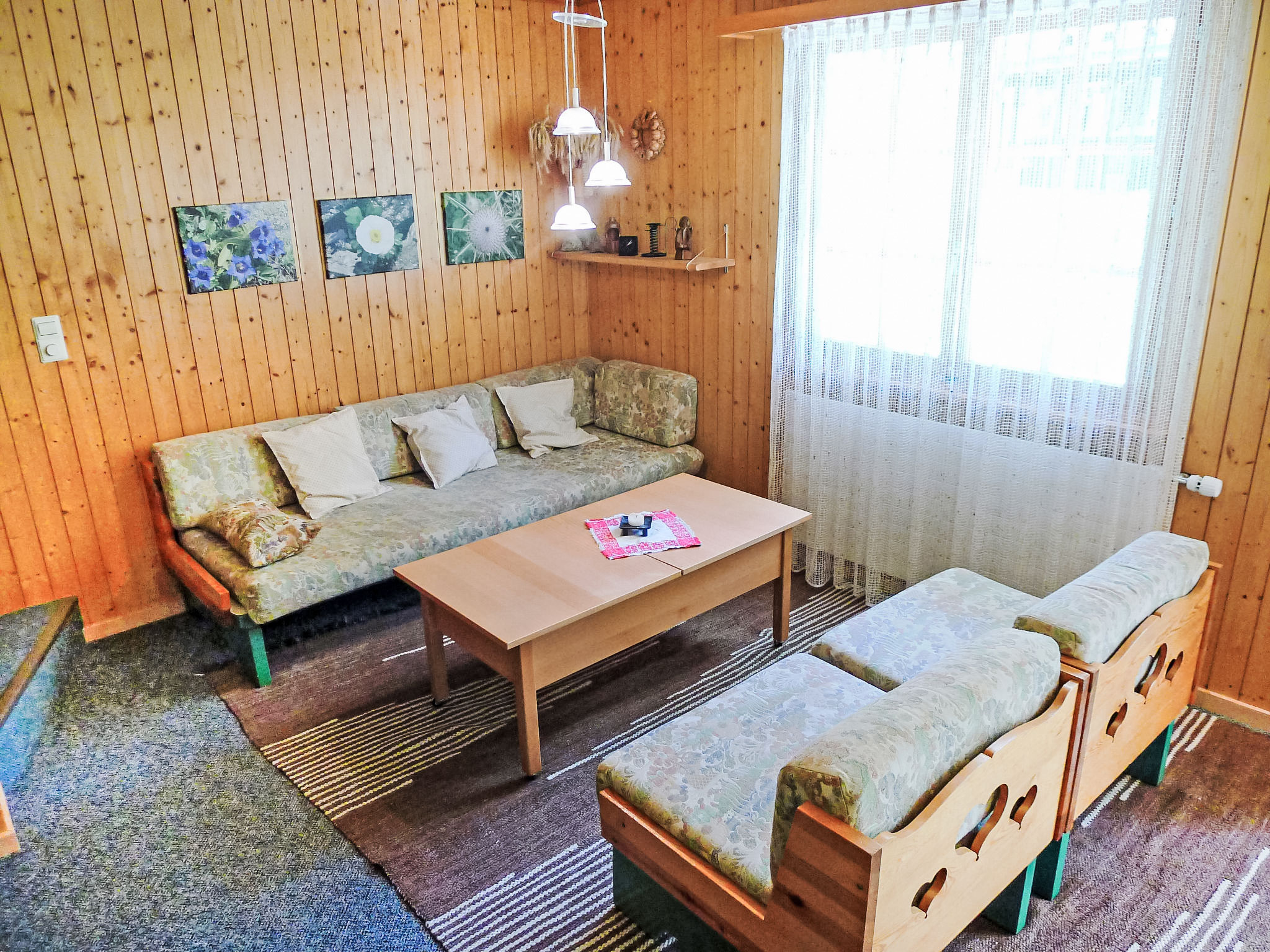 4-Zimmer-Chalet 75 m2. Zweckmässig und gemütlich eingerichtet: Wohn-/Esszimmer mit Bad/WC, Waschbecken und Kabel-TV (Flachbildschirm), Radio und DVD. Ausgang zur Terrasse. Offene Küche (Backofen, Geschirrspüler, 4 Glaskeramikplatten, Toaster, Fondue Set (Käse)). Sep. WC. Obergeschoss: 2 Zimmer, jedes Zimmer mit 1 Doppelbett. Ausgang zum Balkon, Richtung Süden und Richtung Osten. 1 Zimmer mit 1 x 2 Etagenbetten. Dusche/WC. Balkon 15 m2, Terrasse 12 m2. Terrassenmöbel, Gartengrill, Liegestühle (4). Schöne Sicht auf die Berge. Zur Verfügung: Waschmaschine, Babybett bis 2 Jahre. Internet (Wireless LAN, gratis). Parkplatz. Bitte beachten: Nichtraucher-Unterkunft. keine Haustiere erlaubt.