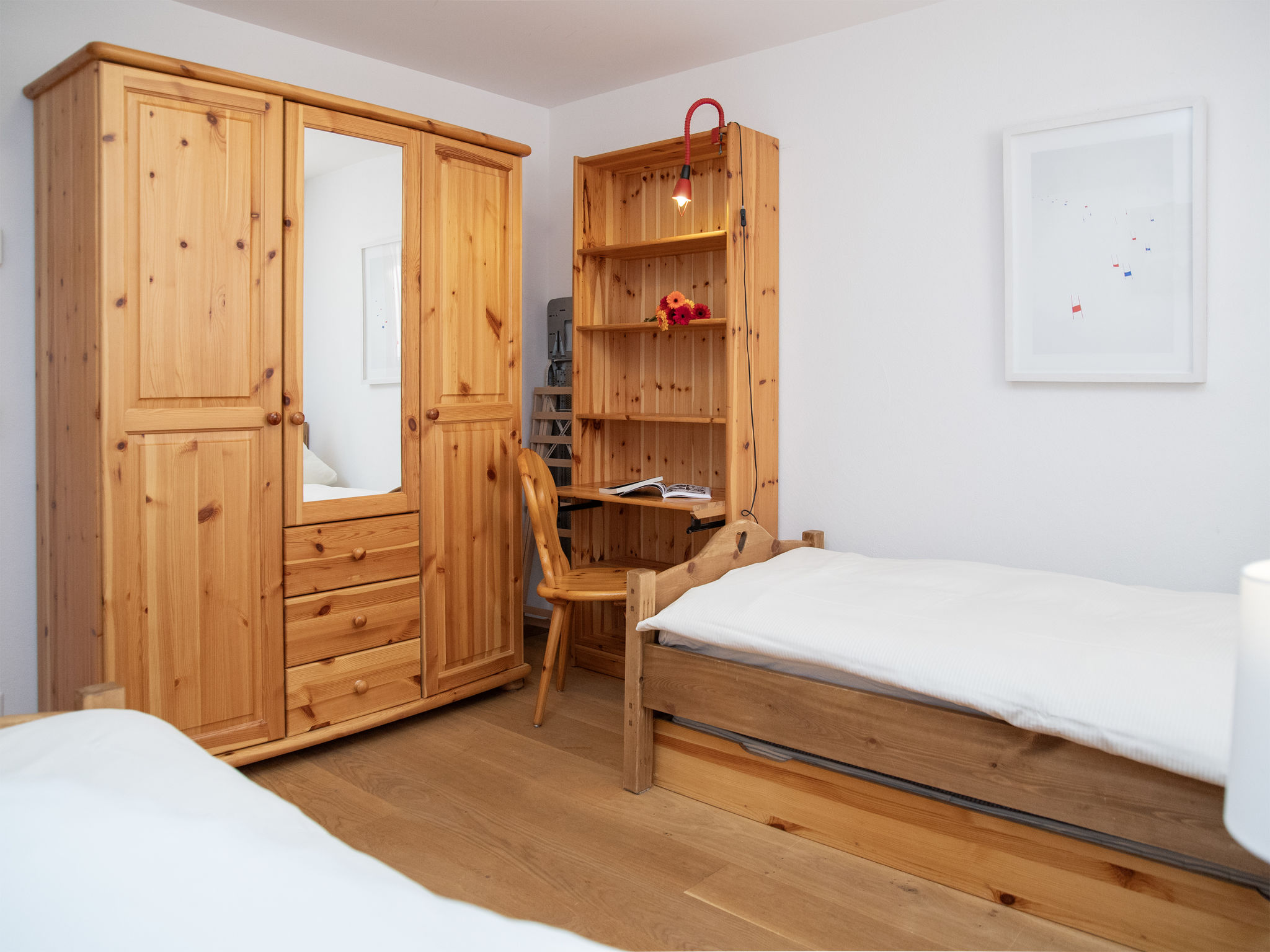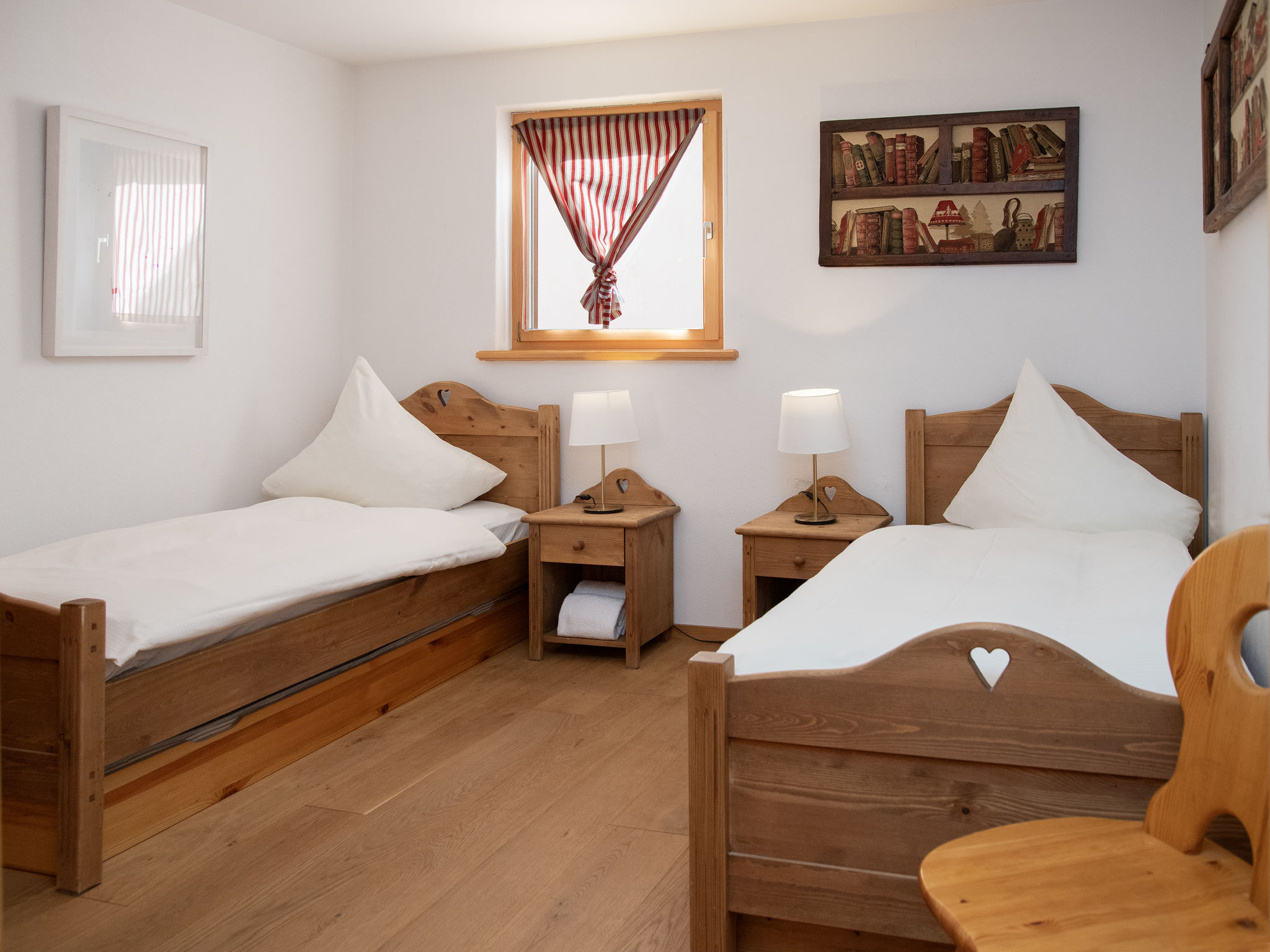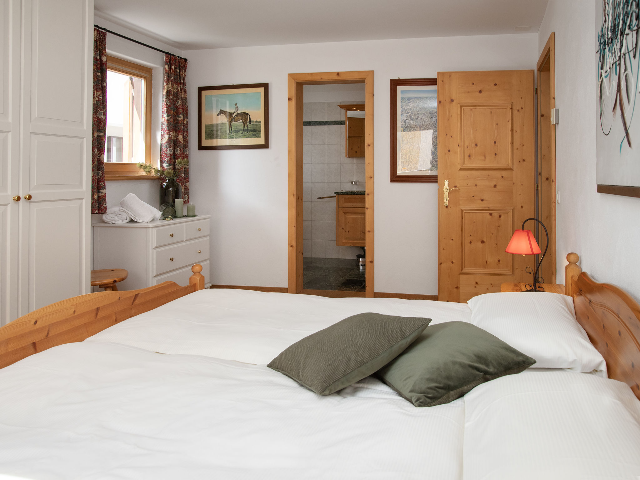 "Chesa Dal Luf B6", 3-Zimmer-Wohnung 100 m2 im 1. Stock. Geräumig und hell, geschmackvoll und gemütlich eingerichtet: offenes Wohn-/Esszimmer mit Panoramafenster mit Schwedenofen und TV (Flachbildschirm). Ausgang zum Balkon. 1 Kinderzimmer mit 2 Betten (80 cm, Länge 200 cm). 1 Doppelzimmer 12 m2 mit 1 Doppelbett (2 x 90 cm, Länge 200 cm). Küche (Backofen, Geschirrspüler, 4 Induktionskochplatten, Toaster, Wasserkocher, Mikrowelle, elektrische Kaffeemaschine, Kapseln für die Kaffeemaschine (Nespresso) extra, Racletteofen) mit Durchreiche. Bad/Bidet/WC, Dusche/WC. Balkonmöbel, Liegestühle (1). Sehr schöne Sicht auf die Berge und die Ortschaft. Zur Verfügung: Bügeleisen, Haartrockner. Internet (Wireless LAN, gratis). Garage Nr. 7 auf dem Grundstück, Höhe 250 cm, Breite 230 cm. Bitte beachten: Nichtraucher-Unterkunft, Nichtraucher-Haus. Maximal 1 Haustier/Hund erlaubt.