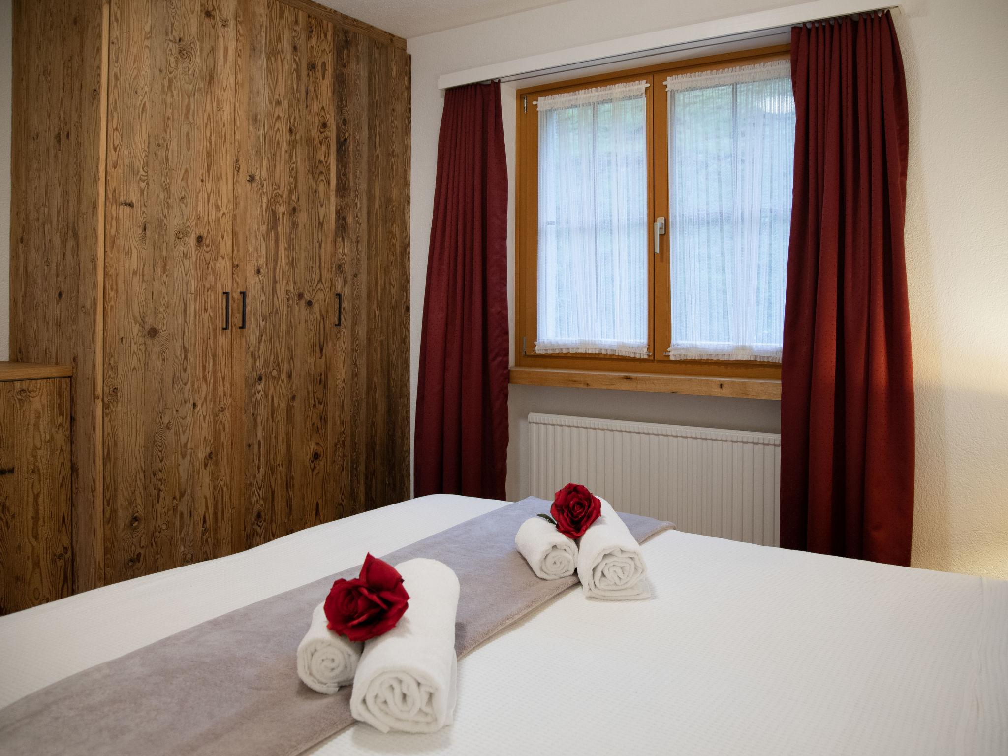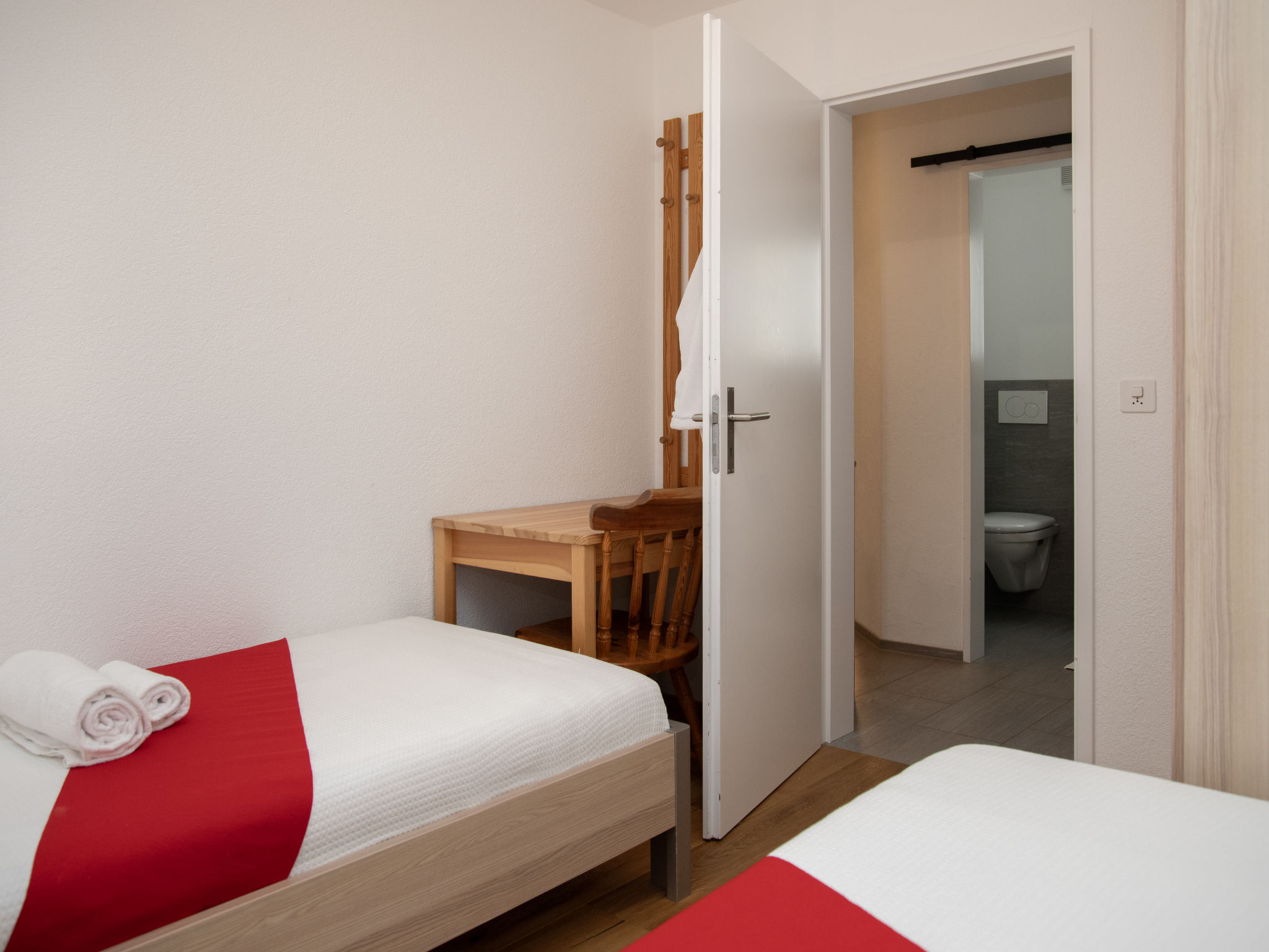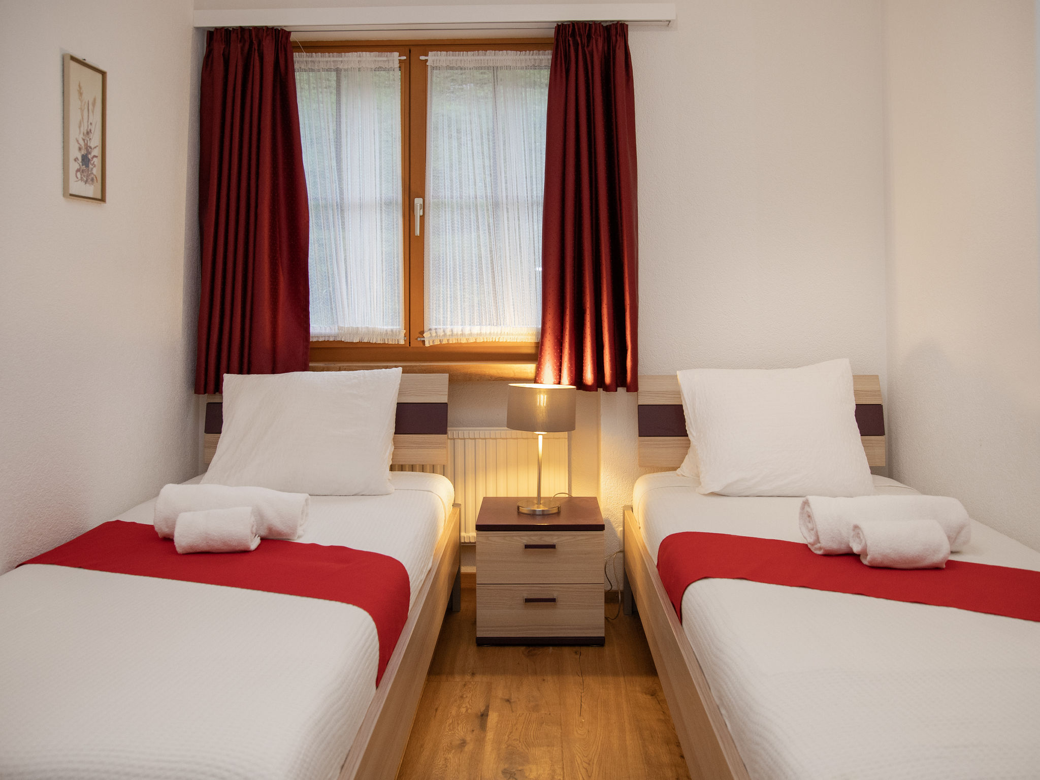 "La Siala Apt.35", 3-Zimmer-Wohnung 55 m2 im 1. Stock. Komfortabel und gemütlich eingerichtet: Wohn-/Esszimmer mit 1 Diwanbett und Kabel-TV (Flachbildschirm). Ausgang zum Balkon. 1 Doppelzimmer. 1 Zimmer mit 2 Betten. Küche (Backofen, Geschirrspüler, 4 Glaskeramikplatten, Toaster, Wasserkocher, elektrische Kaffeemaschine) mit Durchreiche. Dusche/WC. Parkettboden. Balkon 8 m2, Südlage. Balkonmöbel. Schöne Sicht auf die Berge, das Tal und die Landschaft. Zur Verfügung: Haartrockner. Internet (WLAN, gratis). Bitte beachten: Nichtraucher-Unterkunft.