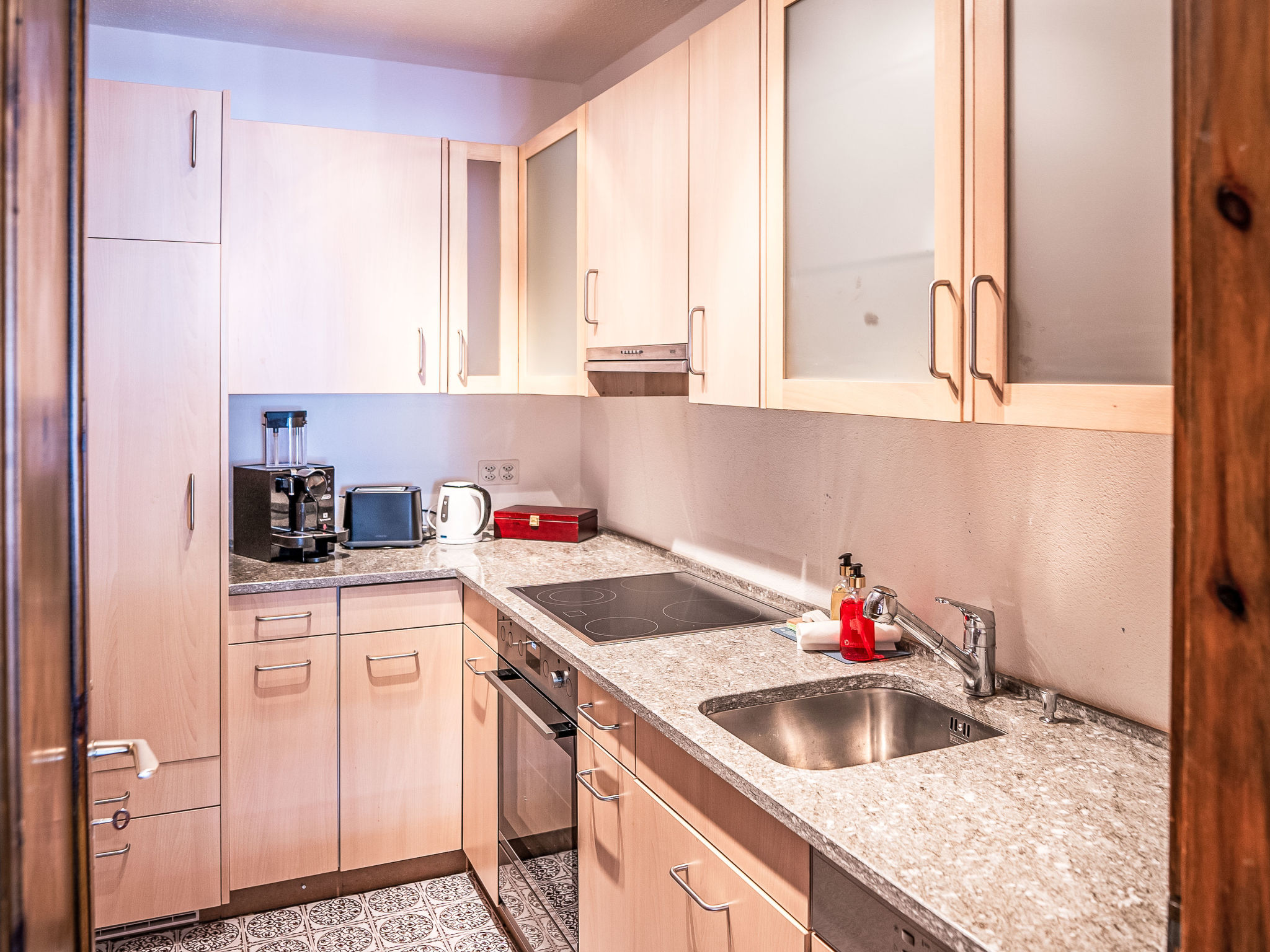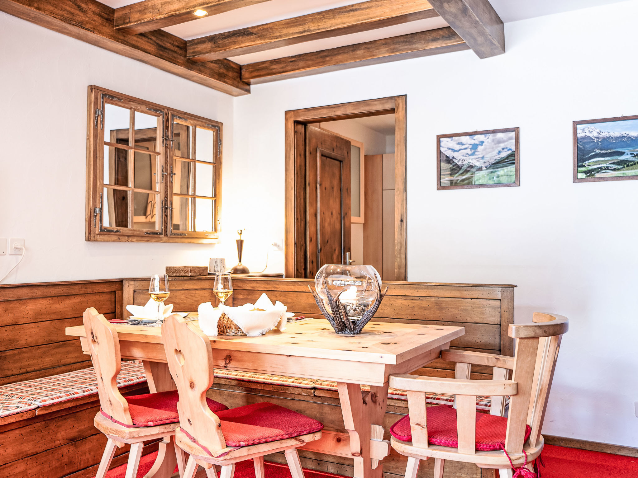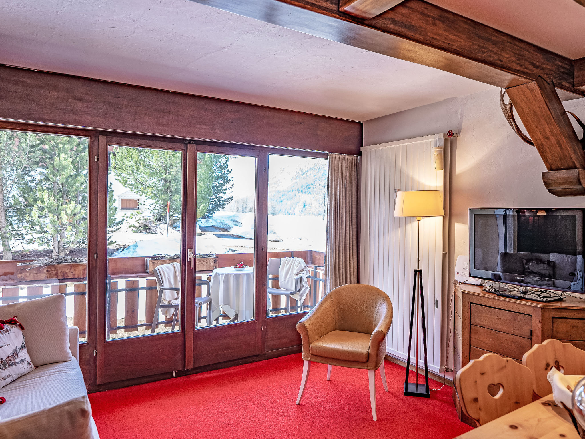 "Chesa Murtel", 2-Zimmer-Wohnung 54 m2, im erhöhten Erdgeschoss. Objekt geeignet für 2 Erwachsene. Geräumig, rustikal und gemütlich eingerichtet: Wohn-/Esszimmer mit Esstisch und TV (Flachbildschirm). Ausgang zum Balkon. 1 grosses Doppelzimmer mit 1 Doppelbett (1 x 160 cm, Länge 200 cm). Küche (Backofen, Geschirrspüler, 4 Glaskeramikplatten, Toaster, Wasserkocher, elektrische Kaffeemaschine, Kapseln für die Kaffeemaschine (Nespresso) extra, Racletteofen). Bad/WC. Heizung. Teppichboden. Balkonmöbel. Sehr schöne Sicht auf den See, die Berge und die Landschaft. Zur Verfügung: Haartrockner. Internet (Wireless LAN, gratis). Garage Nr. 13 (1 Auto), Höhe 200 cm, Breite 220 cm. Bitte beachten: Nichtraucher-Unterkunft, Nichtraucher-Haus. Maximal 1 Haustier/Hund erlaubt. Kein Fahrstuhl.