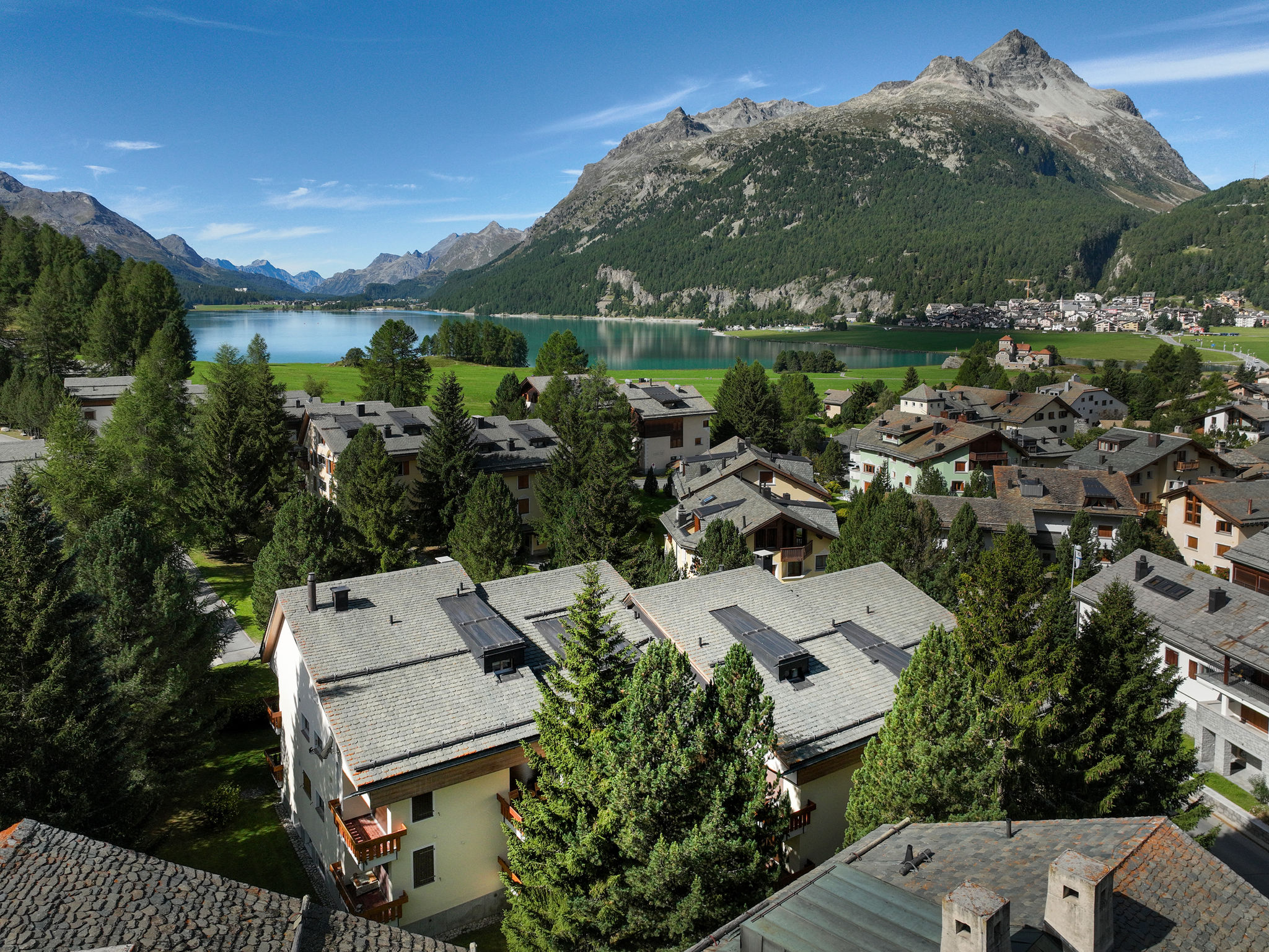 Surlej: Mehrfamilienhaus "Chesa Murtel", auf 3 Stockwerken. Im Ortszentrum von Surlej, in einem Wohnquartier, 400 m vom Waldrand, 800 m vom See. Im Hause: Skiraum, Waschmaschine, Wäschetrockner (zur Mitbenutzung, extra), Trockenraum. Gemeinschaftsgarage Nr. 13 beim Haus in 50 m. Einkaufsgeschäft 1.3 km, Lebensmittelgeschäft 1.3 km, Restaurant 300 m, Café 240 m, Fahrradverleih 70 m, Bushaltestelle "Surlej Parkplatz" 200 m, Hallenbad 6 km. Golfplatz (18 Loch) 13 km, Surfschule 1.6 km, Tennis 1.6 km, Tennishalle 6 km, Minigolf 6 km, Reitstall 3.6 km, Sportzentrum 1.6 km, Wanderwege ab Haus 100 m, Radweg 400 m, Luftseilbahn 500 m, Skilift 50 m, Skiverleih 70 m, Skibushaltestelle 60 m, Kinderskischule, Schlittelbahn 12 km, Langlaufloipe 200 m, Eisfeld 1.6 km. Bekannte Skigebiete sind gut erreichbar: Corvatsch - Furtschellas 500 m, Corviglia St. Moritz 6 km. Bekannte Seen in der Umgebung sind gut erreichbar: Silvaplana See 600 m, Champferer See 600 m, St. Moritz See 6 km. Bitte beachten: kein Fahrstuhl vorhanden. Für Kleinkinder nicht geeignet. Bei guter Schneelage Zufahrt mit den Skiern bis zum Haus.