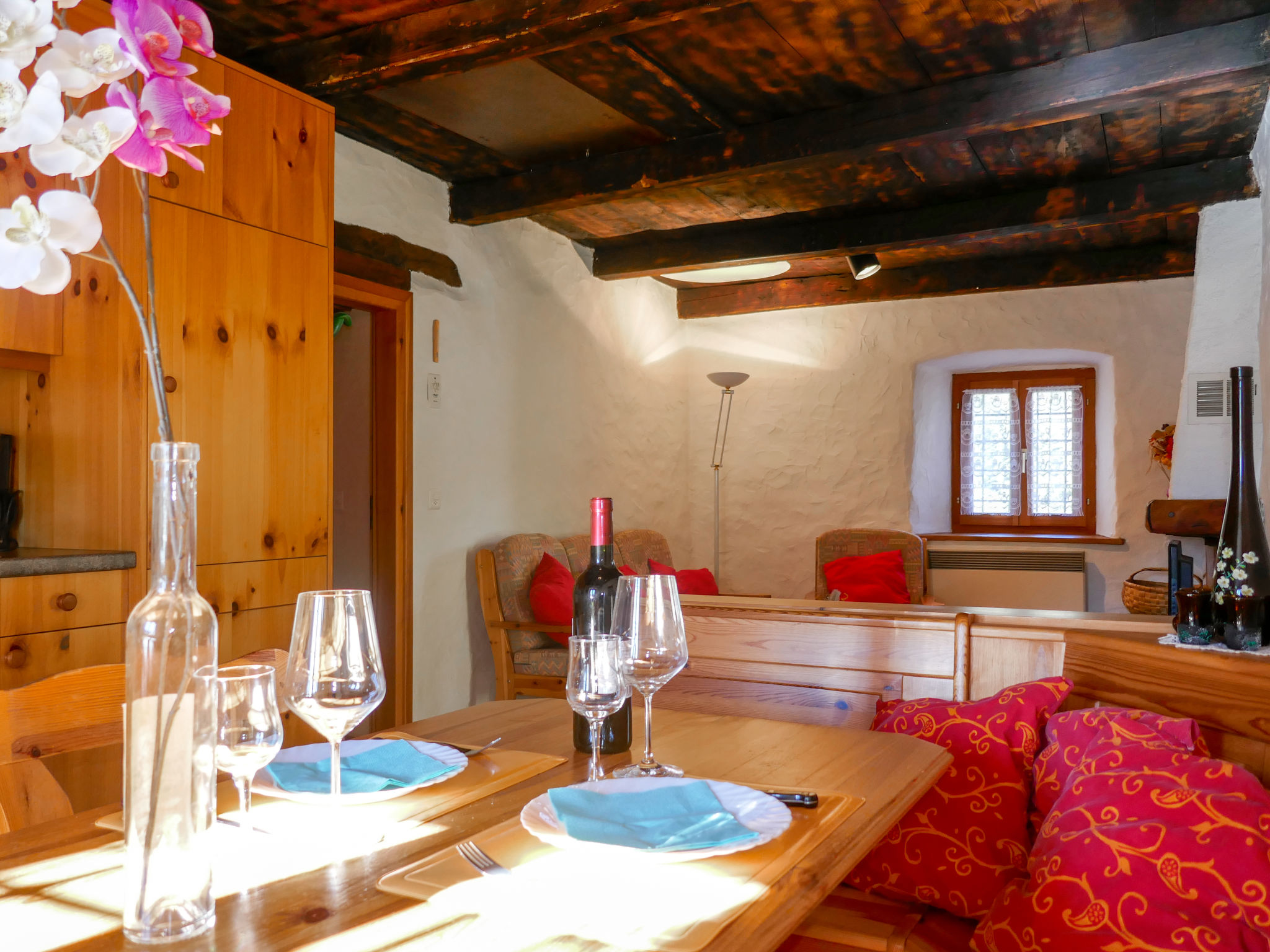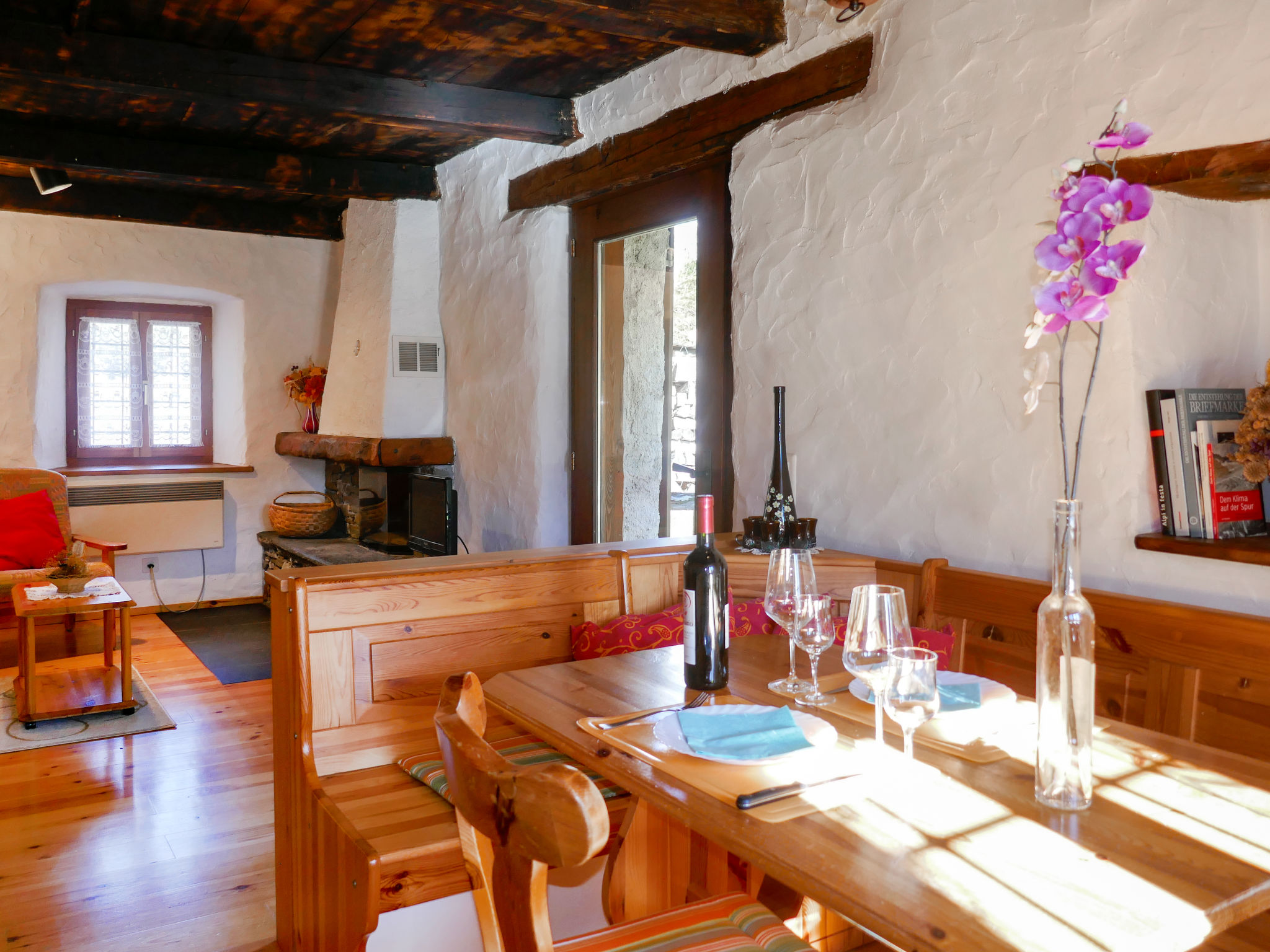 "Rustico Stübii", 2-Zimmer-Landhaus. Objekt geeignet für 2 Erwachsene. Rustikal und gemütlich eingerichtet: offenes Wohnzimmer mit offenem Kamin und Sat-TV. 1 Doppelzimmer mit 1 Doppelbett (1 x 160 cm, Länge 200 cm). Offene Küche (4 Glaskeramikplatten, Toaster, Wasserkocher, Fondue Set (Käse)) mit Essecke. Dusche/WC. E-Heizung, Holzheizung. Gartengrill (mobil), Liegestühle (2), Sitzplatz. Sehr schöne Sicht auf die Berge und die Landschaft. Zur Verfügung: Haartrockner. Internet (Wireless LAN). Bitte beachten: Nichtraucher-Unterkunft. Feuerlöscher. Möglichkeit zum Aufladen von E-Bikes und Waschen. NL-00001914