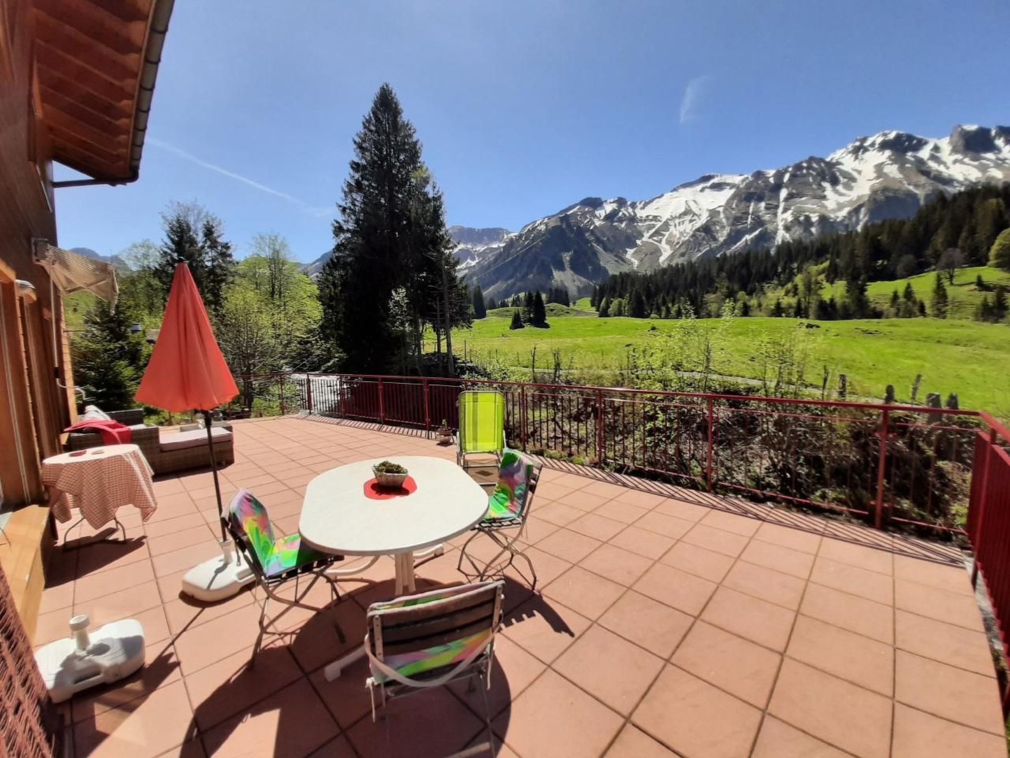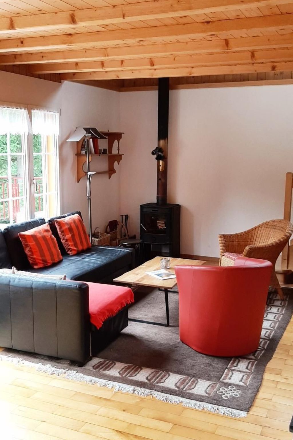 Sie möchten in Ihren Ferien einfach mal abschalten und die Natur geniessen? Lage: Das Ferienhaus befindet sich ca. 900 m vom Dorf Sörenberg entfernt, an der Strasse zur Luftseilbahn Brienzer Rothorn. Auf der Rückseite steht das Haus direkt am Fluss (Waldemme) und der Blick ins Alpweidland und Brienzer Rothorn. Bushaltestelle direkt beim Haus. Wenige Gehminunten zum Skigebiet. Innenbereich: Das 4 ½ Zi Ferienhaus bietet Platz für 8 Personen und ist sehr gemütlich eingerichtet auf 2 Etagen. Erdgeschoss: Eingangsbereich: Kleider Garderobe, Schuhregal, offene Ablage 1 Nasszelle (WC/Dusche), Fön, offene Ablage Wohnzimmer: Parkettboden, 1 Polstergruppe mit 2 Sessel, grosser Esstisch für 8 Personen, Radio/CD/USB/Wlan, Cheminée (Holz inbegriffen) Küche: 4 Kochplatten, 1 Backofen, Kühlschrank mit Gefrierfach, Geschirr/Gläser f. 10 Pers., Kaffeemaschine (Nespresso), Ital. Expresso Krug, Raclette- und Fondue Garnitur, Schränke für Lebensmittel, Putzschrank mit Putzmittel, Staubsaugen, Bügeleisen. Schlafzimmer 1: 2 Einzelbetten 90/200 m, 1 Schrank, 1 kl. Tisch mit Stuhl, 1 Spiegel. Obergeschoss: Schlafzimmer 2: 2 Einzelbetten 90/200 m, 1 Schrank, 1 Tisch m. 2 Stühle, 1 Spiegel, 1 Reisebett f. Kleinkind. Schlafzimmer 3: 2 Etagenbetten f. 4 Pers., 2 Kleiderschränke, 1 Tisch, 1 Spiegel. 1 Nasszelle mit 1 WC, 1 Lavabo Grosse offene Galerie: 2 Sofa (Leseecke), 1 Fernseher mit DVD Gerät, Kindertisch mit 2 Stühle Aussenbereich: Grosse Terrasse 5/12 m, mit Blick zum Brienzer Rothorn. gr. Tisch f. 8 Pers., Lounge, Liegestühle, Sonnenschirme / Markisen. Spielwiese ca. 80 qm. Aussen Grillstelle (Holz vorhanden) Gedeckte „Holz Bar“. 2 zusätzliche Sitz Ecken mit Tisch und Stühle.
