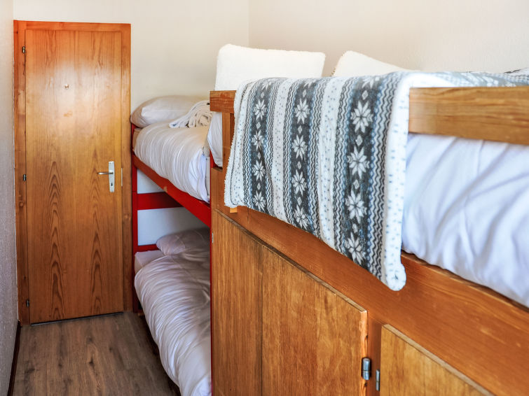 "Christiania I I5", 3-Zimmer-Wohnung 66 m2 im 5. Stock. Wohn-/Esszimmer mit Kabel-TV. 1 Zimmer mit 2 Betten (90 cm, Länge 190 cm), offenem Kamin (nur Deko). 1 kleines Zimmer mit 1 x 2 Etagenbetten (90 cm, Länge 190 cm). Eingang mit 1 x 2 Etagenbetten (80 cm, Länge 180 cm). Küche (3 Kochplatten, Backofen, Toaster, Mikrowelle, elektrische Kaffeemaschine, Fondue Set (Chinoise, Käse)). Bad/WC, sep. WC. Balkon, Nordlage. Sicht auf die Berge. Zur Verfügung: Kinderhochstuhl. Internet (Wireless LAN, gratis). Parkplatz Nr. 13B (überdacht), Höhe 190 cm. Bitte beachten: nicht geeignet für Kinder unter 8 Jahren. Nichtraucher-Unterkunft. Maximal 1 Haustier/Hund erlaubt. Anstelle eines abgeschlossenen Schlafzimmers befinden sich manche Schlafplätze in einem offenen Bereich (Galerie, Nische etc.).