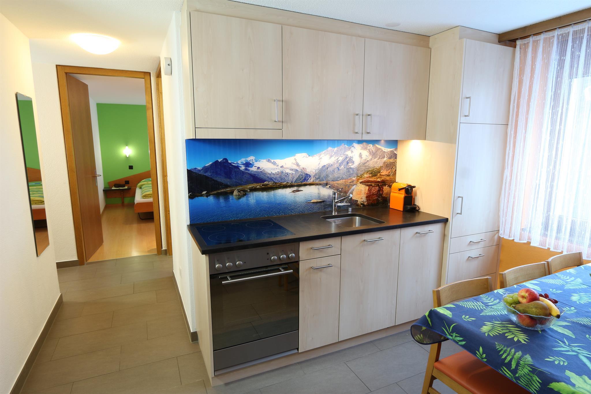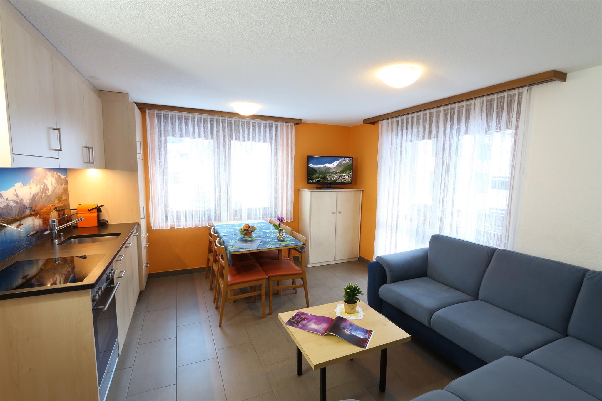 Herzlich Willkommen im GOLF Apartments: Dank der ruhigen und dennoch absolut zentralen Lage ist es der ideale Ausgangspunkt für Ihre Ferien – Sommer wie Winter.  Das Haus liegt unmittelbar beim Alpin Express, Rodelbobbahn, Abenteuer-Kletterwald, Minigolfplatz, den Luftseilbahnen, Skiliften, Skischulsammelplatz, Eisbahn und Sportplatz. Die Skipiste führt bis ans Haus und in max. 5 Gehminuten erreichen Sie das Dorfzentrum mit seinen zahlreichen Restaurants, Bars, Boutiquen und Einkaufsmöglichkeiten.   Moderne und geräumige ***s / ****Apartments für 1 – 6 Personen in einem Top-Qualitätsstandard. Je nach Wohnungsgrösse mindestens 1 Schlafzimmer mit Lavabo. Vollausgestattete Wohn-Essküche mit Ceran-Kochfeld, Backofen, Kühlschrank mit Gefrierfach, "Nespresso" Kapsel-Kaffeemaschine, Geschirrspüler, Wasser- & Eierkocher sowie Käse-Fondue Caquelon. (Raclette-Ofen, Tischgrill, Toaster etc. stehen auf Anfrage zur Verfügung – einfach fragen!) Radio-CD Player, TV-Flachbildschirm mit Kabel-TV und Infokanal Saas-Fee, kostenfreies W-LAN, Safe, Dusche/WC mit Haartrockner. Sonniger Südbalkon mit einzigartigem Panoramablick auf die Gletscherbergwelt und Bergspitzen der Mischabelkette. Lift im Haus sowie Skiraum mit Skischuhtrockner. Wir bieten: Brötchen-Liefer-Service sowie gratis Gepäcktransfer bei Ihrer An- und Abreise in Saas-Fee. Sie sehen also, bei uns sind Qualität, Erholung und Ferienerlebnisse garantiert.