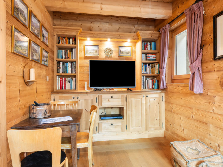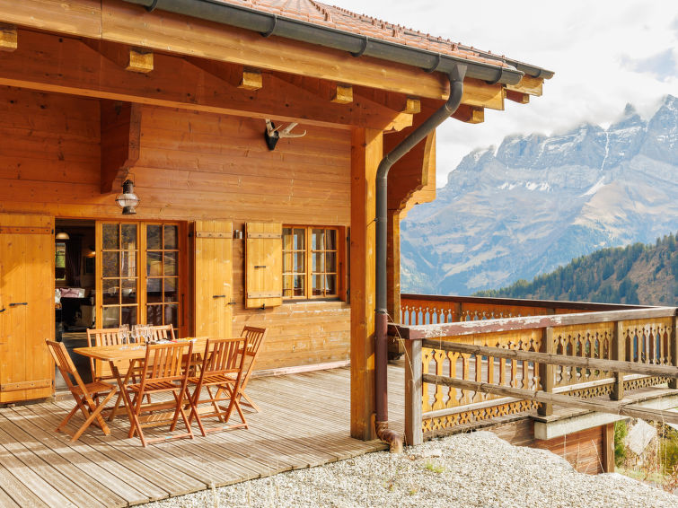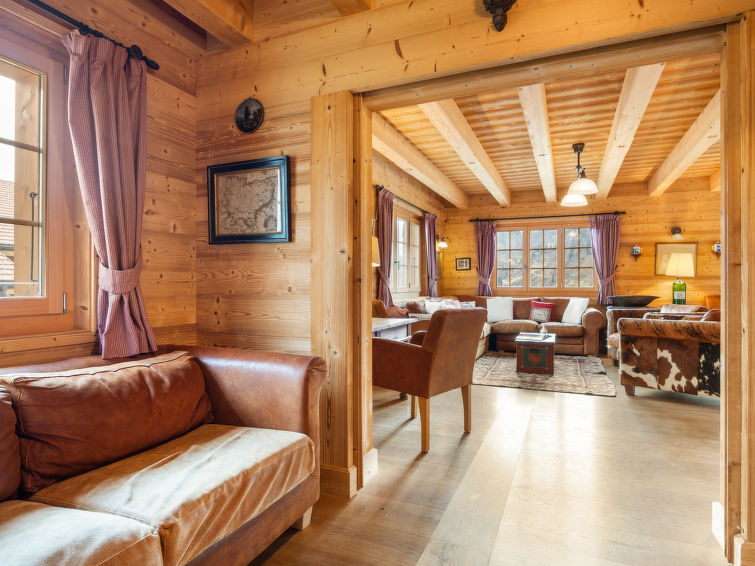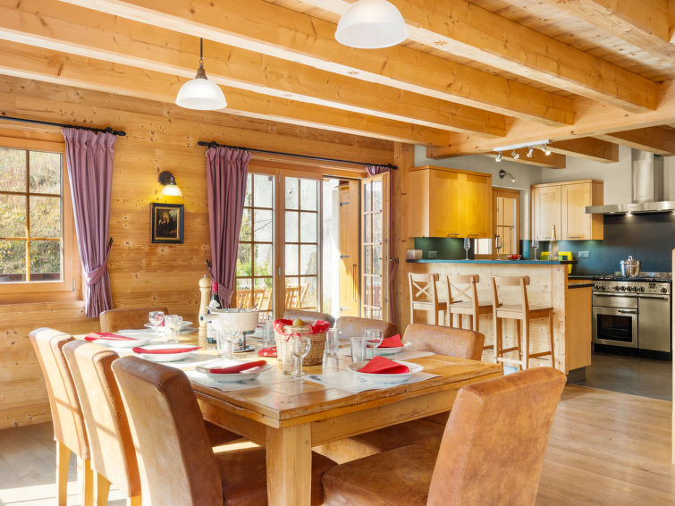 7-Zimmer-Chalet 300 m2. Luxuriös und geschmackvoll eingerichtet: Wohn-/Esszimmer mit offenem Kamin, Esstisch und Stereoanlage. Ausgang zur Terrasse, Richtung Süden. Salon mit Kabel-TV, Flachbildschirm und DVD. Offene Küche (5 Kochplatten, Backofen, Geschirrspüler, Mikrowelle, Tiefkühler, elektrische Kaffeemaschine, Kapseln für die Kaffeemaschine (Nespresso) extra) mit Bar. Bodenheizung. Unteres Geschoss: 1 Zimmer mit 1 franz. Bett und Bad/WC. Dusche/WC, Sauna. Obergeschoss: 2 Doppelzimmer, jedes Zimmer mit 1 franz. Bett und Bad/Dusche/WC. Ausgang zum Balkon. 1 Zimmer mit 2 Betten und Bad/Dusche/WC. 1 Zimmer mit 2 Betten und Dusche/WC. 2. Obergeschoss: kleine Galerie. Balkon, Südlage, Terrasse, Ostlage. Terrassenmöbel, Gartengrill (mobil), Liegestühle. Herrliche Panoramasicht auf die Berge. Zur Verfügung: Waschmaschine, Wäschetrockner, Sauna. Internet (Wireless LAN, gratis). Garage (3 Autos). Bitte beachten: Nichtraucher-Haus. Der Multipass bietet einen unbegrenzten Zugang zu zahlreichen Aktivitäten innerhalb der Region Portes du Soleil (gültig Sommer).