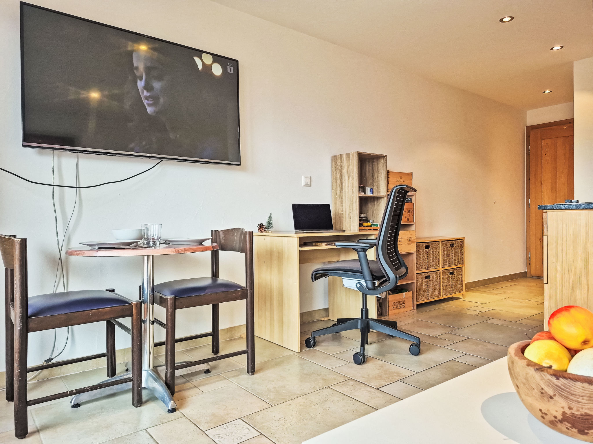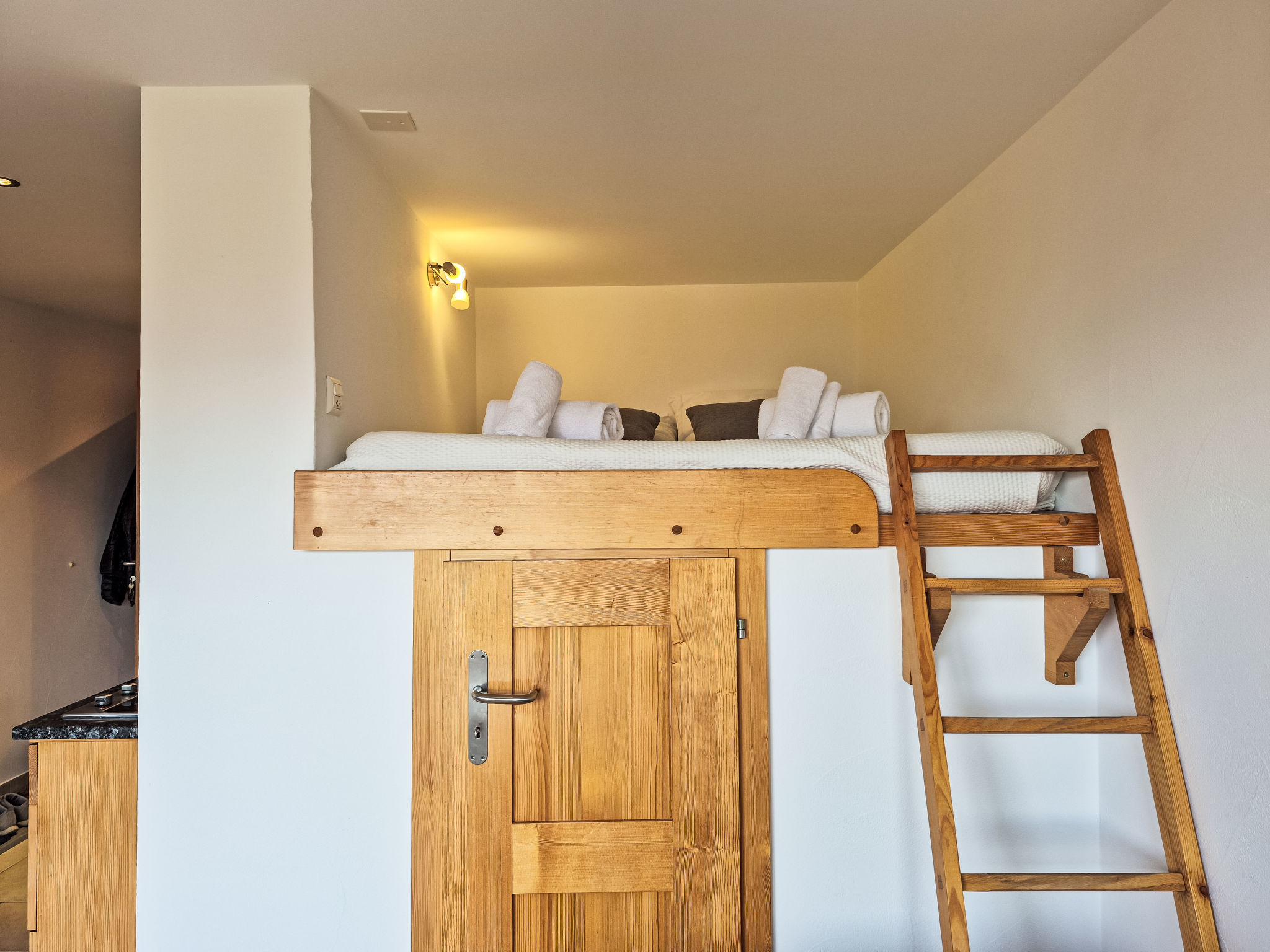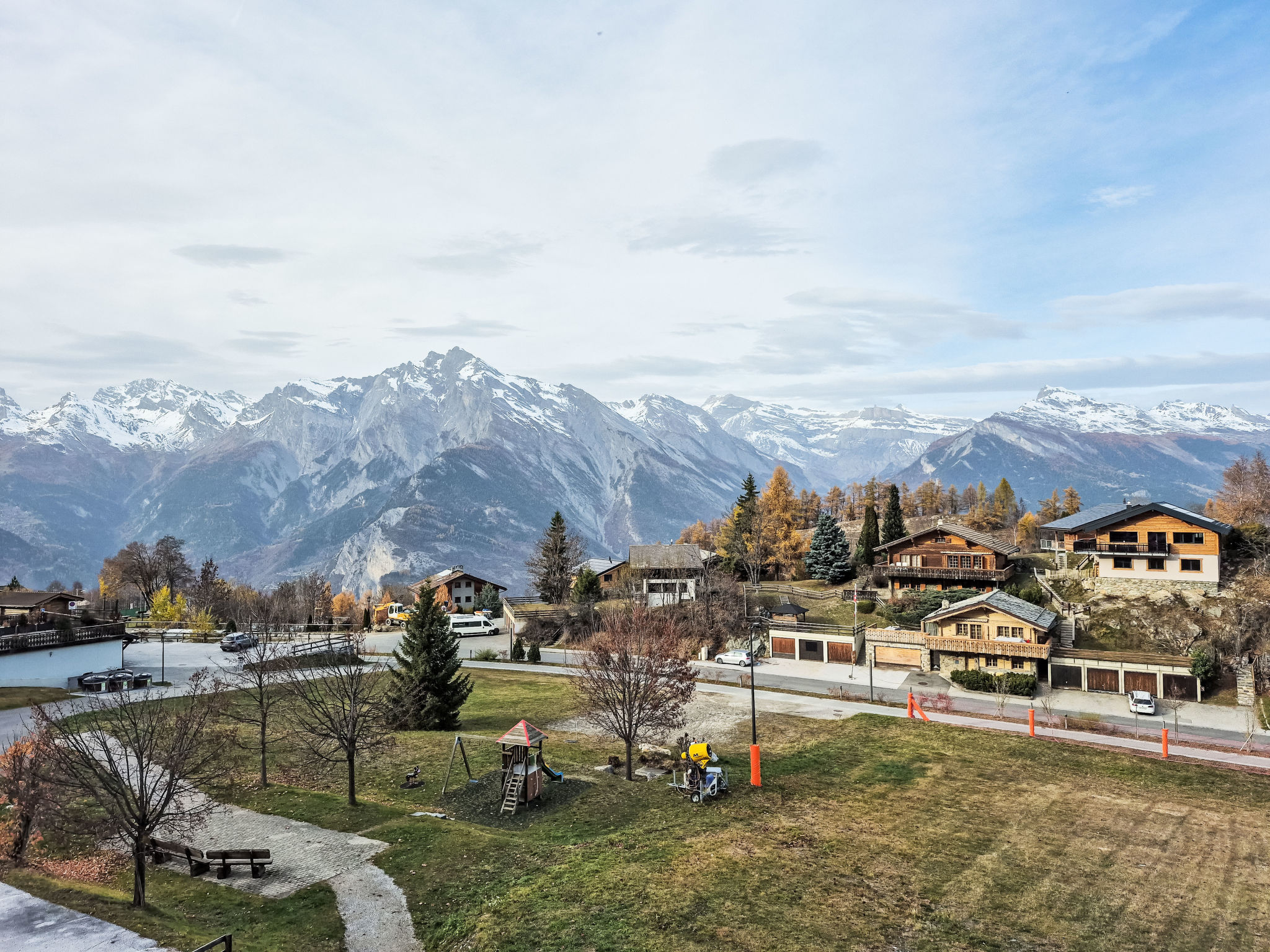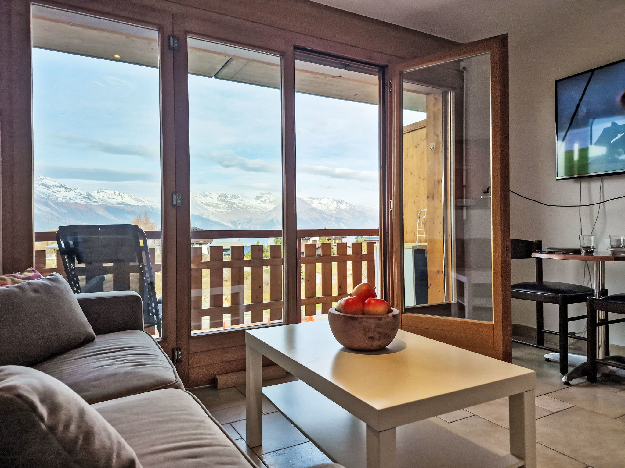 "Domaine des Reines D10", 1-Zimmer-Studio 22 m2 im 4. Stock, Nordlage. Komfortabel und schön eingerichtet: Wohn-/Schlafzimmer mit 1 franz. Bett (160 cm, Länge 200 cm), Kabel-TV. Ausgang zum Balkon. Offene Küche im Eingang (2 Glaskeramikplatten, Toaster, Wasserkocher, Mikrowelle, elektrische Kaffeemaschine, Kapseln für die Kaffeemaschine (Nespresso) extra). Dusche/WC. Balkon 7 m2, Nordlage. Balkonmöbel. Sehr schöne Sicht auf die Berge. Zur Verfügung: Internet (WLAN, gratis). Parkplatz. Bitte beachten: Nichtraucher-Unterkunft.