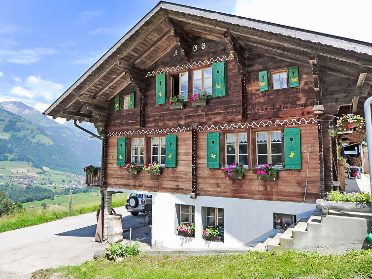 Kinderfreundliches, freistehendes, einfaches Bauernhaus "Grossen", auf 2 Stockwerken, umgeben von Bäumen, Wiesen und Feldern. Ausserhalb des Ortes, 2.8 km vom Zentrum von Frutigen, ruhige, sonnige Lage am Hang, in einer Sackgasse. Zur Mitbenutzung: naturbelassenes Grundstück, Bäumen, Wiese. Sitzplatz, Gartenmöbel, Grill. Im Hause: Zentralheizung, Waschmaschine, Wäschetrockner (zur Mitbenutzung). Schmale Zufahrt bis zum Haus. Parkplatz beim Haus. Lebensmittelgeschäft 2.8 km, Einkaufszentrum 2.8 km, Restaurant 2.8 km, Bushaltestelle "Frutigen, Bahnhof" 3.4 km, Bahnstation "Frutigen" 3.4 km, Freibad 4 km, Hallenbad 4 km. Tennis 4 km, Reitstall 4 km, Skisportanlagen 6 km. Nahe gelegene Sehenswürdigkeiten: Tropenhaus Frutigen. Bekannte Skigebiete sind gut erreichbar: Adelboden 17 km, Elsigenalp 6 km. Bekannte Seen in der Umgebung sind gut erreichbar: Thunersee 17 km. Bitte beachten: Fahrzeug empfohlen. Auf dem Grundstück Tierhaltung. Der Besitzer wohnt im selben Haus. Eigentümer hat einen Hund. Im Sommer von Juni - Ende August sind keine Tiere auf dem Bauernhof.