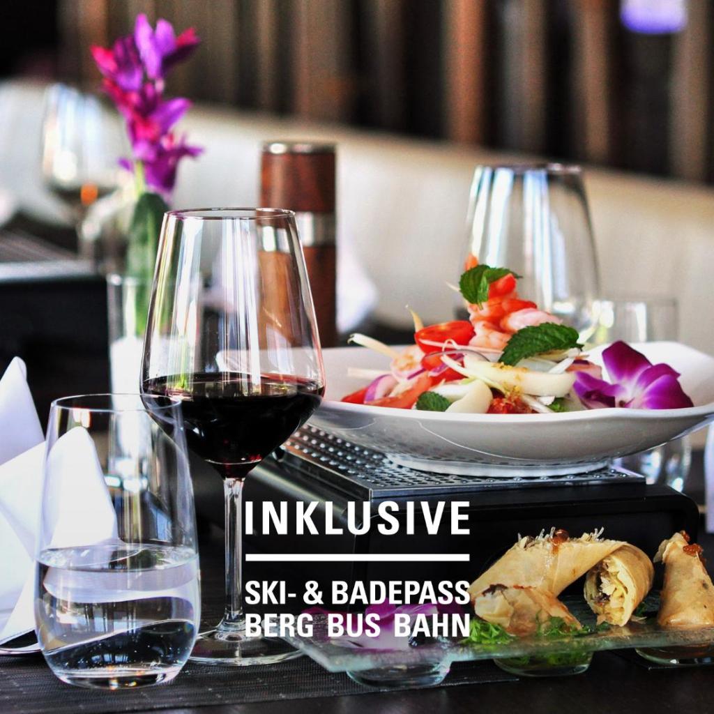 Frische regionale Produkte sind die Basis der Speisekarte des Hotels und das gemütliche Nam Thai rundet das Angebot mit asiatischen Spezialitäten ab. Auf der Panoramaterrasse genießen Sie im Sommer Eis und im Winter Glühwein.