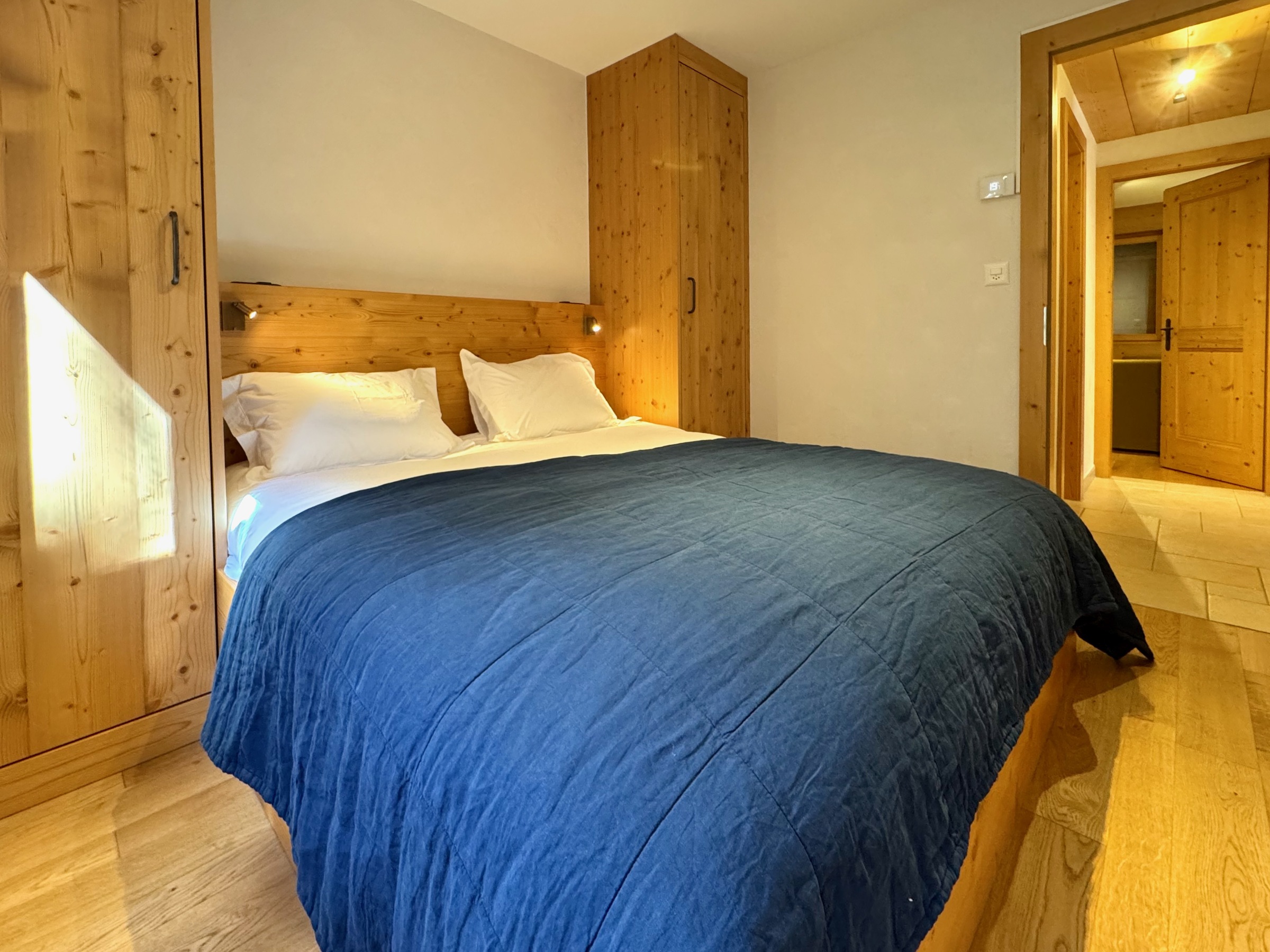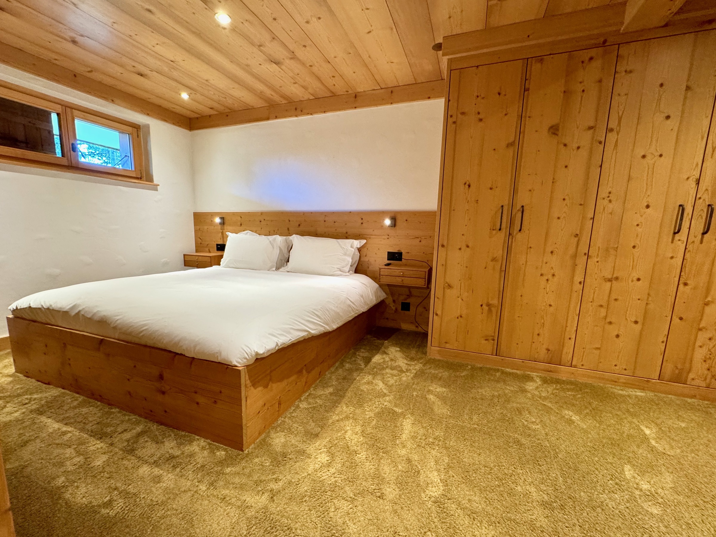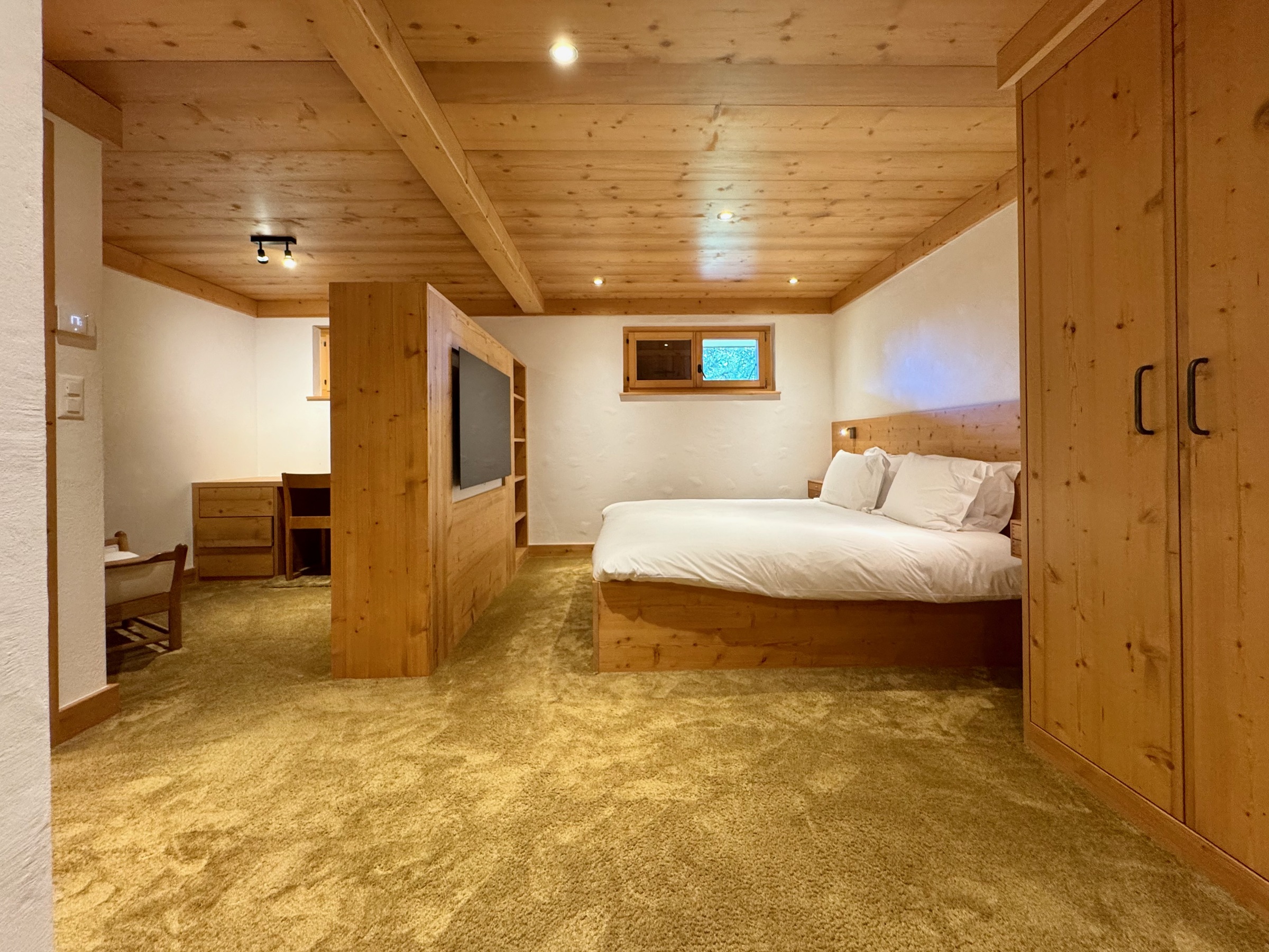 Im Erdgeschoss finden Sie einen Skiraum und das geräumige Hauptschlafzimmer mit Bürobereich, Smart-TV, viel Stauraum und Duschbad.