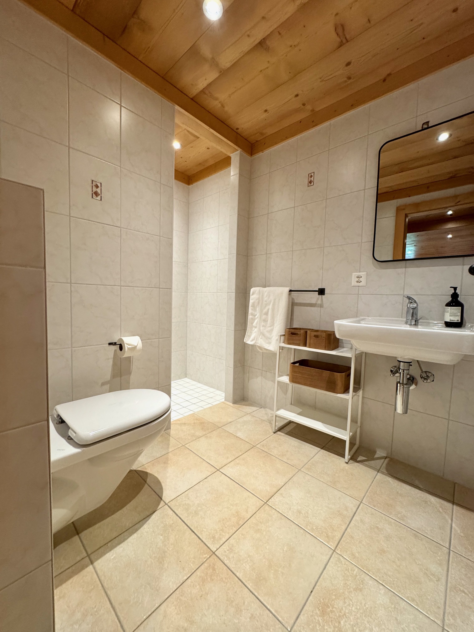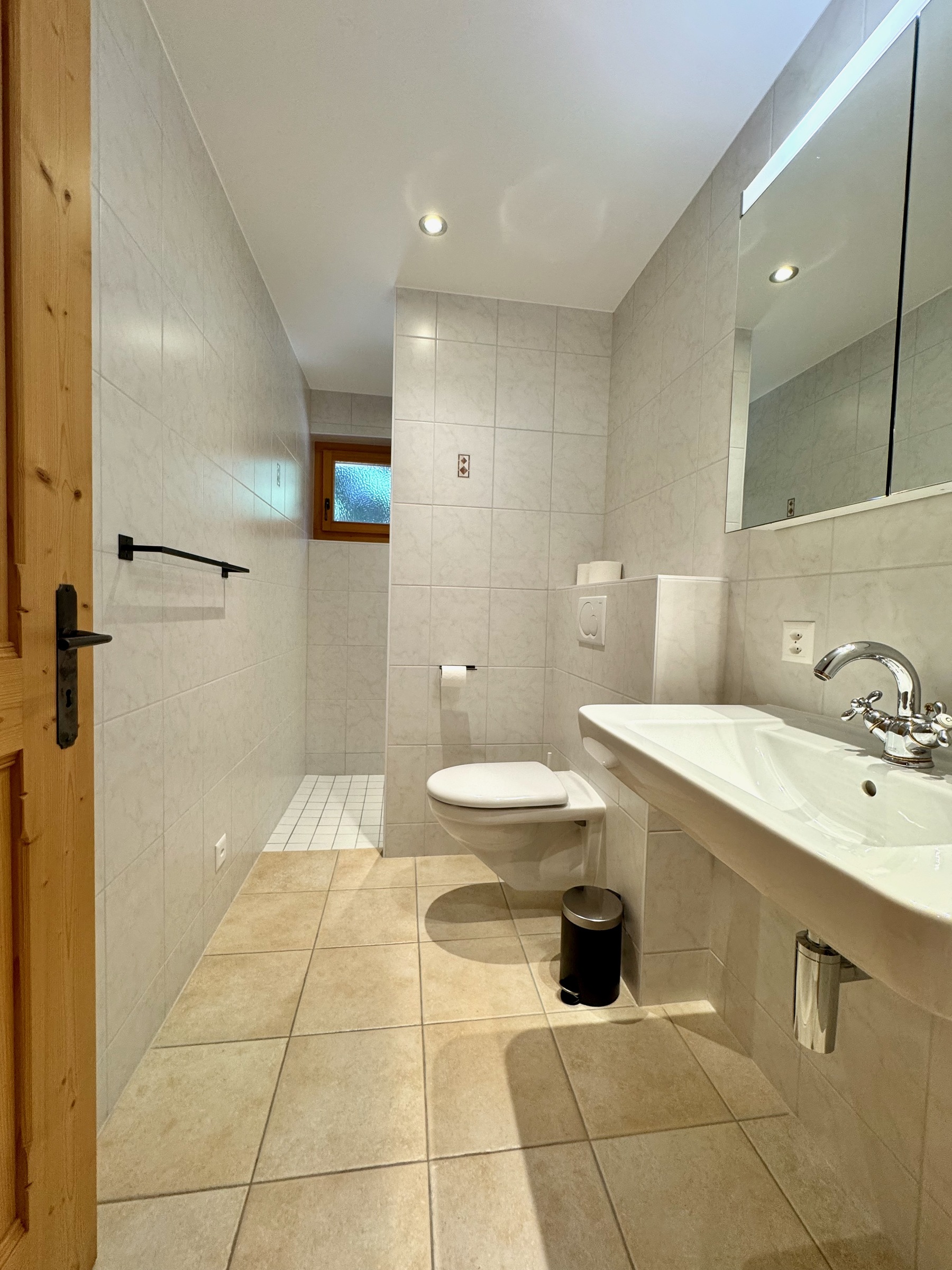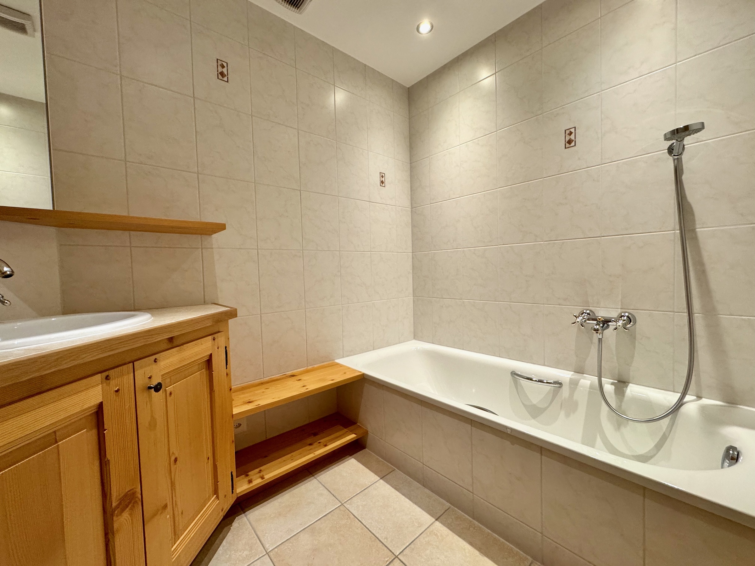 Im Erdgeschoss finden Sie einen Skiraum und das geräumige Hauptschlafzimmer mit Bürobereich, Smart-TV, viel Stauraum und Duschbad.