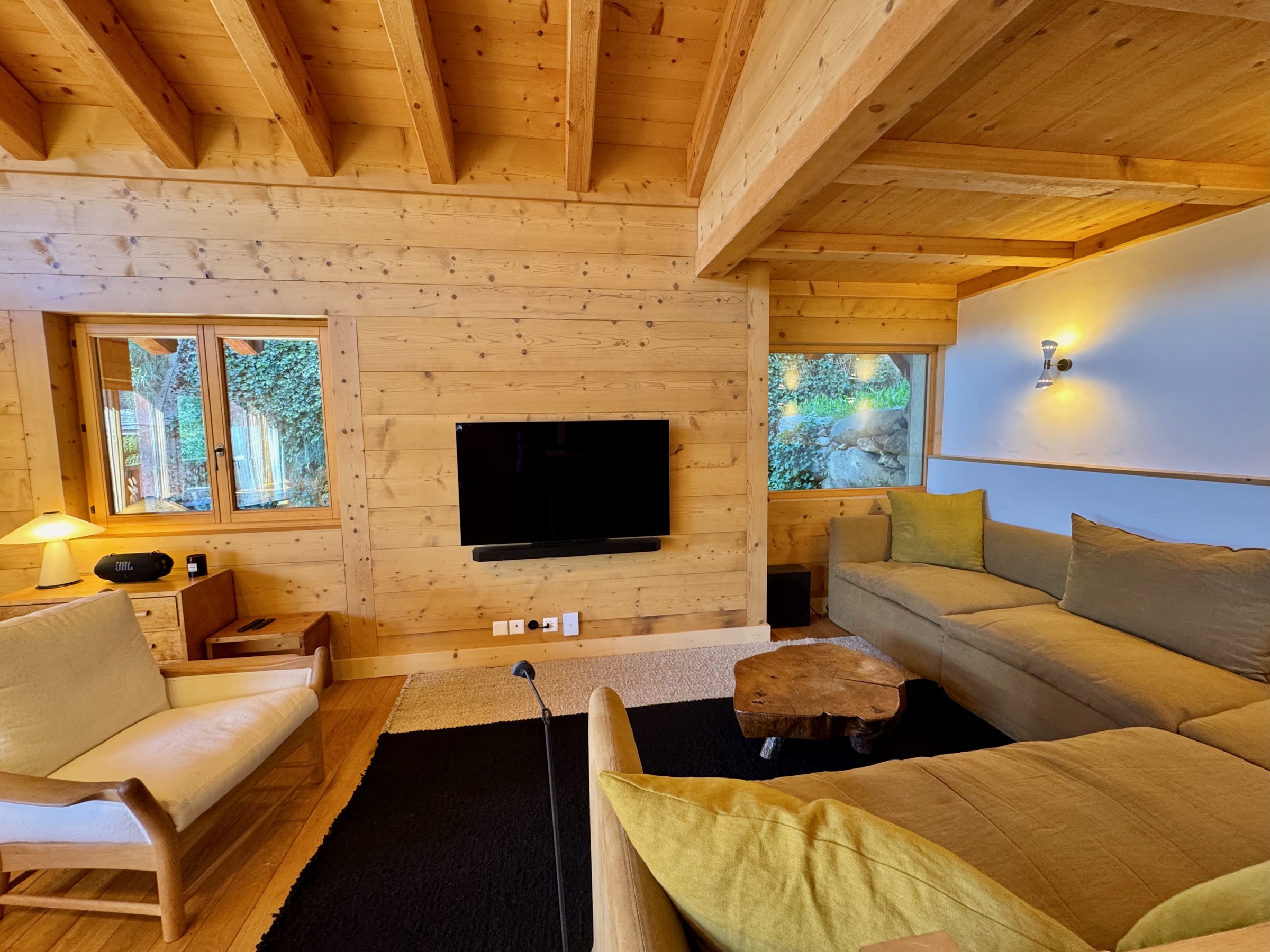 Das Wohnzimmer ist mit einem Smart-TV ausgestattet und das gesamte Chalet verfügt über einen Internetanschluss. Eine Waschmaschine/Trockner ist vorhanden.