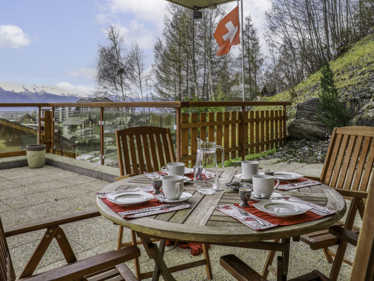 Residenz "Domaine des Reines", Baujahr 2008. Im Ort. Zur Mitbenutzung: Hallenbad (8 x 15 m, 150 cm tief, saisonale Verfügbarkeit: 15.Dez. - 01.Nov. Öffnungszeiten Schwimmbad: 08:00-22:00). Terrasse. Im Hause: Sauna, Fahrstuhl, Skiraum, Zentralheizung, Waschmaschine, Wäschetrockner (zur Mitbenutzung, extra). Einkaufsgeschäft, Restaurant 300 m, Bushaltestelle "Haute-Nendaz, télécabine" 650 m, Bahnstation "Sion" 16.8 km, Freibad 500 m. Golfplatz (18 Loch) 18 km, Gondelbahn 200 m, Skibushaltestelle 300 m, Ski-Kindergarten 50 m, Eisfeld 200 m. Nahe gelegene Sehenswürdigkeiten: Spa des Bisses 200 m. Bekannte Skigebiete sind gut erreichbar: Nendaz-Tracouet 1.4 km. Wandergebiete: Bisse du Milieu 800 m. Bitte beachten: Gratis Skibus. Domaine des Reines A und B, Zugang zum Schwimmbad und Sauna von aussen in Domaine des Reines C/D 100 m entfernt.