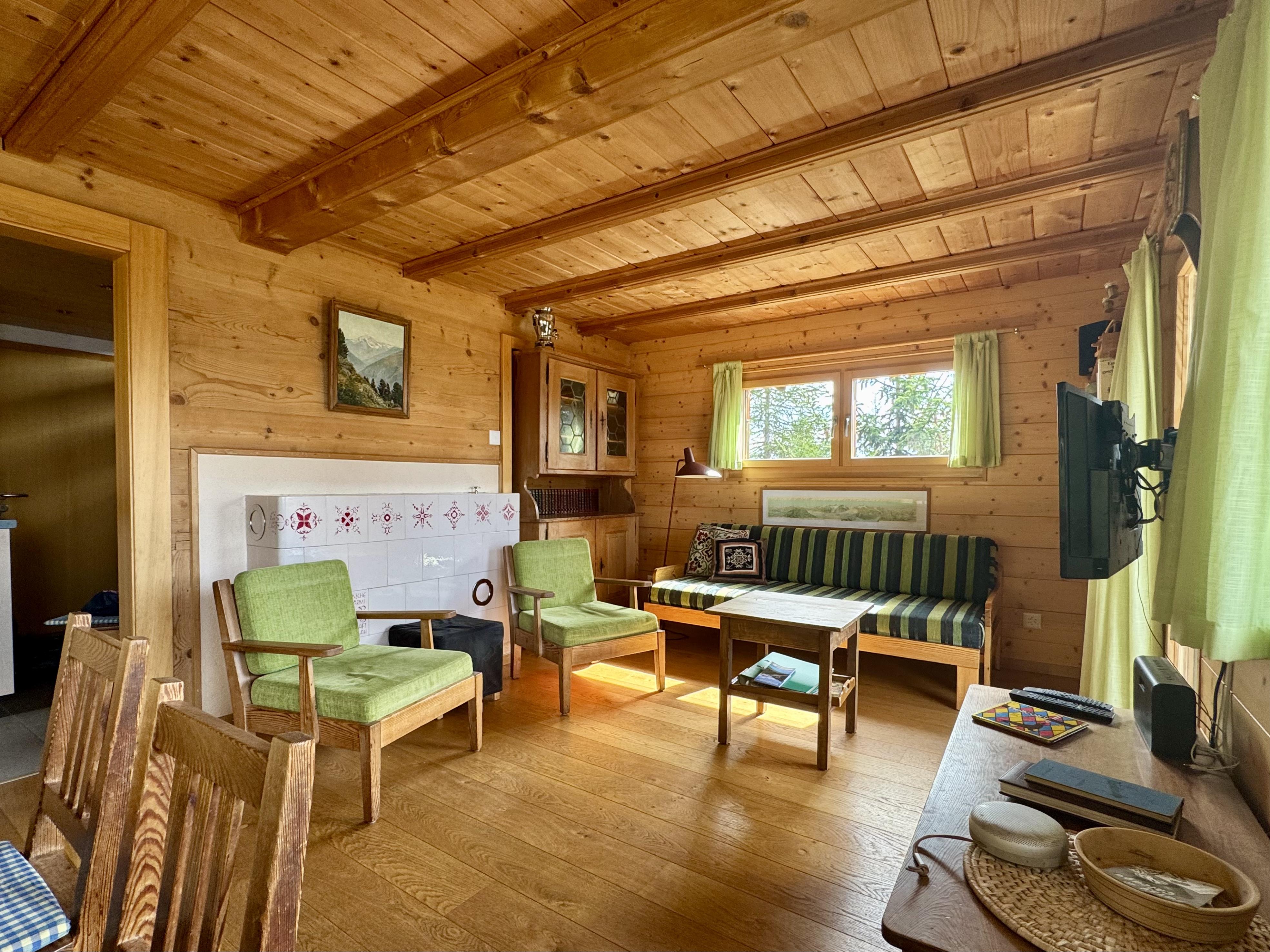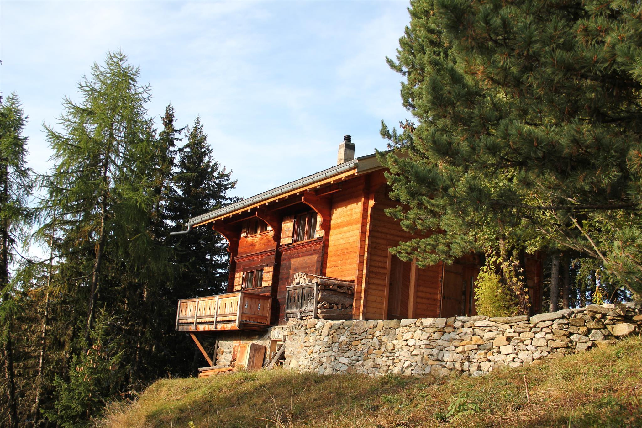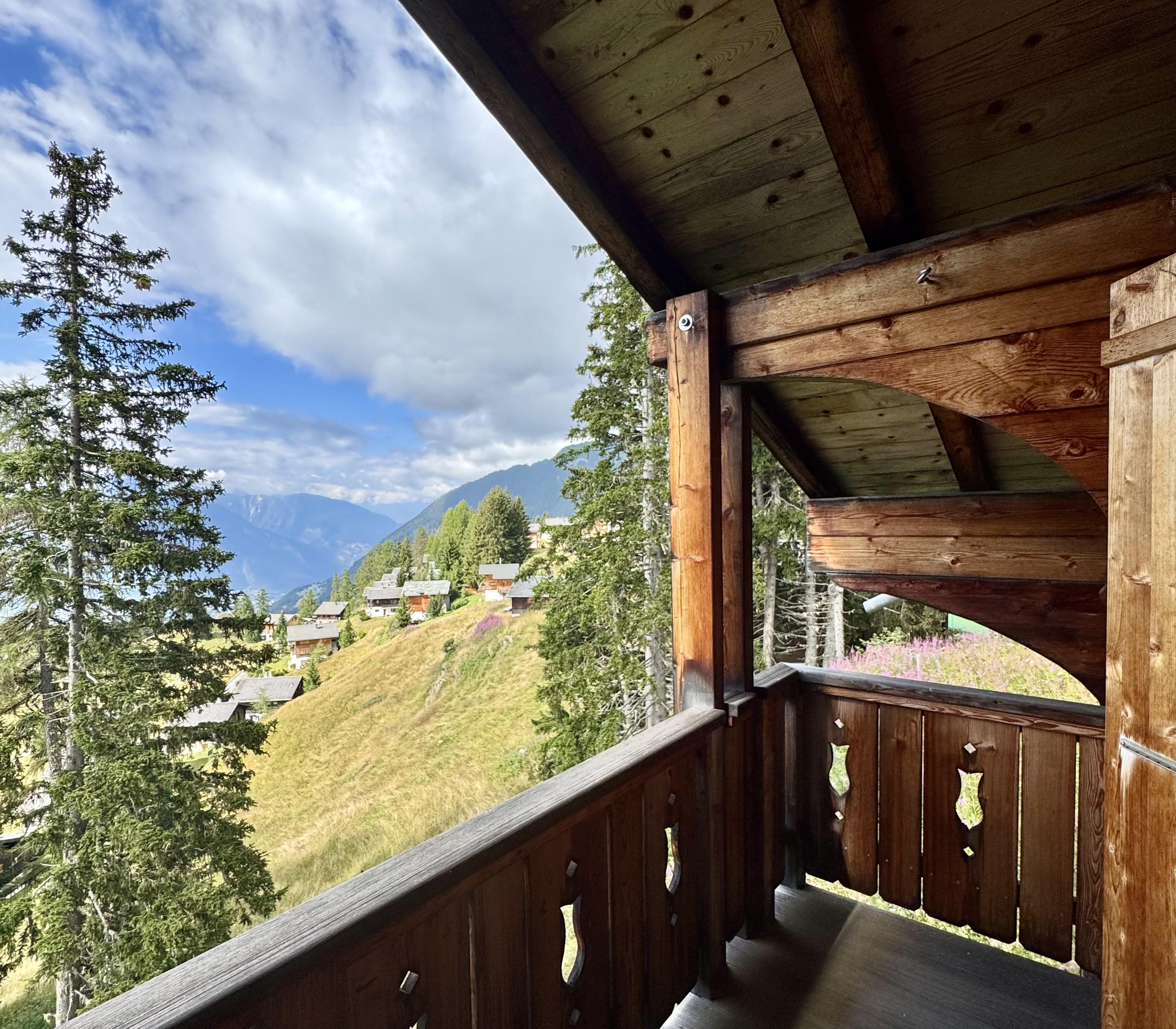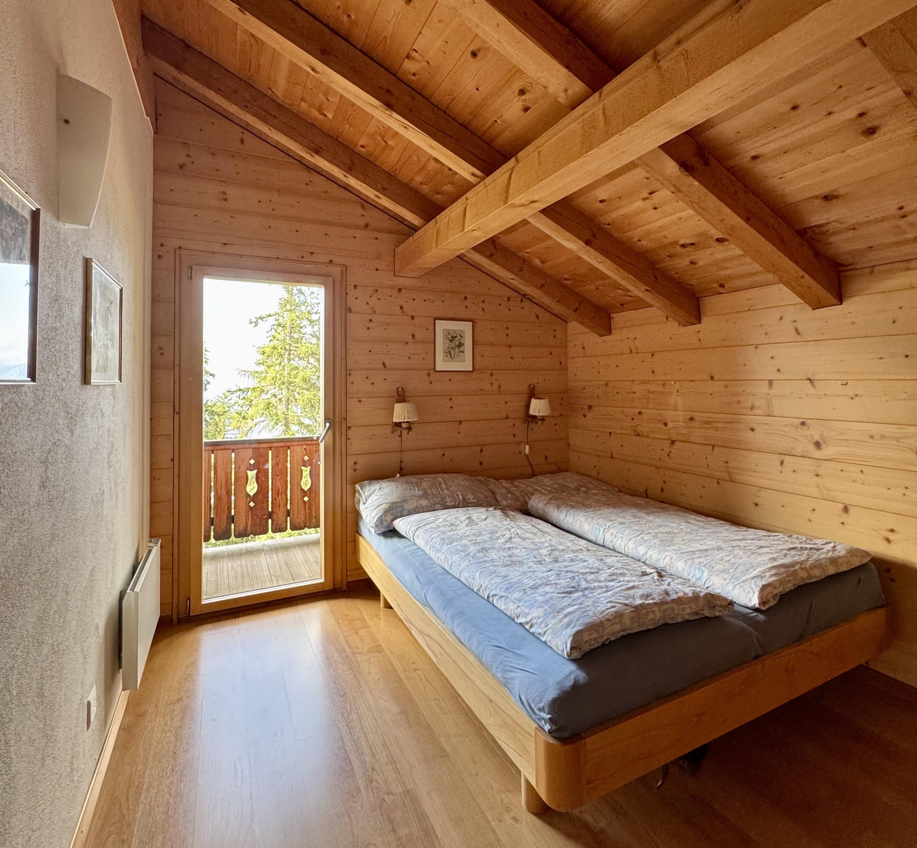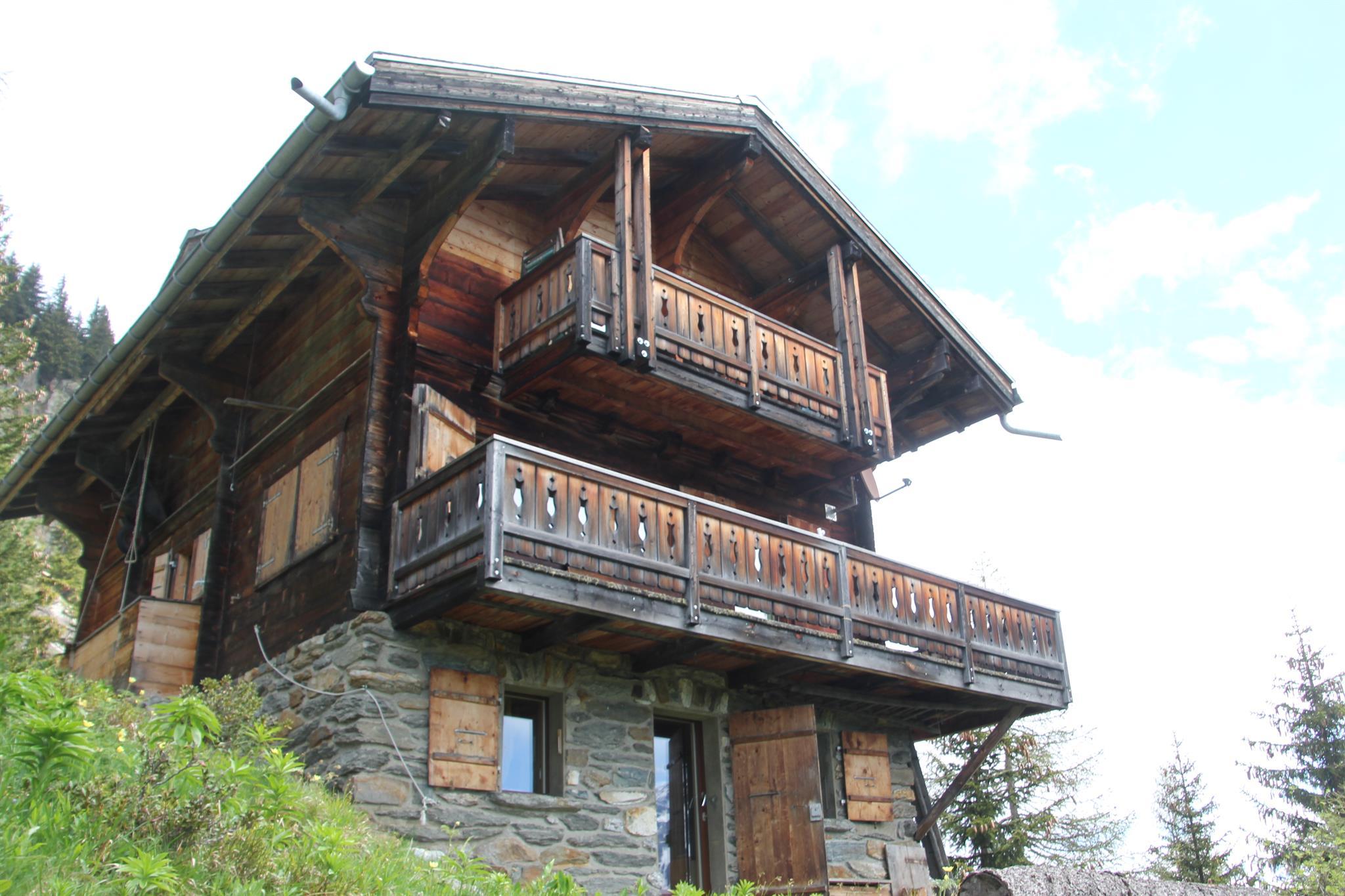 Sonnengebräuntes Chalet mit einer renovierten 4 - Zimmer - Wohnung und 2 Balkonen. Das Häuschen liegt an ruhiger Lage zwischen Rieder- und Bettmeralp, umgeben von Tannen, Arven und Lärchen mit Blick auf die Walliser Alpen.