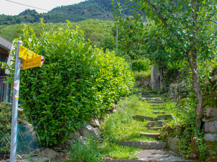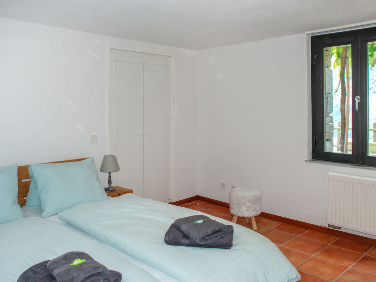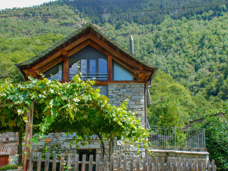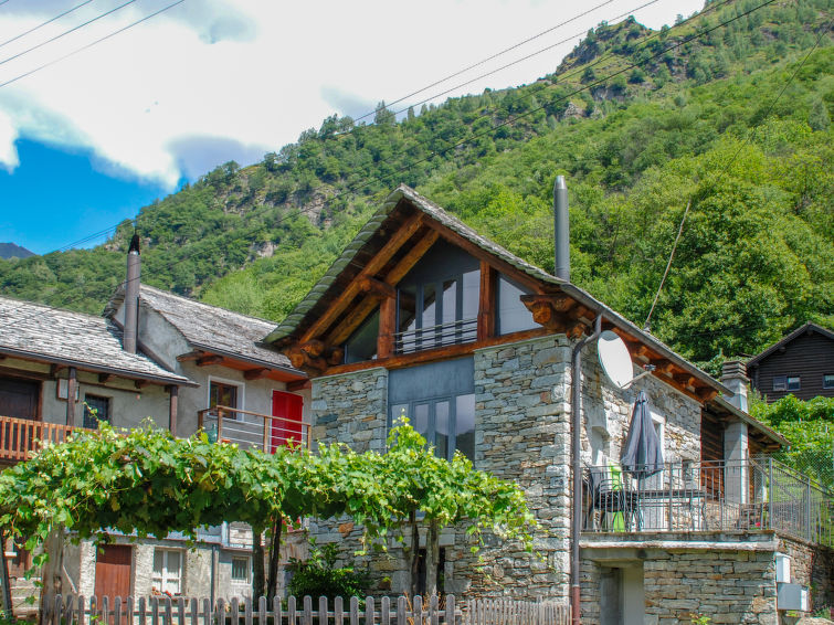 "Rustico Ca' di Garoi", 3-Zimmer-Haus 75 m2 auf 3 Stockwerken. Geräumig und hell, teilweise abgeschrägt, komfortabel und gemütlich eingerichtet: grosse, offene Küche (Backofen, Geschirrspüler, 4 Glaskeramikplatten, elektrische Kaffeemaschine, Kapseln für die Kaffeemaschine (NESPRESSO) extra, Racletteofen, Fondue Set (Käse)) mit Esstisch und Holzofen. Ausgang zur Terrasse. Dusche/WC. Ölheizung. Unteres Geschoss: 1 Doppelzimmer mit 1 Doppelbett (160 cm, Länge 200 cm). Obergeschoss: abgeschrägtes, offenes Wohn-/Schlafzimmer mit 1 Diwanbett (140 cm, Länge 200 cm), Sat-TV und Flachbildschirm. Kleine Terrasse teilweise überdacht. Terrassenmöbel, Gartengrill (mobil). Panoramasicht auf die Berge, das Tal, die Landschaft und die Ortschaft. Zur Verfügung: Waschmaschine, Kinderhochstuhl, Babybett bis 2 Jahre (extra), Haartrockner. Internet (WLAN, gratis). Bitte beachten: Nichtraucher-Haus. Maximal 1 Haustier/Hund erlaubt. NL-00001801