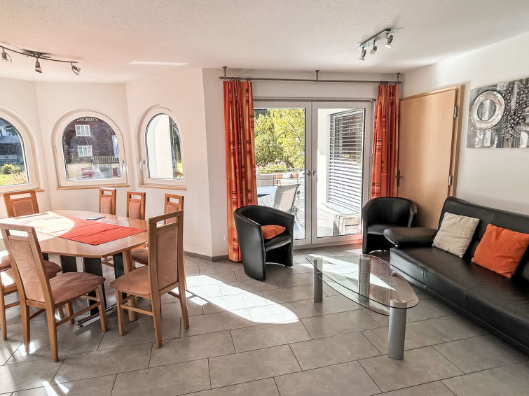 "Alpenstern Trift", 4-Zimmer-Wohnung 90 m2 im 1. Stock. Komfortabel eingerichtet: Wohn-/Esszimmer mit Sat-TV (Flachbildschirm), Stereoanlage. Ausgang zum Balkon, Richtung Westen. 2 Zimmer, jedes Zimmer mit 2 Betten. Ausgang zum Balkon, Richtung Süden. 1 Zimmer mit 2 Betten. Offene Küche (Backofen, Geschirrspüler, 4 Glaskeramikplatten, Mikrowelle, elektrische Kaffeemaschine, Racletteofen, Fondue Set (Käse)). Bad/WC, Dusche/WC, Doppelwaschbecken. Balkon. Balkonmöbel, Liegestühle (6), Abstellkammer. Schöne Sicht auf die Berge und die Landschaft. Zur Verfügung: Kinderhochstuhl, Babybett, Haartrockner. Internet (Wireless LAN, gratis). Parkplatz (2 Autos) beim Haus. Bitte beachten: Nichtraucher-Unterkunft. Maximal 1 Haustier/Hund erlaubt.