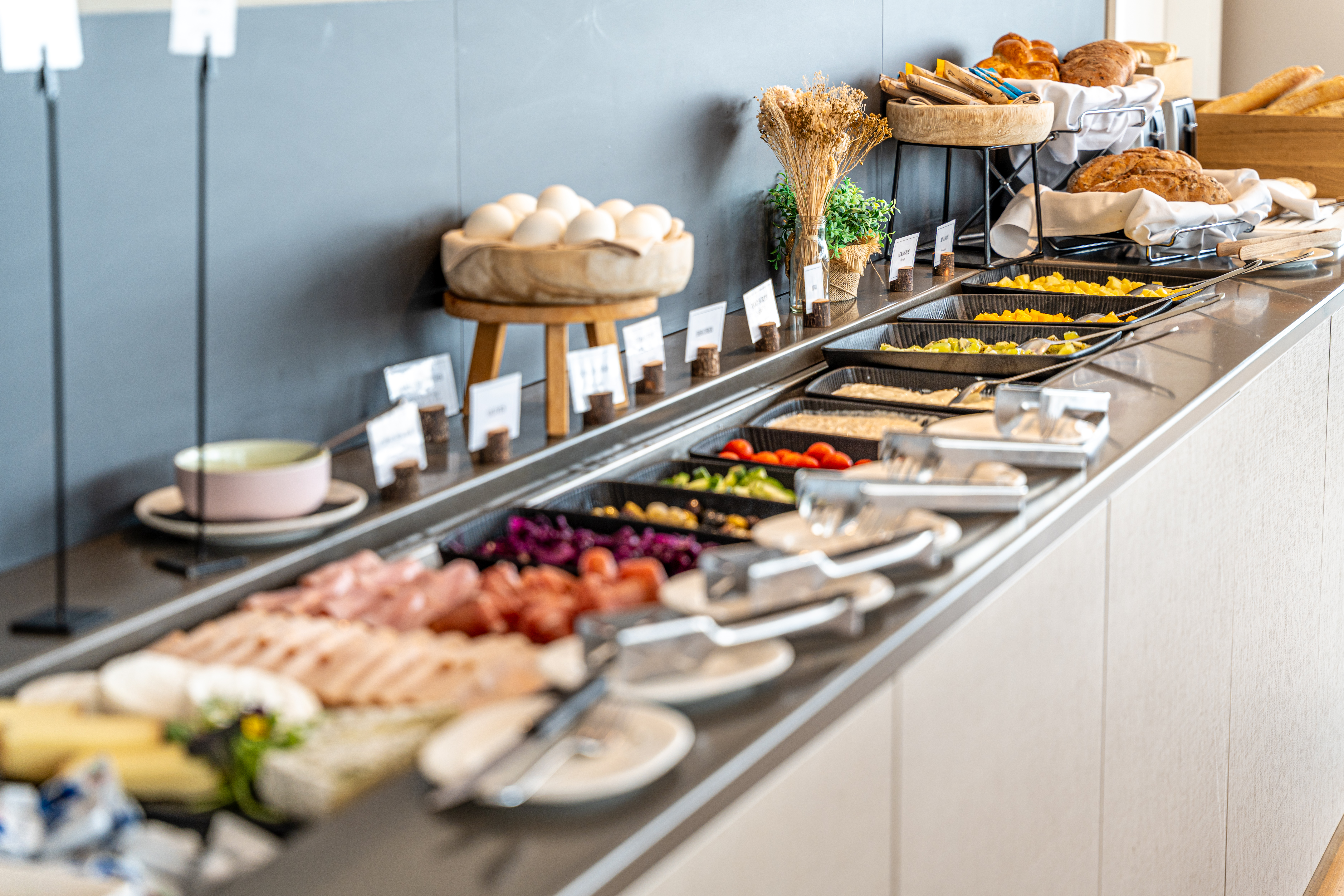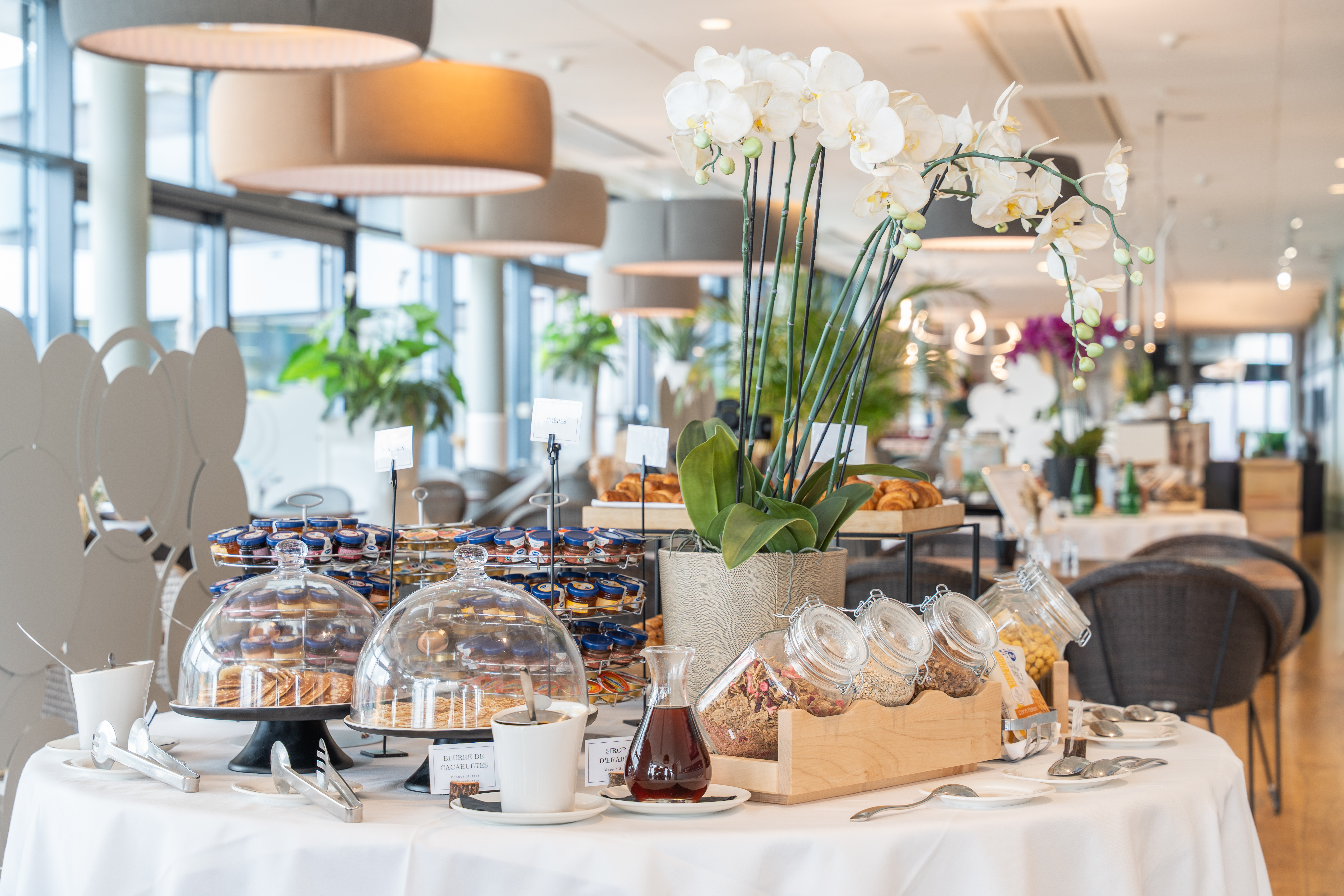 Das Restaurant mit herrlicher Terrasse bietet eine abwechslungsreiche Speisekarte und eine Snackkarte, die 24 Stunden am Tag serviert wird.