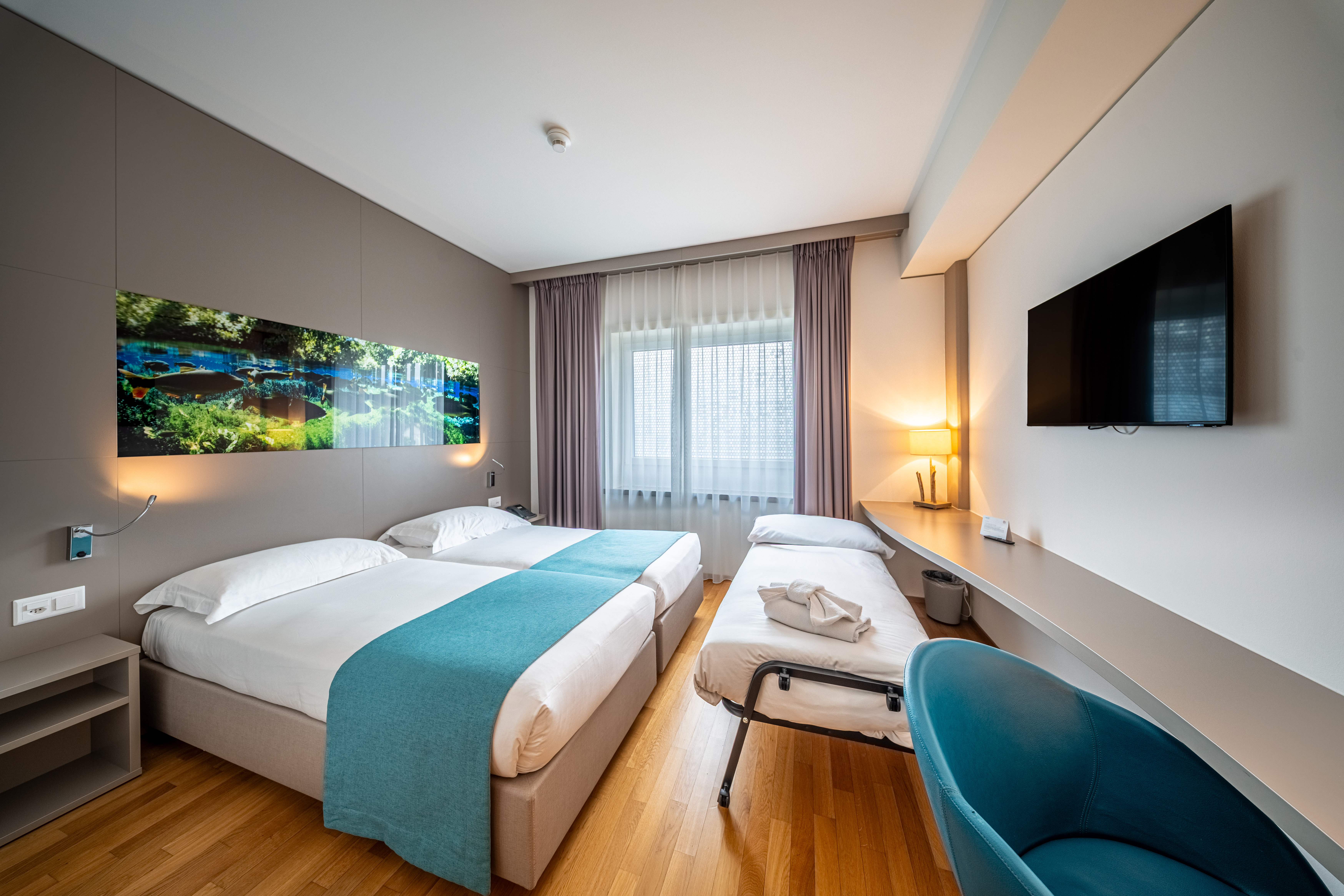 Alle Zimmer orientieren sich am Thema der Wasserwelt und sind modern und originell.