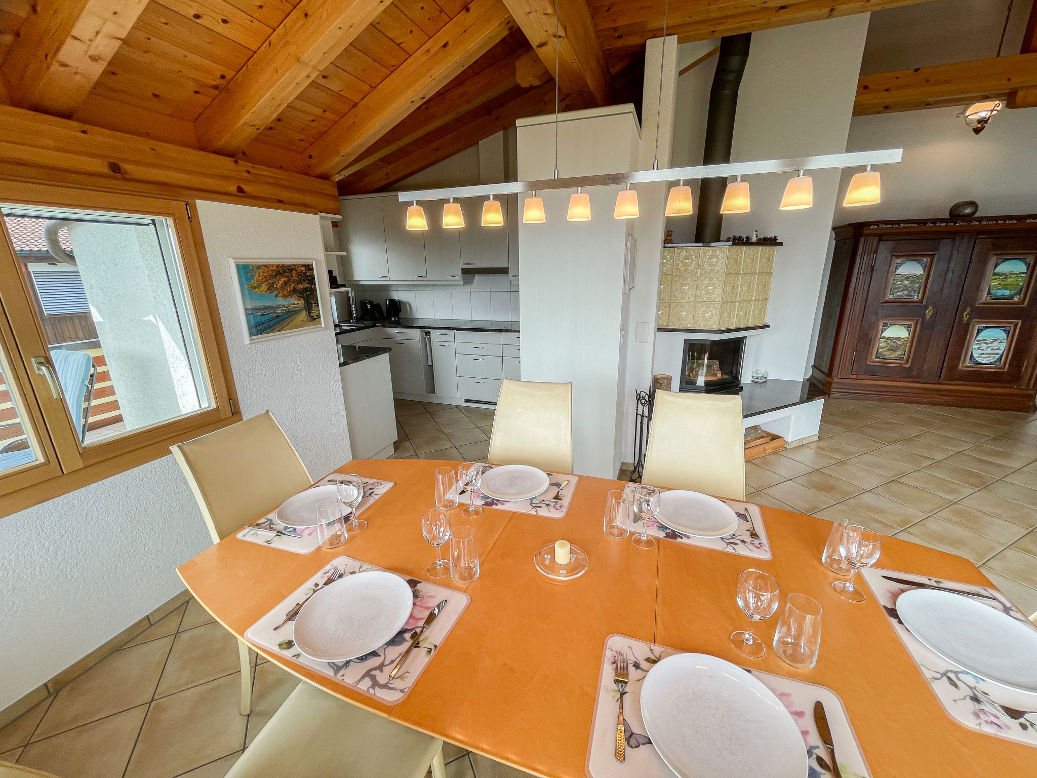 "Penthouse Brugg", 4-Zimmer-Wohnung 120 m2 im 3. Stock. Geräumig und hell, komfortabel und gemütlich eingerichtet: Wohn-/Esszimmer mit offenem Kamin und Stereoanlage. Ausgang zur Terrasse. 1 Zimmer mit Kabel-TV (Flachbildschirm), DVD. 1 Zimmer mit 1 Doppelbett (200 cm, Länge 220 cm). 1 Zimmer mit 1 Doppelbett (180 cm, Länge 200 cm). 1 Zimmer mit 1 Bett. Offene Küche (Geschirrspüler, 4 Glaskeramikplatten, Toaster, Wasserkocher, Mikrowelle, Tiefkühler, elektrische Kaffeemaschine, Kapseln für die Kaffeemaschine (Nespresso) extra, Racletteofen, Fondue Set (Chinoise, Käse)). Bad/WC, Dusche/WC. Grosse Terrasse 30 m2, Südlage. Terrassenmöbel, Gartengrill (mobil). Sehr schöne Sicht auf den See, die Berge und die Landschaft. Zur Verfügung: Babybett. Internet (WLAN, gratis). Parkplatz (1 Auto), Garage (1 Auto) beim Haus. Bitte beachten: Nichtraucher-Unterkunft. Maximal 1 Haustier/Hund erlaubt. Schlafzimmer 1 mit Wasserbett (200 x 220 cm).