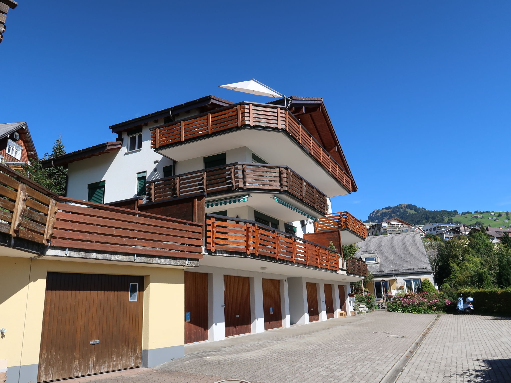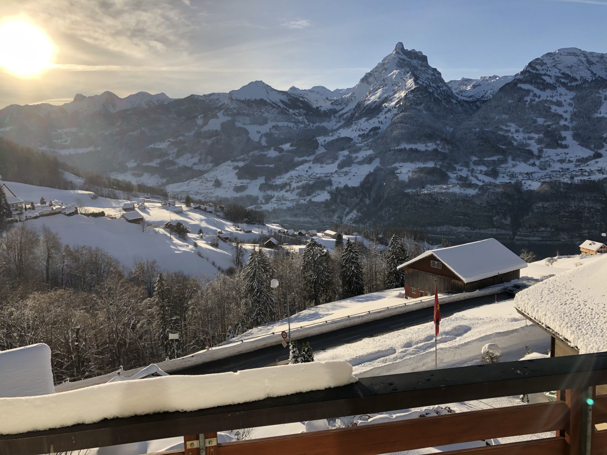 Komfortables Mehrfamilienhaus "Brugg", 900 m.ü.M., auf 3 Stockwerken, Baujahr 2001. Am Ortsrand, 500 m vom Zentrum, ruhige, sonnige, erhöhte Lage, 4 km vom See, 600 m vom Skigebiet, in einer Sackgasse, Richtung Süden. Im Hause: Einstellraum für Fahrräder, Skiraum, Zentralheizung, Waschmaschine. Zufahrt bis zum Haus (Bergstrasse). Im Winter bitte Schneeketten mitbringen, im Winter 4x4 empfohlen. Parkplatz beim Haus, Einzelgarage beim Haus. Einkaufsgeschäft, Lebensmittelgeschäft 500 m, Restaurant 500 m, Bäckerei, Bushaltestelle "Amden Brugg" 100 m, Hallenbad 600 m, Strandbad 4 km, Badesee 4 km. Skilift 600 m, Sessellift, Skisportanlagen 600 m, Skipisten, Skibushaltestelle 100 m, Skischule, Schlittelbahn, Kinderspielplatz 500 m. Bekannte Skigebiete sind gut erreichbar: Amden 600 m, Arvenbühl 4 km, Flumserberge 19 km. Bekannte Seen in der Umgebung sind gut erreichbar: Walensee 4 km. Wandergebiete: Walensee 4 km, Amden/Arvenbühl. Bitte beachten: kein Fahrstuhl vorhanden.