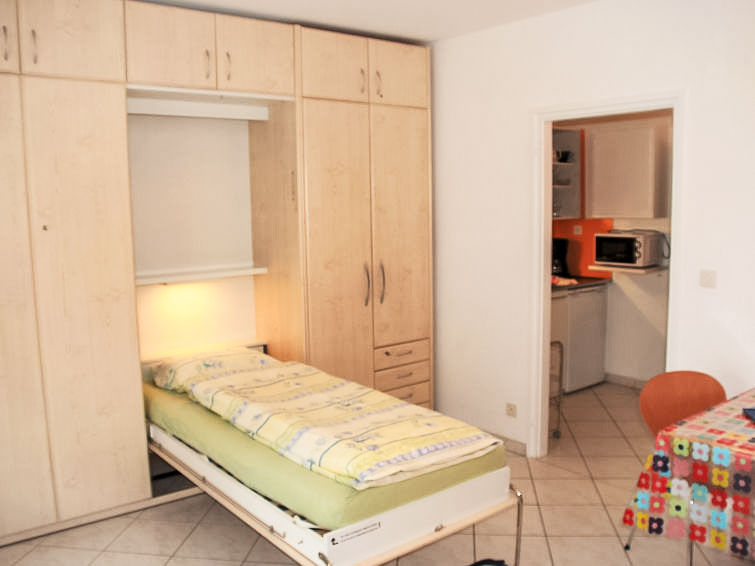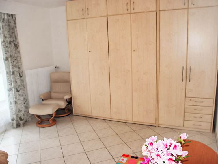 "App. 5", 1-Zimmer-Wohnung 29 m2, im Erdgeschoss. Hell, komfortabel und gemütlich eingerichtet: Wohn-/Esszimmer mit 2 Wandschrankbetten (90 cm, Länge 200 cm), Esstisch und Kabel-TV (Flachbildschirm), Radio. Ausgang zum Balkon. Kochnische im Eingang (2 Kochplatten, Mikrowelle, elektrische Kaffeemaschine, Kapseln für die Kaffeemaschine (Caffitaly) extra). Dusche/WC. Heizung. Balkon. Balkonmöbel. Bitte beachten: Nichtraucher-Unterkunft. Maximal 1 Haustier/Hund erlaubt. NL-00012322