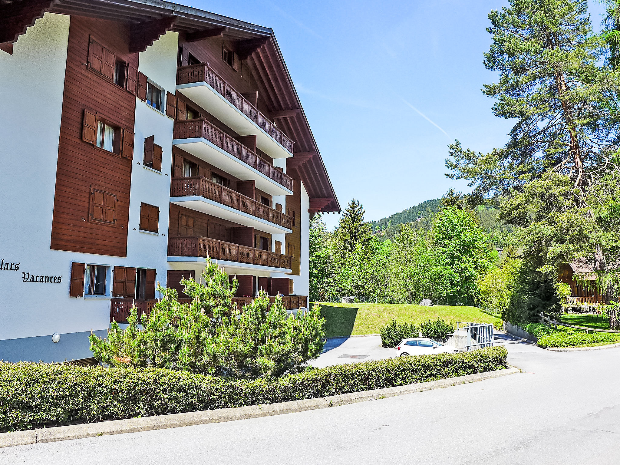Appartementhaus "Villars Vacances", umgeben von Bäumen und Wiesen. 1 km vom Zentrum von Villars, sonnige Lage, an einer Strasse, im Grünen, Richtung Südwesten. Im Hause: Sauna (extra). Fahrstuhl, Skiraum, Waschmaschine, Wäschetrockner (zur Mitbenutzung, extra). Zufahrt bis zum Haus. Im Winter bitte Schneeketten mitbringen. (3 Stufen). Einkaufsgeschäft 700 m, Lebensmittelgeschäft 650 m, Restaurant 700 m, Bäckerei 750 m, Bushaltestelle 400 m, Bahnstation "Villars- Bretaye" 1 km, Hallenbad 450 m, Thermalbad "Lavey-les-bains" 19 km. Golfplatz (18 Loch) 8 km, Tennis 1.2 km, Sportzentrum 1.2 km, Bergeisenbahn 1 km, Gondelbahn 1.5 km, Skibushaltestelle 450 m, Skischule 800 m, Kinderskischule 2.5 km, Eisfeld 500 m. Der gratis Skibus fährt zum Skigebiet Villars. Bitte beachten: Weitere Unterkünfte sind buchbar. Etagengaragen, ein Auto über ein anderes. Maximale Autohöhe 150cm.