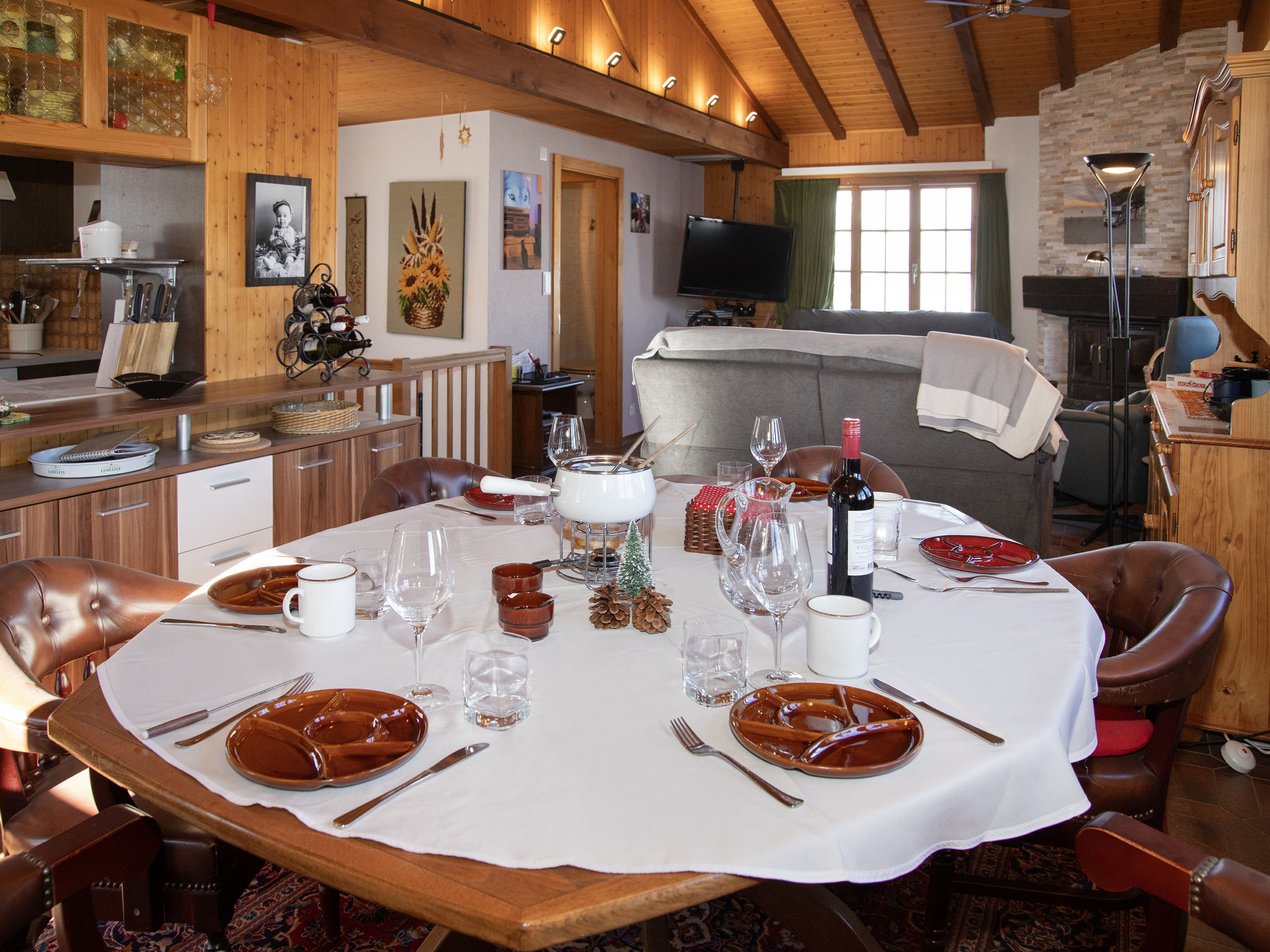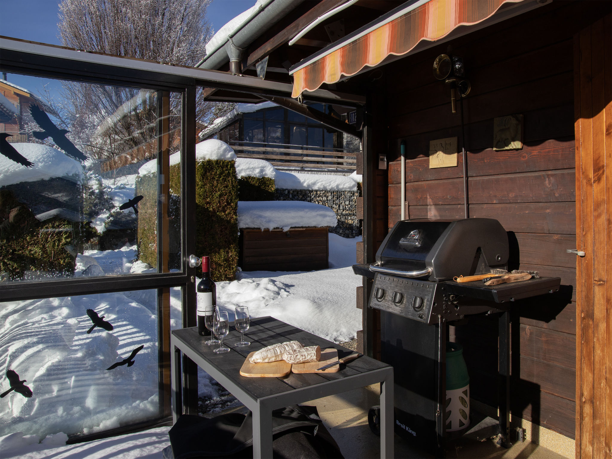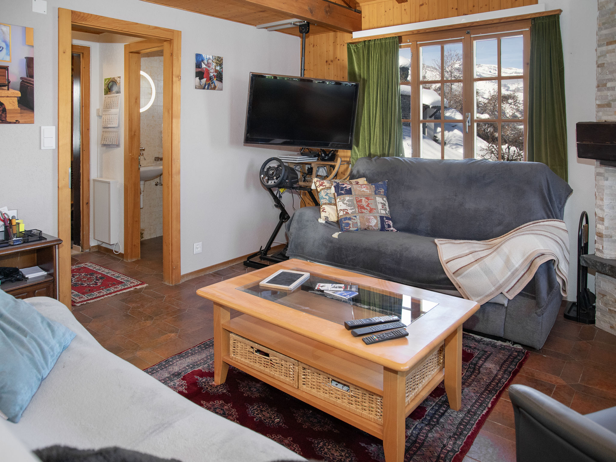 "Petit Râche", 5-Zimmer-Chalet 134 m2 auf 2 Stockwerken. Komfortabel und schön eingerichtet: Eingang. Wohn-/Esszimmer mit offenem Kamin und Kabel-TV. Ausgang zum Balkon, zur Terrasse, Richtung Süden und Richtung Osten. Offene Küche (Backofen, Geschirrspüler, 4 Glaskeramikplatten, Toaster, Wasserkocher, elektrische Kaffeemaschine, Racletteofen, Fondue Set (Käse)). Sep. WC. Unteres Geschoss: 1 kleines Zimmer mit 1 Bett (140 cm, Länge 190 cm). 1 Zimmer mit 1 franz. Bett (160 cm, Länge 200 cm). 1 Zimmer mit 1 franz. Bett (180 cm, Länge 200 cm). Ausgang zum Garten, Richtung Osten. 1 Zimmer mit 1 franz. Bett (140 cm, Länge 200 cm), Dusche/WC. Ausgang zum Garten. Bad/WC. Heizung. Terrassenmöbel, Gartengrill. Herrliche Sicht auf die Berge und das Tal. Zur Verfügung: Waschmaschine. Internet (WLAN, gratis). Parkplatz (2 Autos). Bitte beachten: Nichtraucher-Unterkunft. 1 Haustier/Hund erlaubt.