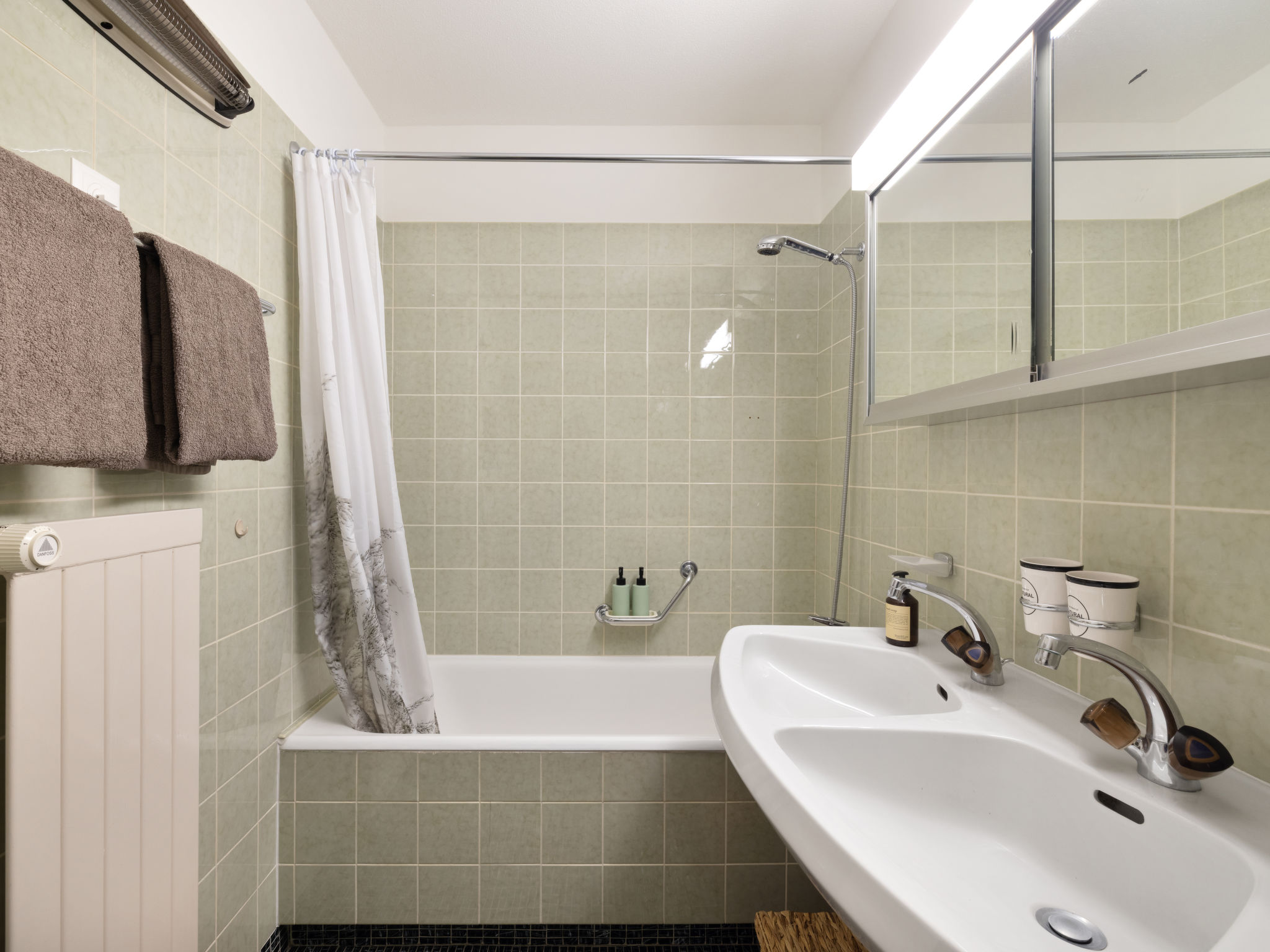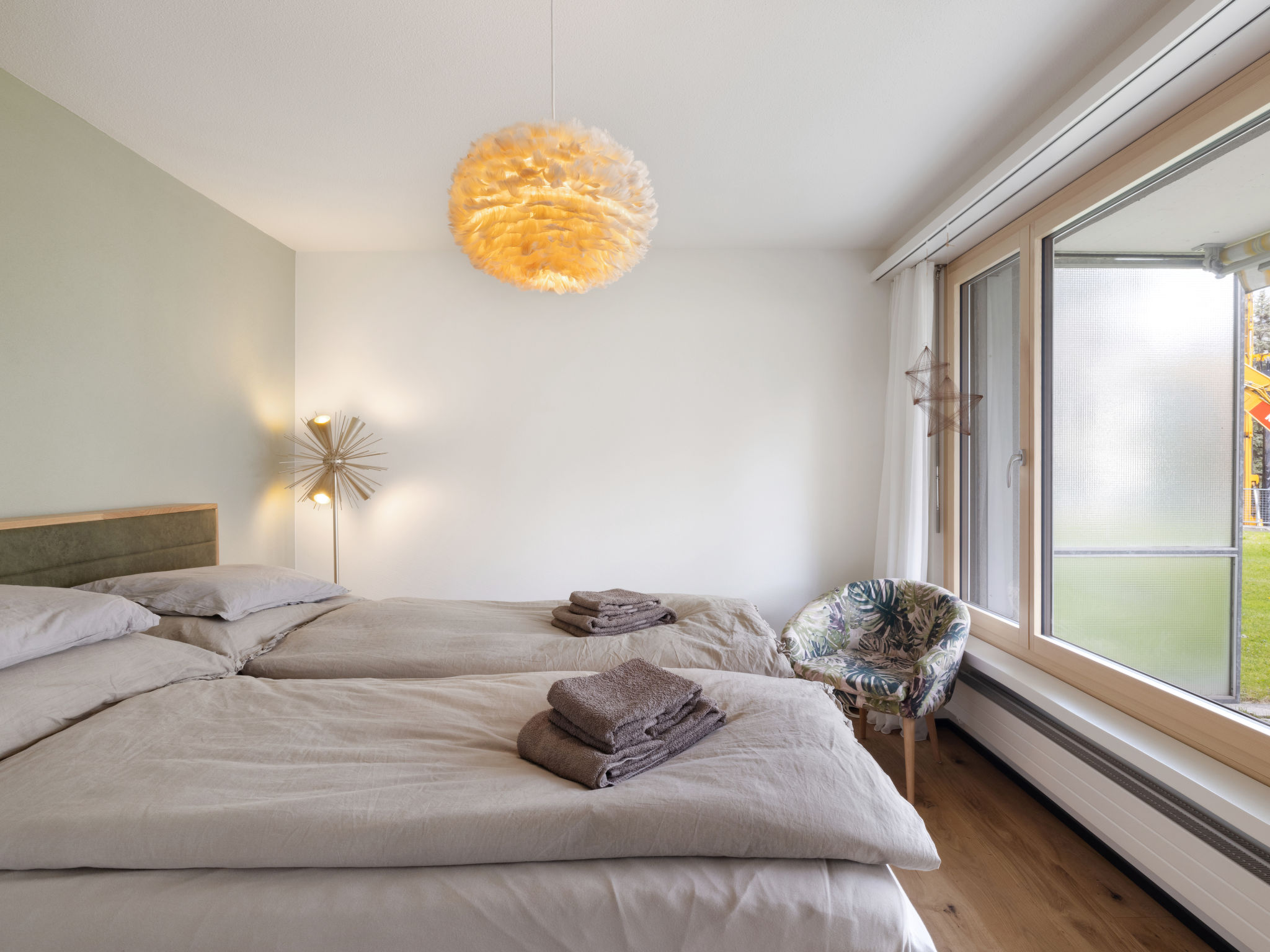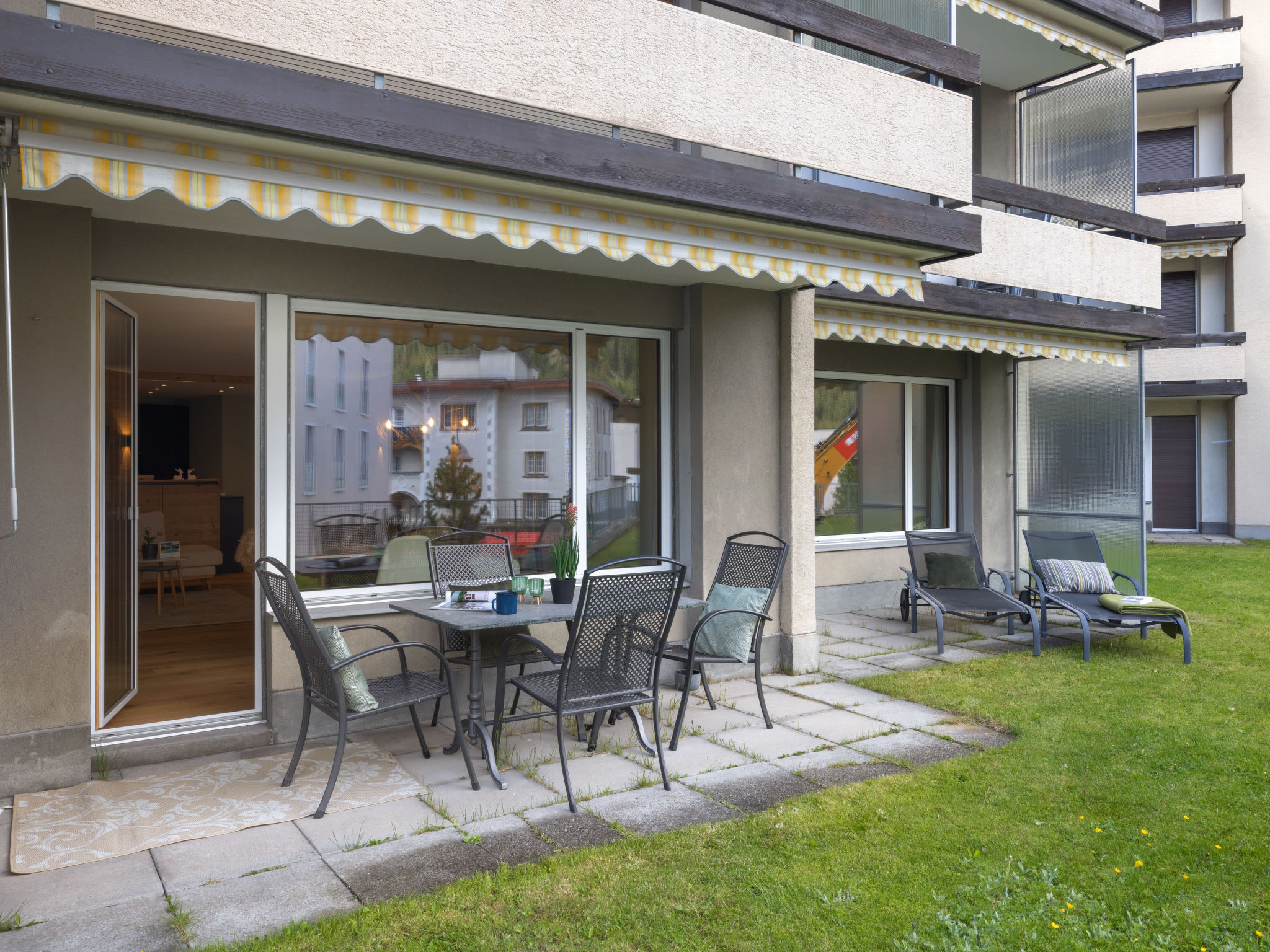 "Lenza Apt 106", 3-Zimmer-Wohnung 105 m2, im Erdgeschoss, Südostlage. Geräumig, vollständig renoviert im Jahre 2024, sehr komfortabel und modern eingerichtet: grosses Wohn-/Esszimmer mit sep. WC, Flachbildschirm, Radio und Stereoanlage. Ausgang zum Gartensitzplatz, Richtung Südosten. 1 Doppelzimmer mit 2 Betten (90 cm, Länge 200 cm). 1 grosses Doppelzimmer mit 1 Doppelbett (2 x 90 cm, Länge 200 cm). Offene Küche (Backofen, 4 Glaskeramikplatten, Tiefkühler, elektrische Kaffeemaschine, Kapseln für die Kaffeemaschine (Nespresso) extra, Racletteofen, Fondue Set (Chinoise, Käse)) mit Küchenblock. Bad/WC, Doppelwaschbecken. Parkettboden. Grosse Terrasse, Südostlage. Balkonmöbel, Liegestühle (2). Schöne Sicht auf die Berge. Zur Verfügung: Internet (WLAN). Garage Nr. 11. 10892