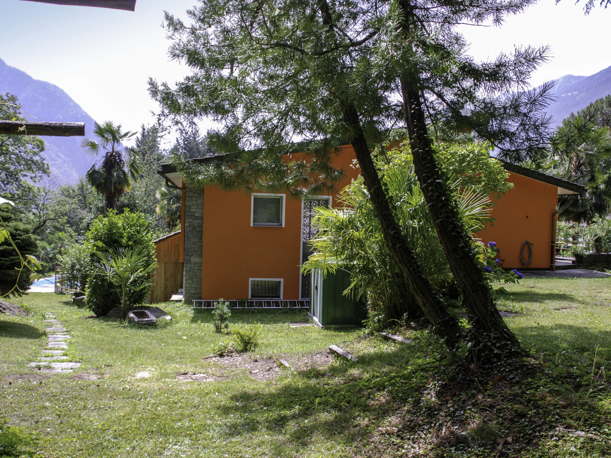 Castro 9 km von Malvaglia: Innentreppe zwischen den beiden Wohnungen. >>Achtung - kleine Kinder sollten wegen Terrasse und Pool nicht unbeaufsichtigt bleiben! gemütliches, freistehendes Zweifamilienhaus "Dragone", 640 m.ü.M., auf 2 Stockwerken, umgeben von Bäumen, Wiesen und Feldern. 2 Wohnungen im Ferienhaus. Castro, im Bezirk Valle di Blenio, alleinstehende, ruhige, sonnige Lage, 10 m vom Waldrand, im Grünen, Richtung Süden. Zur Mitbenutzung: Grundstück (eingezäunt), wunderschöner Garten zum Entspannen, Schwimmbad eckig (8 x 4 m, 150 - 150 cm tief, saisonale Verfügbarkeit: 01.Mai. - 30.Sep.) mit Innentreppe und Rollladenabdeckung. Aussendusche, Sitzplatz, Poolpflege durch den Besitzer/Gärtner. Im Hause: Sauna, Fitnessraum, Zentralheizung, Waschmaschine, Wäschetrockner (zur Mitbenutzung). Zufahrt bis zum Haus. Parkplatz (für 6 Autos). Supermarkt 4 km, Restaurant 9 km, Bäckerei 9 km, Fahrradverleih 9 km, Bushaltestelle "Castro Paese Bus 134" 320 m, Bahnstation "Biasca" 16 km. Wanderwege ab Haus, Kinderspielplatz 10 m. Nahe gelegene Sehenswürdigkeiten: Castelli di Bellinzona UNESCO 37.4 km, Museo della Valle di Blenio 2.6 km, Chiesa Negrentino 5 km, Castello di Seravalle 8.6 km, Archivio Donetta 7 km, Splash & Spa 49.2 km. Bekannte Skigebiete sind gut erreichbar: Nara 5.2 km, Campo Blenio 14.4 km, Campra 18.7 km. Bekannte Seen in der Umgebung sind gut erreichbar: Lago di Luzzone 21.5 km, Lago Retico 23.3 km, Lago Maggiore 53.2 km. Wandergebiete: Nara, la Greina, Lucomagno, Val Malvaglia. Bitte beachten: Fahrzeug empfohlen. Geeignet für Familien, geeignet für Senioren. Jugendgruppen nur auf Anfrage. Tiere in der Umgebung. Weitere Unterkünfte sind buchbar. Ferienwohnung Ref. CH6723.150. Befindet sich auf dem gleichen Grundstück.