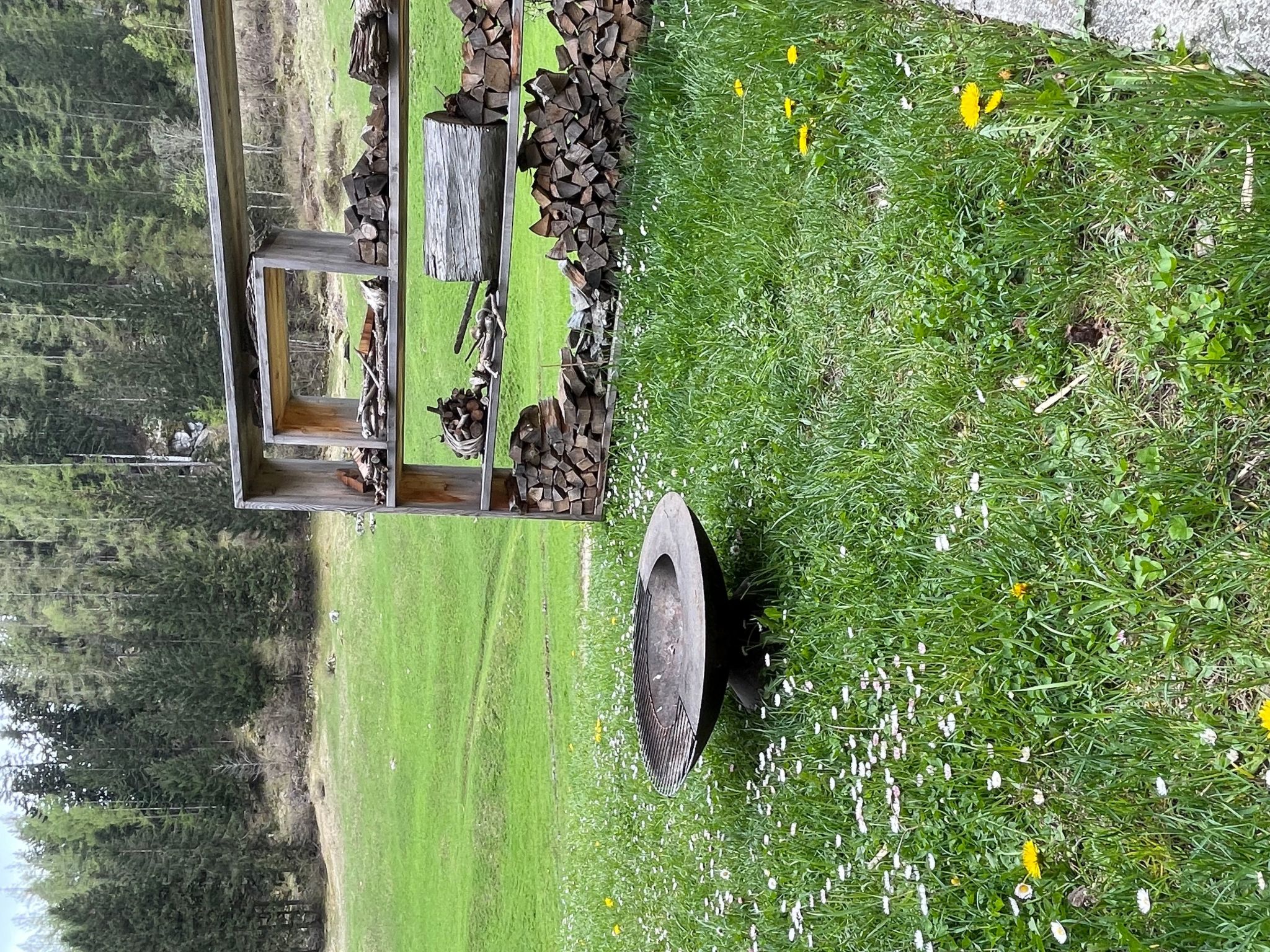 Im Außenbereich des Maiensäss werden Sie von einem liebevoll gestalteten Garten zur alleinigen Nutzung empfangen. Die Renovierung des Außenplatzes in 2021 mit neuen Stühlen, Tisch, Sonnenschirm und einem Grill lädt zu gemütlichen Stunden im Freien ein. Der gestaltete Parkplatz und die bereitgestellten Holzkästen für Brennmaterial sorgen für praktische Annehmlichkeiten während Ihres Aufenthalts.