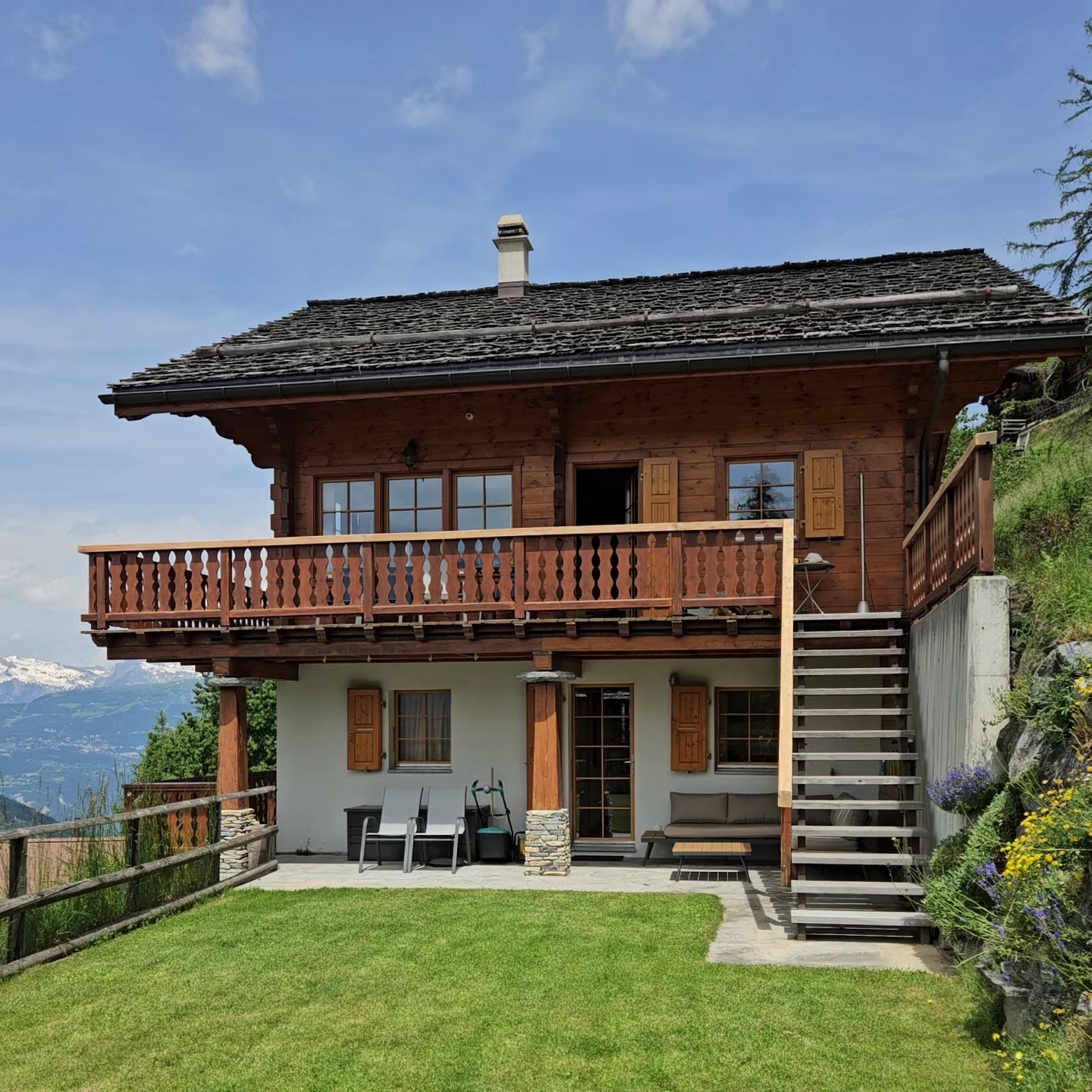 Geräumiges, familienfreundliches Chalet, ideal für 10 Personen, mit Terrasse, möbliertem Balkon, Garten mit herrlichem Blick auf die Kaiserkrone und das Matterhorn.Innen: auf 3 EtagenEingangshalle, warmes Wohnzimmer mit Kamin, Essbereich, Zwischengeschoss mit TV und Entspannungsbereich.Räume:4 Schlafzimmer mit 2 Einzelbetten, die leicht zu einem Doppelbett kombiniert werden können (Einzel- und Doppelbetten verfügbar)1 Schlafzimmer mit Etagenbett2 Babybetten verfügbarGesundheit:1 Badezimmer mit Badewanne/Dusche, 1 Badezimmer mit Dusche und 1 Dusche in einem 2-Bett-Schlafzimmer.2 separate ToilettenWaschküche mit Waschmaschine und TrocknerVoll ausgestattete offene Küche:Induktion, Backofen, Mikrowelle, Geschirrspüler, Kühlschrank, Gefrierschrank, Nespresso-Maschine und -Filter, Raclette- und Fonduemaschine, Toaster, Mixer, Airfryer, Fritteuse, Speisenwärmer.Sonstige Ausrüstung:Elektrische Fussbodenheizung und Heizkörper, Swisscom TV, Blu-ray-Player, Chromecast, WLAN, Sonos-Lautsprecher, Gesellschaftsspiele, Schlitten, Schaukeln, Drucker, Grill. Skiraum mit Heizung für Skischuhe.Außen:2 Garagen + 1 Stellplatz, große Terrasse mit Gartenmöbeln, Balkone, Garten (Gartenmöbel vorhanden).verschieden:Haustiere sind nicht erlaubt.Privater Zugang (Schneeketten im Winter empfohlen oder 4x4).Freedom Pass inklusive (Mai bis November) – Privilegierter Zugang zu den Skiliften und Aktivitäten im Val d'Anniveirs; freier Zugang zu Besichtigungen des Kultur- und Kulturerbes und kostenlose Nutzung der öffentlichen Verkehrsmittel (CarPostal).