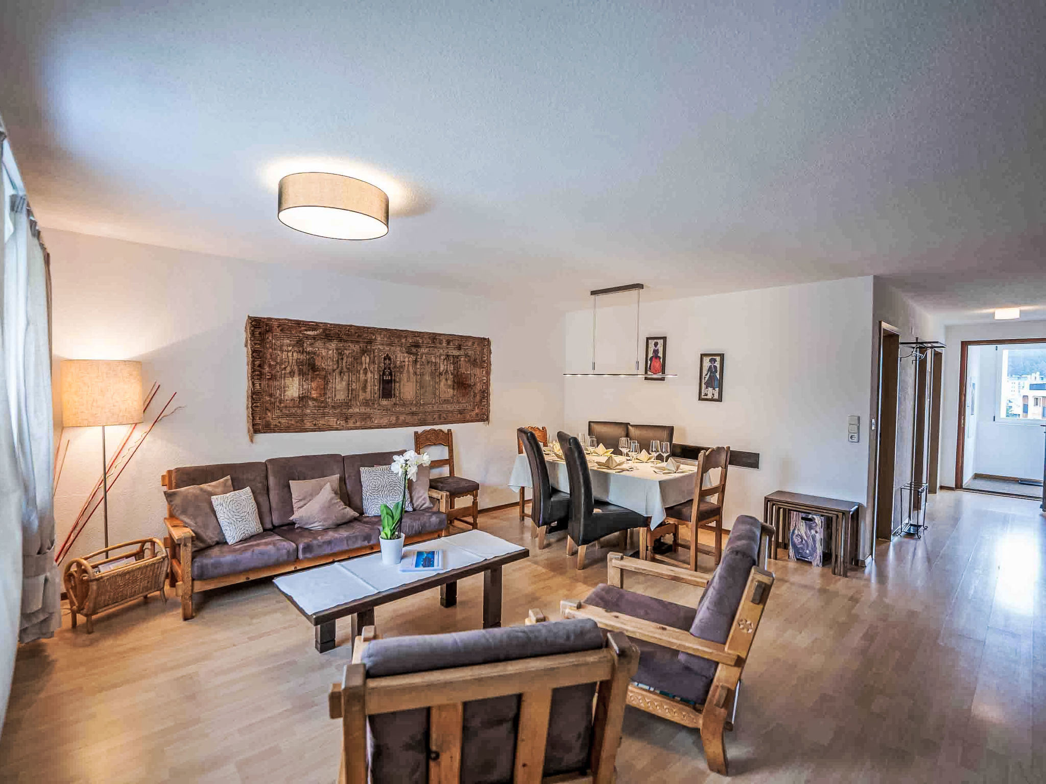 "Chesa Ova Cotschna 606", 4-Zimmer-Wohnung 105 m2 im 6. Stock. Zweckmässig eingerichtet: Wohn-/Esszimmer mit Essecke und TV (Flachbildschirm). Ausgang zur Loggia, Richtung Westen. 2 Zimmer, jedes Zimmer mit 2 Betten (90 cm, Länge 195 cm). 1 Zimmer mit 1 x 2 Etagenbetten (90 cm, Länge 190 cm). Küche (4 Kochplatten, Backofen, Geschirrspüler, Toaster, Wasserkocher, elektrische Kaffeemaschine, Kapseln für die Kaffeemaschine (Nespresso) extra, Racletteofen, Fondue Set (Käse)). Bad/WC, sep. WC. Kleiner Balkon. Schöne Sicht auf die Berge und die Ortschaft. Zur Verfügung: Haartrockner. Internet (Wireless LAN, gratis). Garage Nr. 606, Höhe 200 cm, Breite 220 cm.